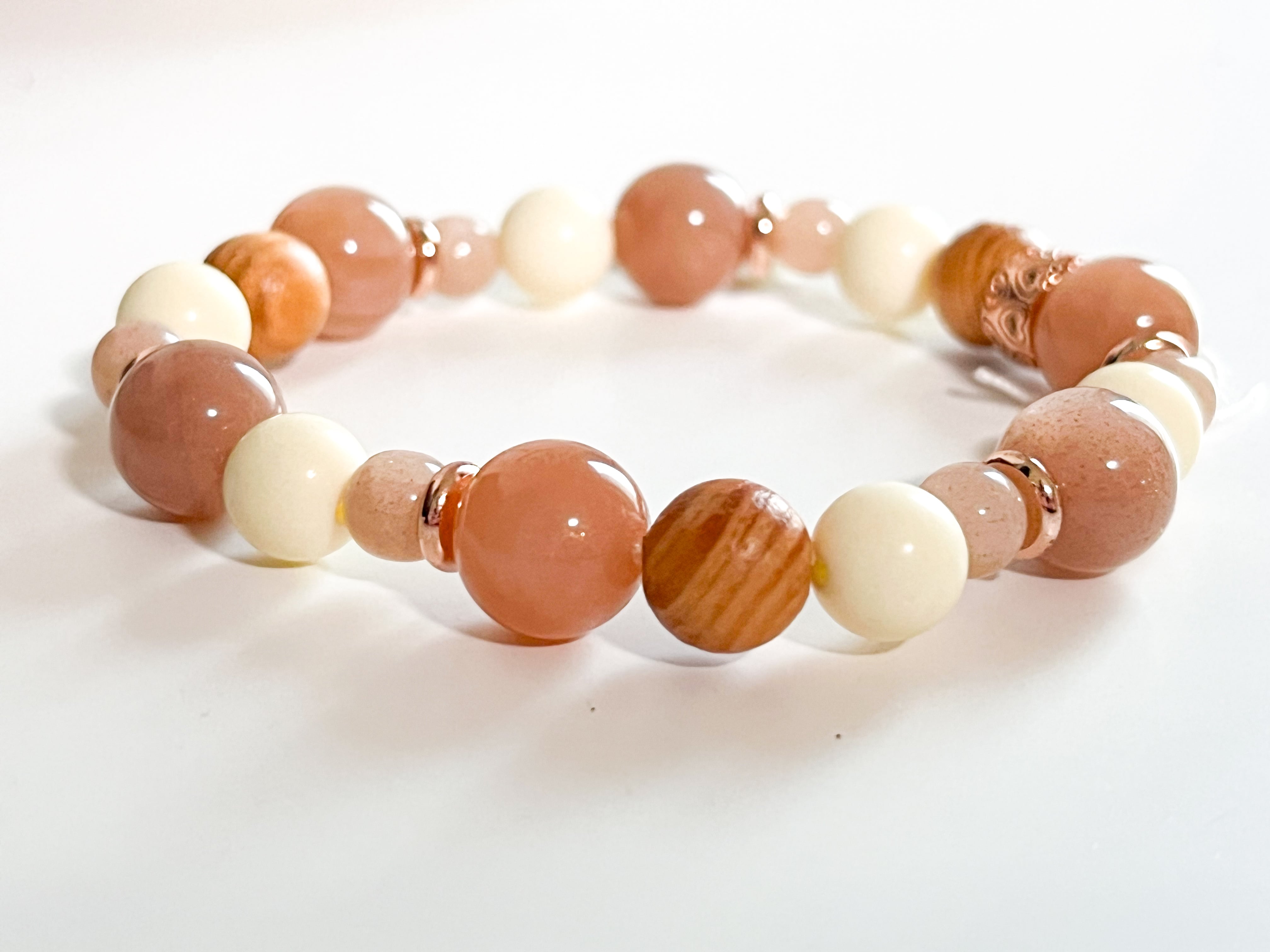 オレンジムーンストーンとヤシの実(象牙椰子)のブレスレット