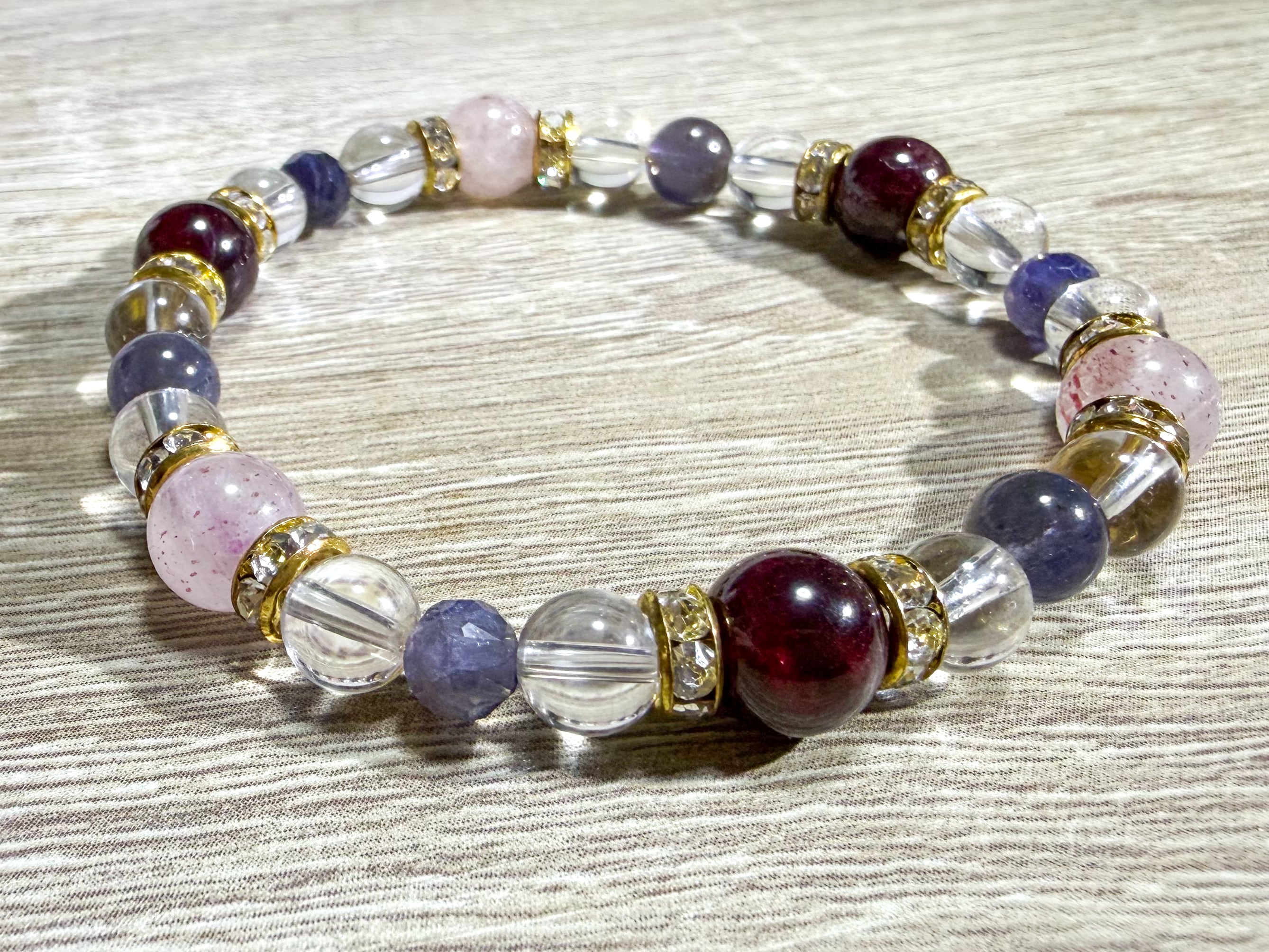 アイオライトとアクアマリン、ザンビア産アイリスクォーツのブレスレット