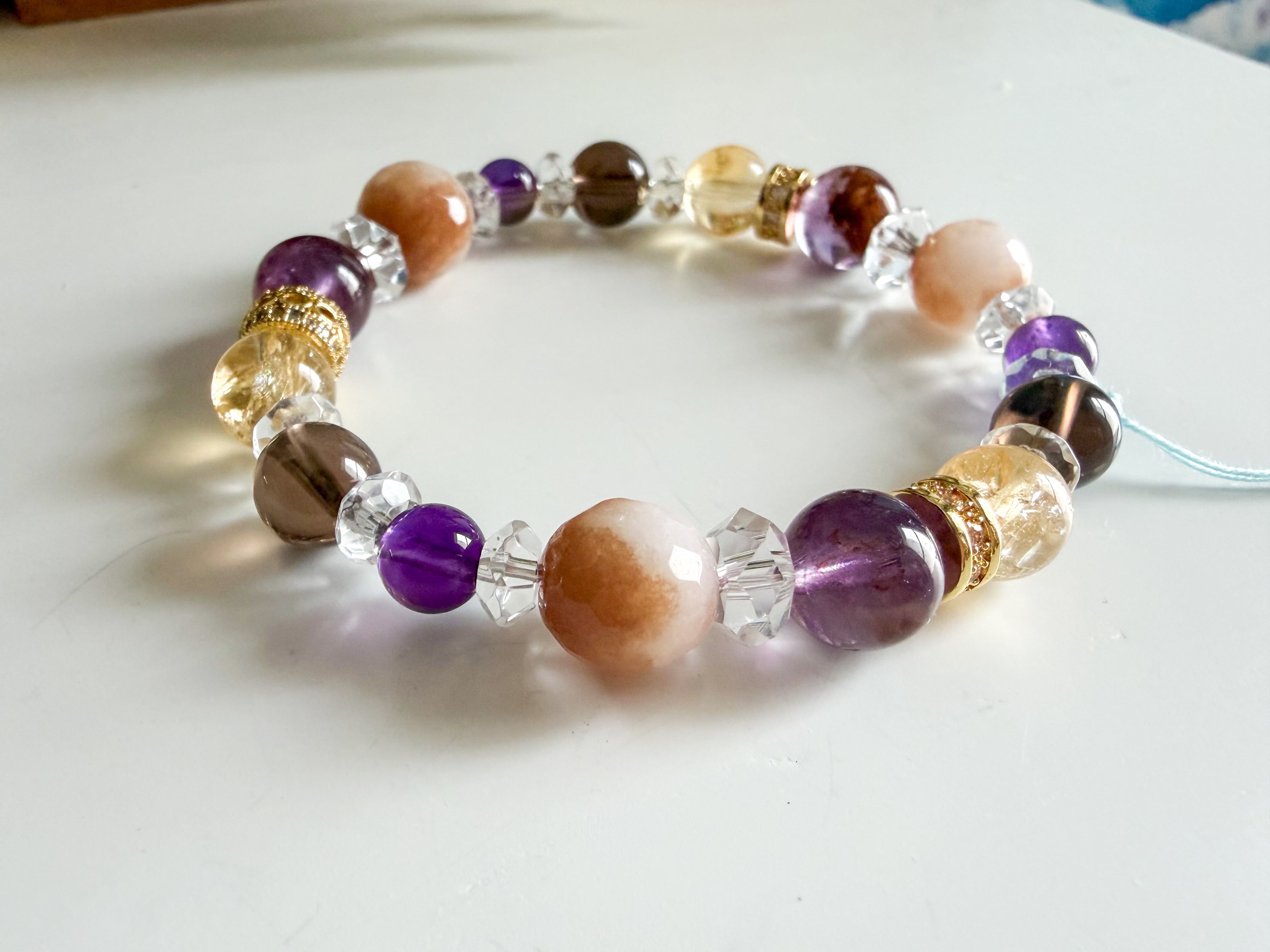 シトリン・スモーキークォーツ・グリーンアメシストのブレスレット