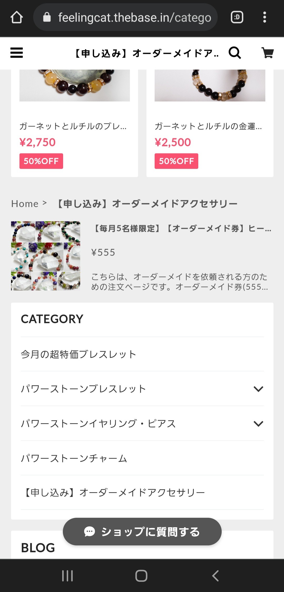 左上の三本線のところから、カテゴリーを選択していただき、555円のオーダーメイド受付券をお申し込みいただきます。