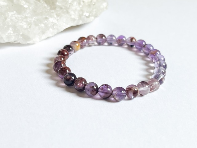 この美しいラベンダーアメシストとアメシストが融合したブレスレットは、心に安らぎと癒しをもたらす魅力的なアイテムです。 ラベンダーアメシストの柔らかな紫色が心の落ち着きを喚起し、アメシストの深みのある色合いが精神をクリアにしてくれることでしょう。どちらのストーンも、心のバランスを整え、特別な日常を演出します。 使用ストーン ラベンダーアメシスト 6ミリ アメシスト 6ミリ 内径15センチ 非常に使いやすいサイズとなっております。チューブ形状のアメシストが珍しい一品です。 このブレスレットは、特別な日のコーディネートにも最適で、大切な方への心のこもった贈り物にもぴったりです。ラベンダーアメシストとアメシストのブレスレットで、日常に癒しと美しさを取り入れてみてください!