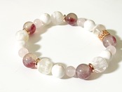 トムソナイトとピンクトルマリンシリカ、セリサイトインローズクォーツのブレスレット