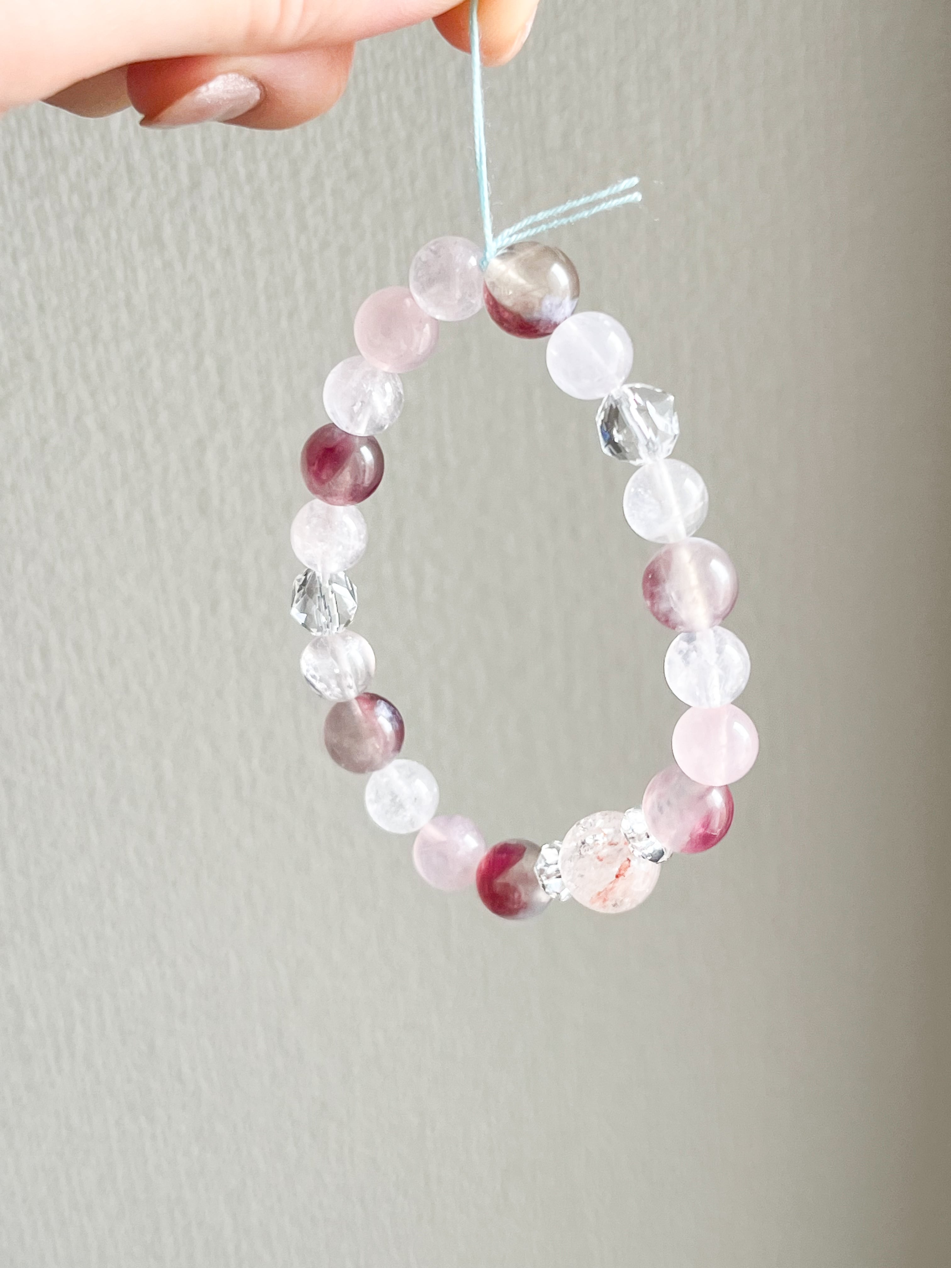 ピンクトルマリンシリカとピンクアイリスクォーツのブレスレット