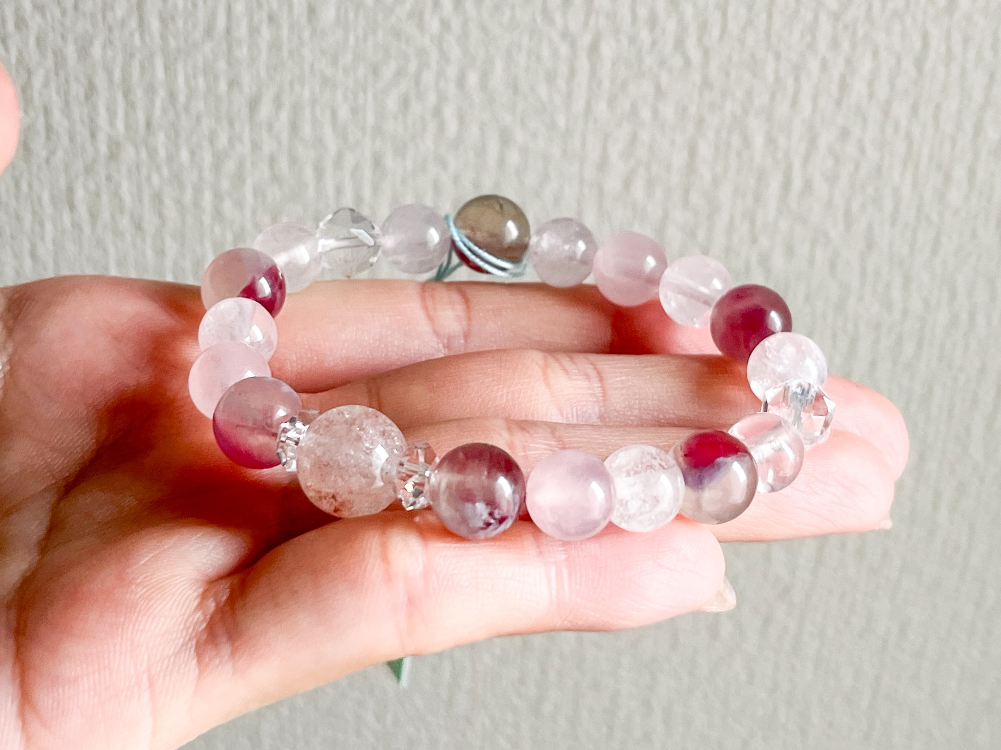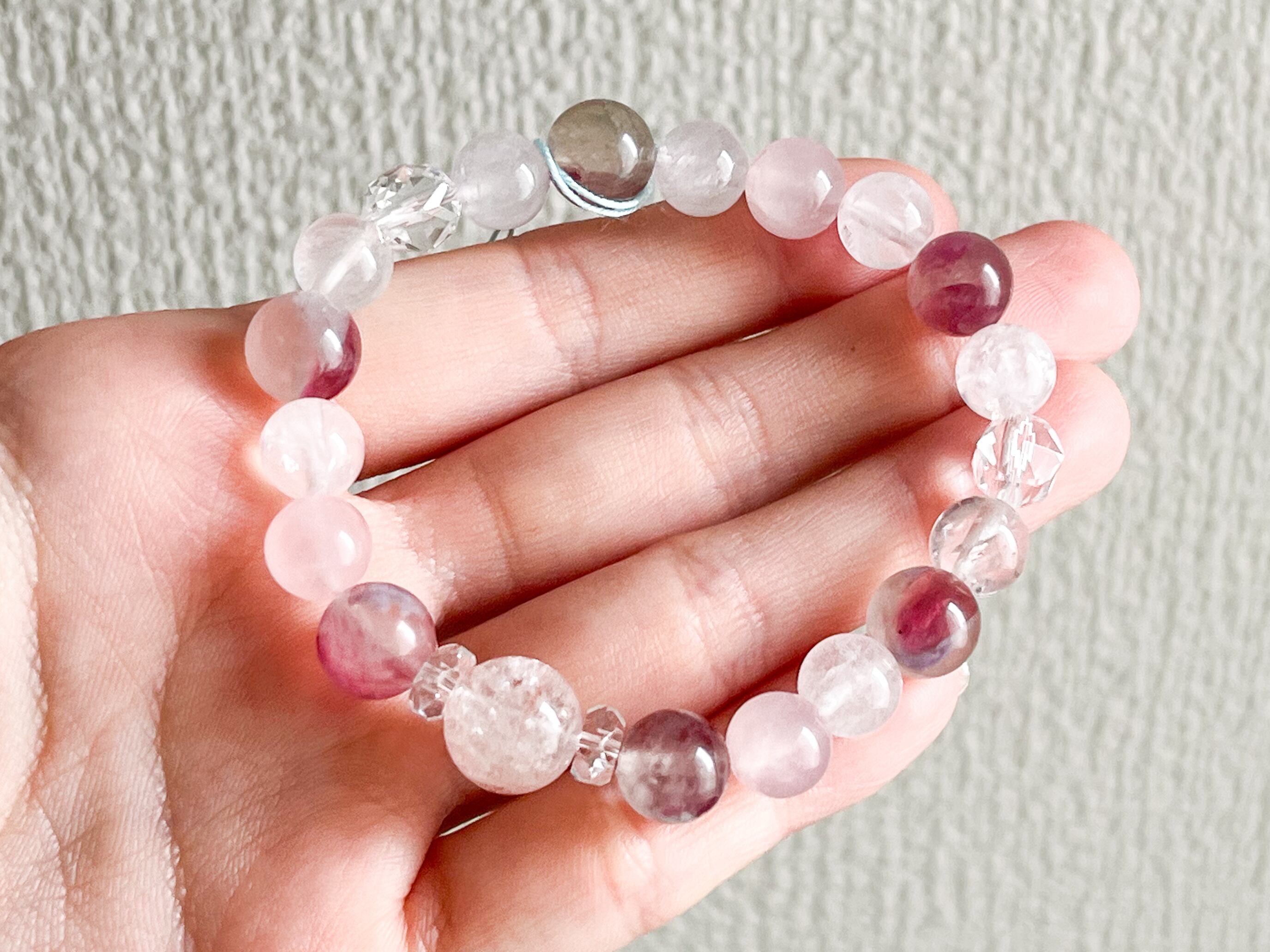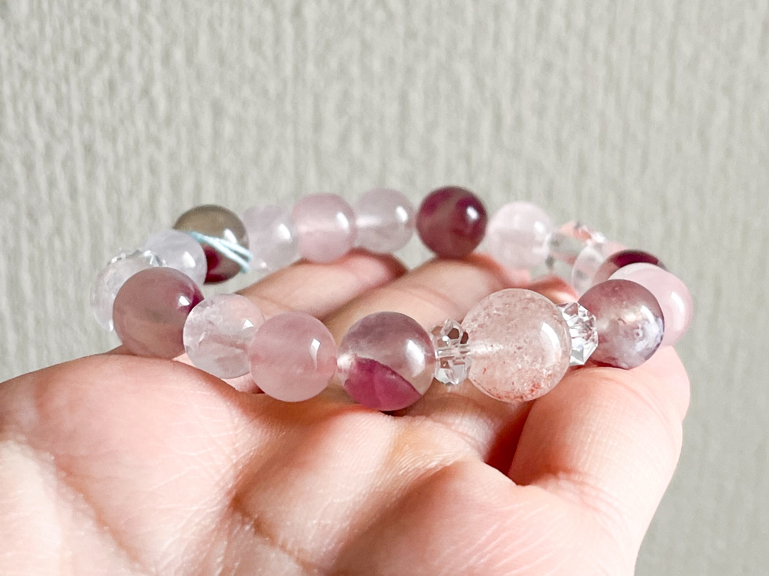 爽やかで春らしい色合いを纏った、ピンクトルマリンシリカとピンクアイリスクォーツのブレスレットです。このブレスレットでは、各ストーンが持つ魅力的な色合いとエネルギーを存分に体感することができます。