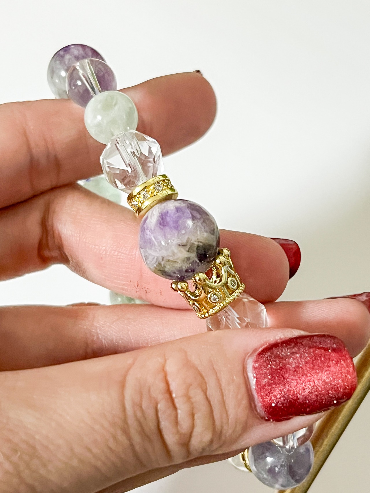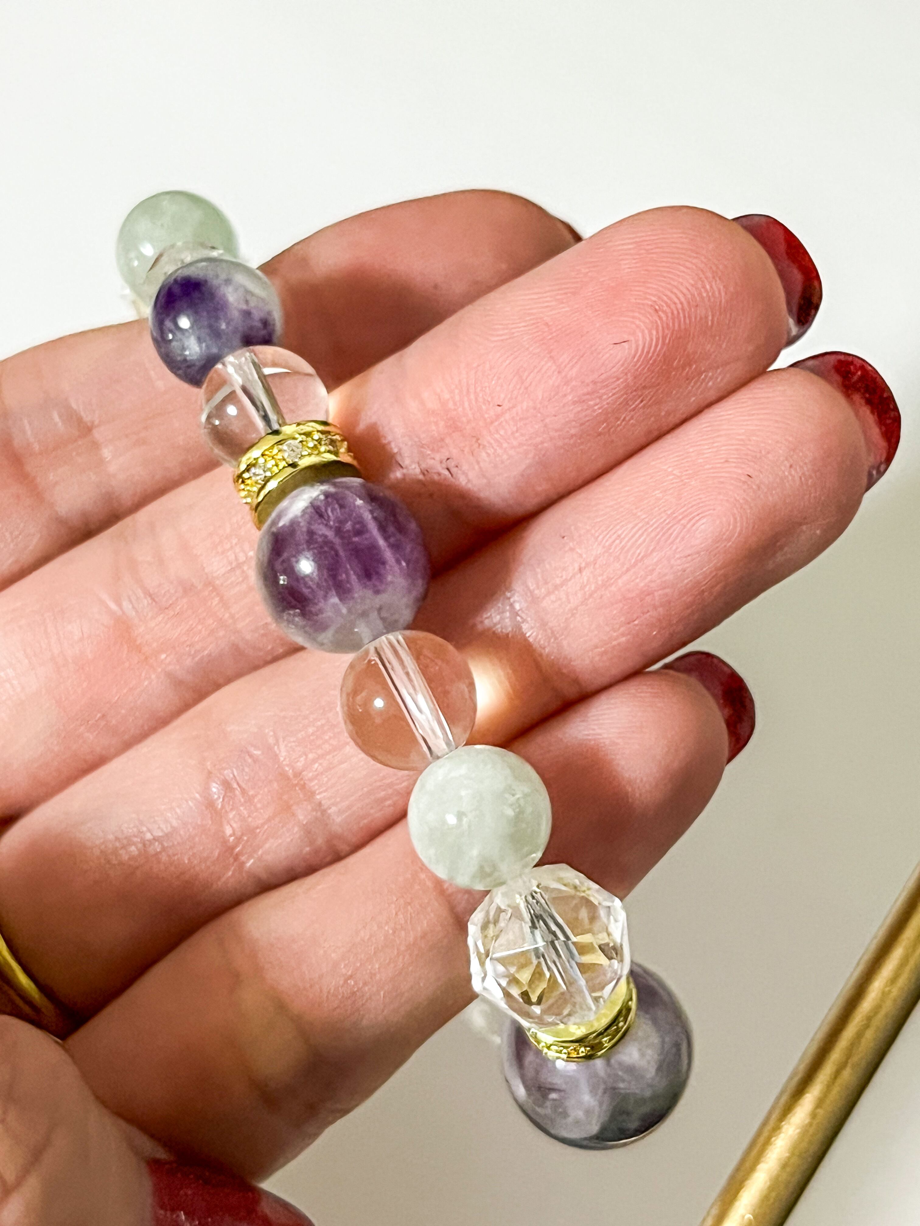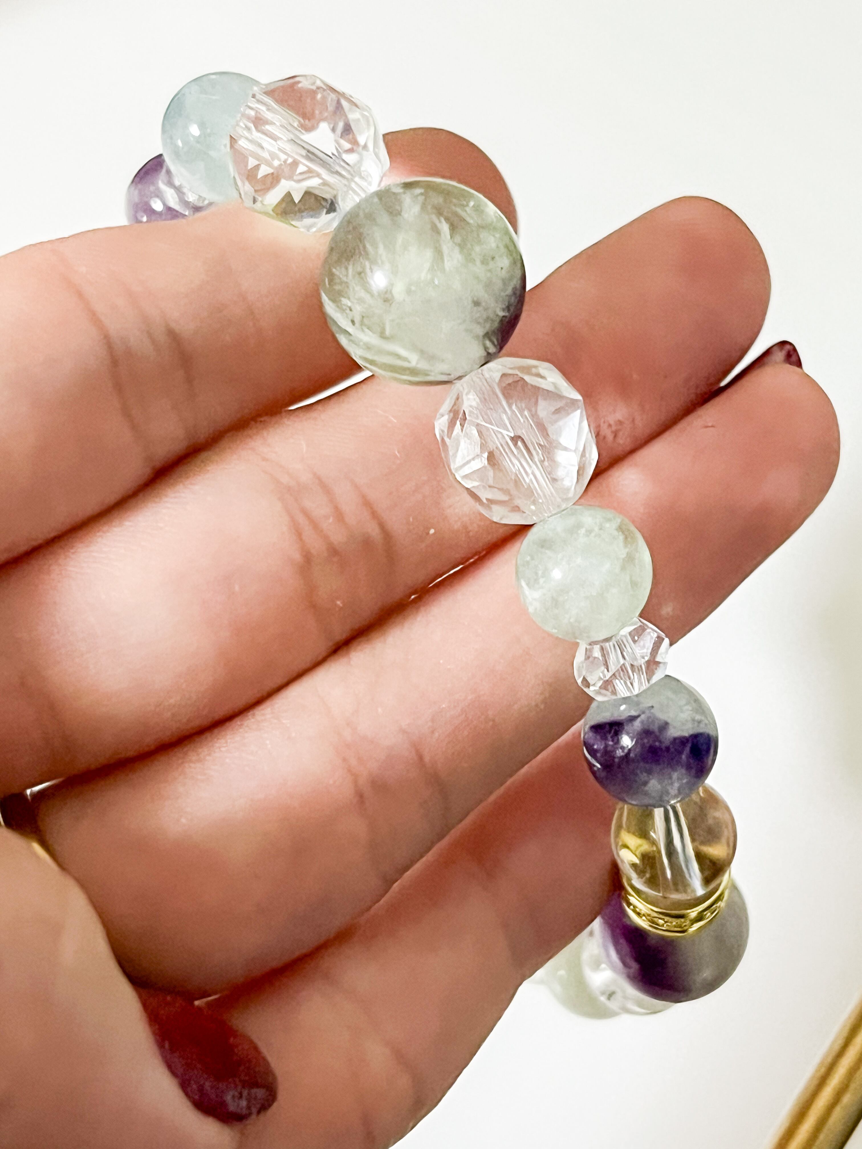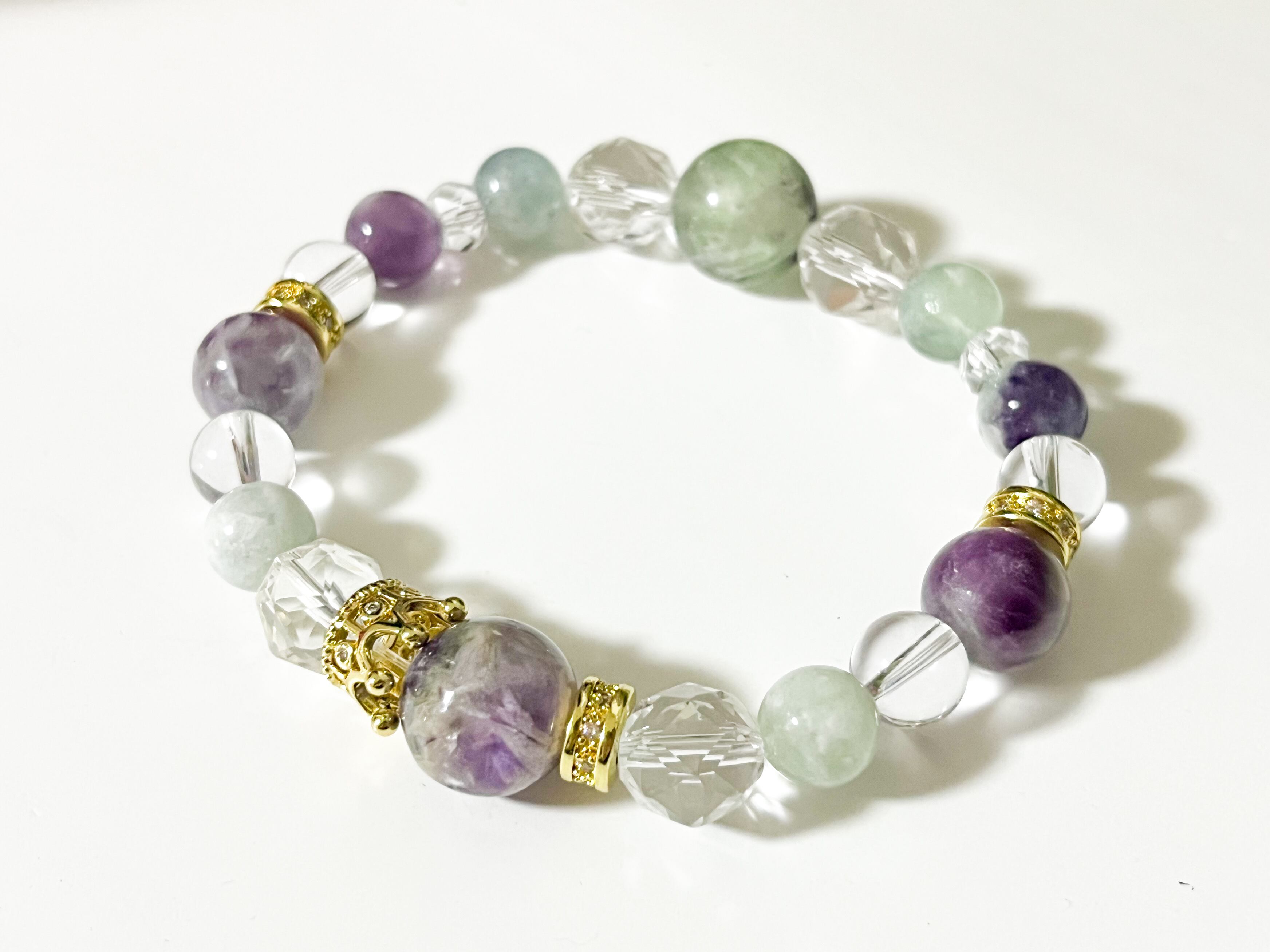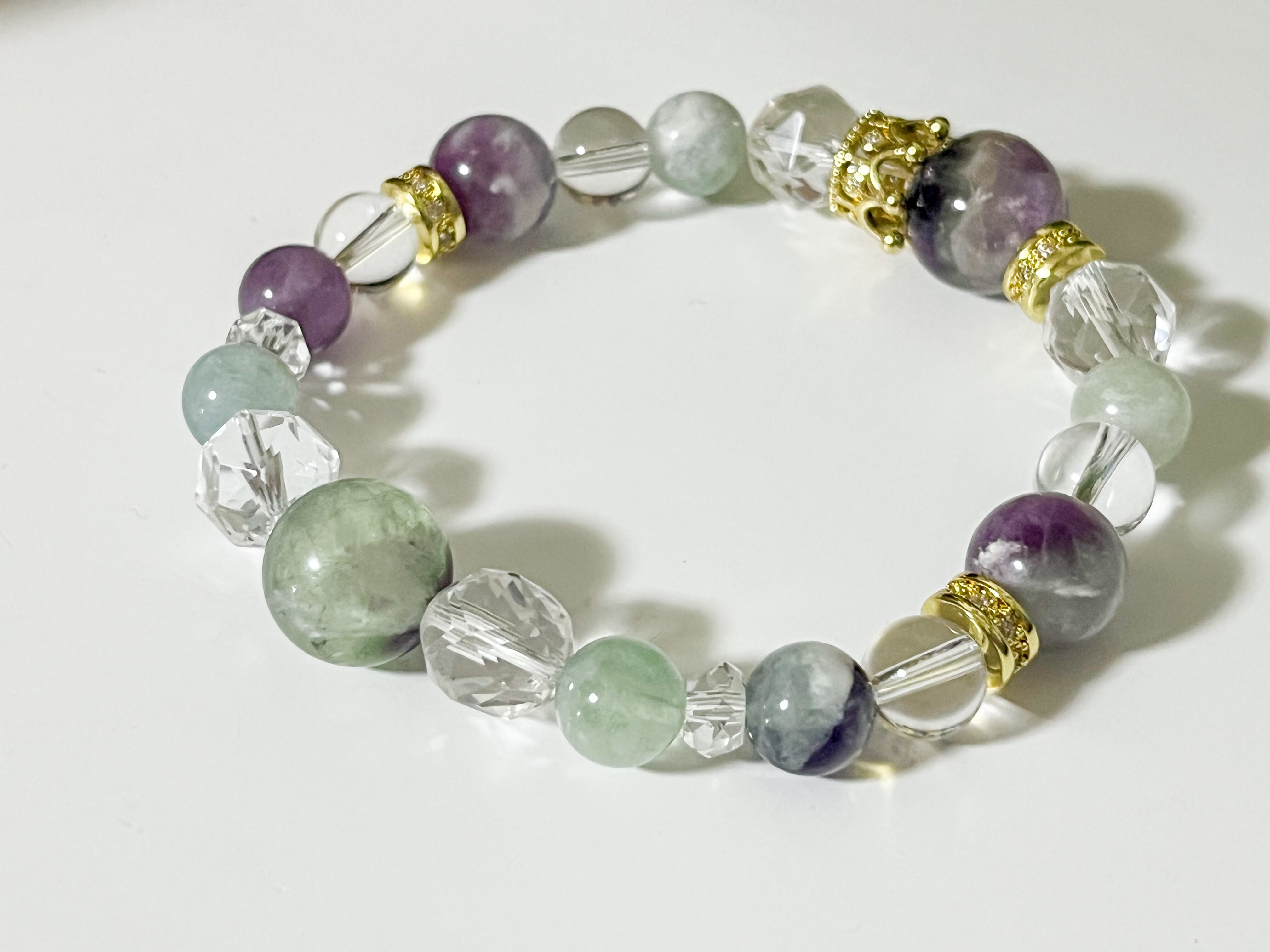 また、フローライトは、心のバランスを整え、集中力を高める効果が期待できる石とされています。この特別なブレスレットは、仕事やプライベートのどんなシーンでも、あなたの運気をサポートし、ときにはそっと寄り添う存在となるでしょう。