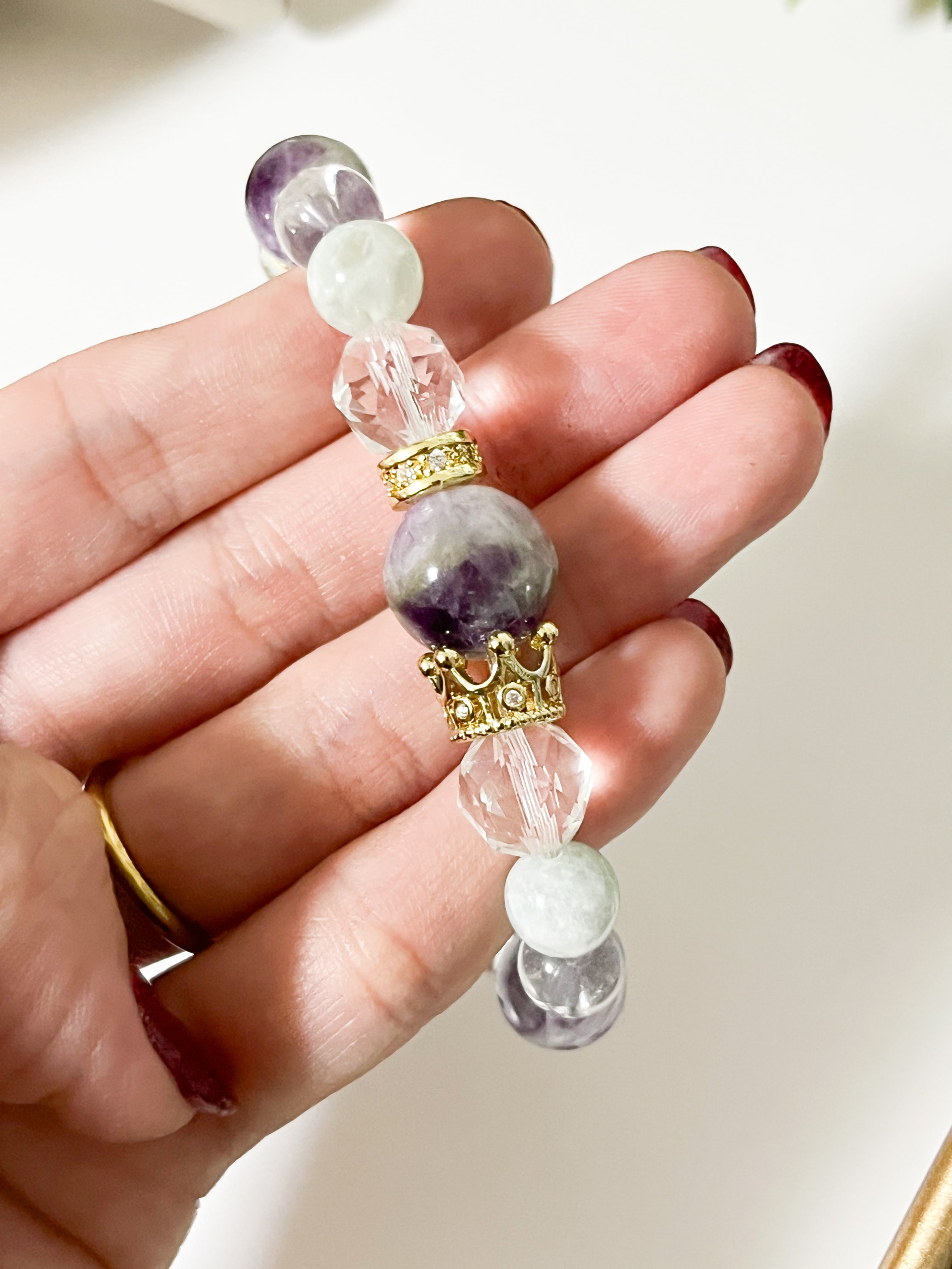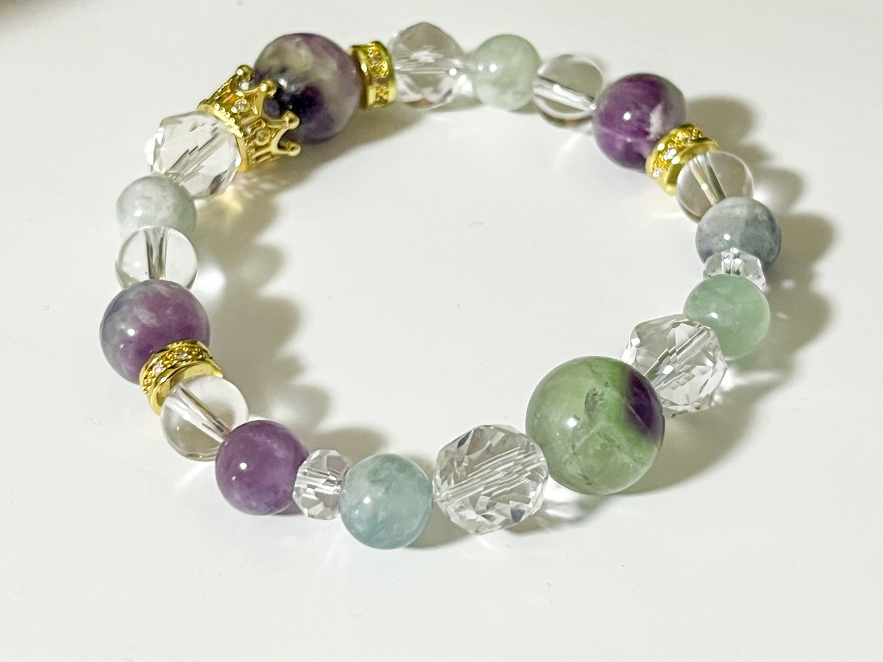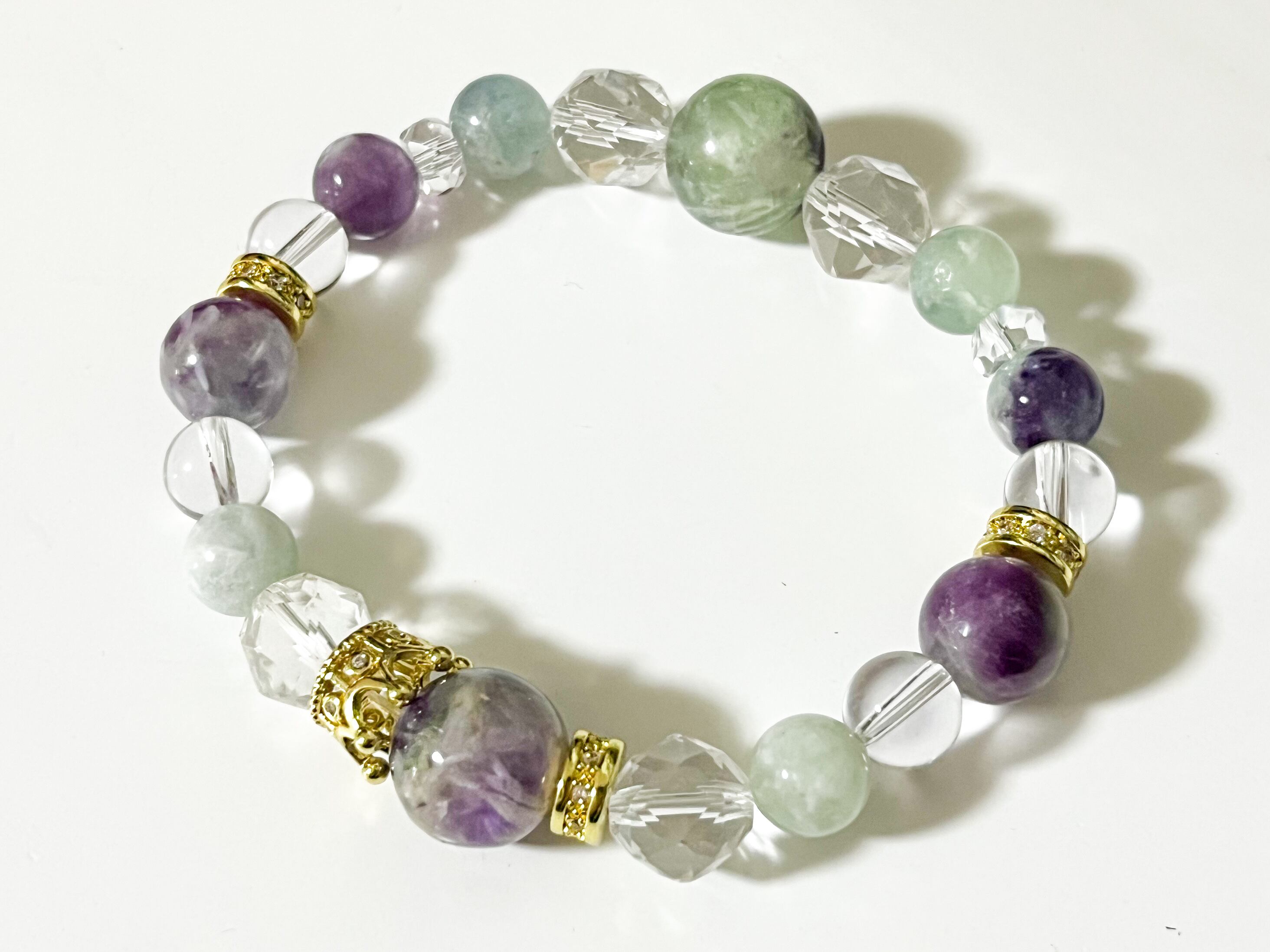 エンジェルフェザーフローライトのクリアブレスは、心に穏やかさと安らぎをもたらす美しい石を使用したアイテムです。