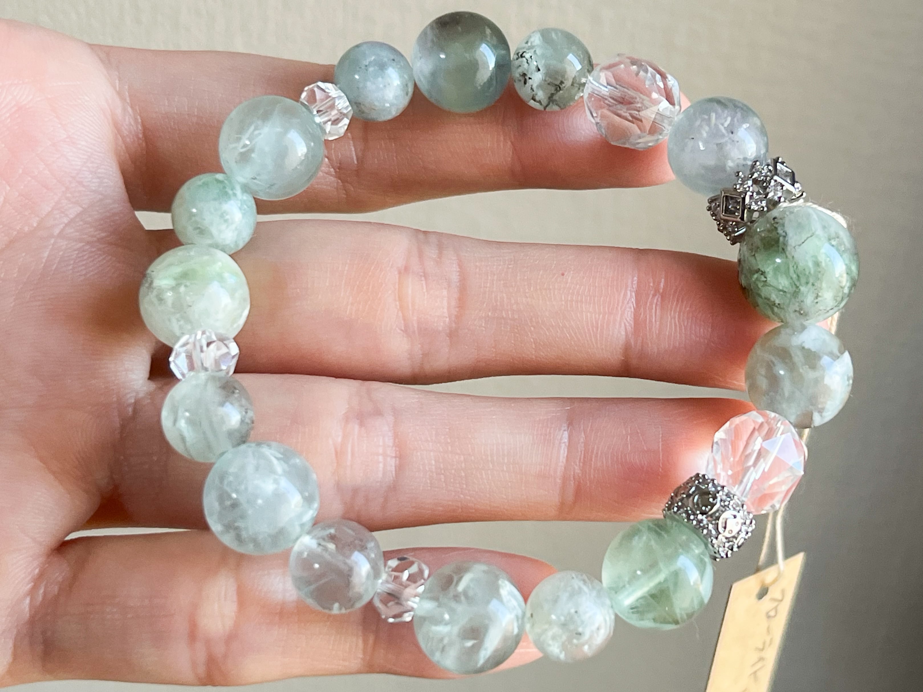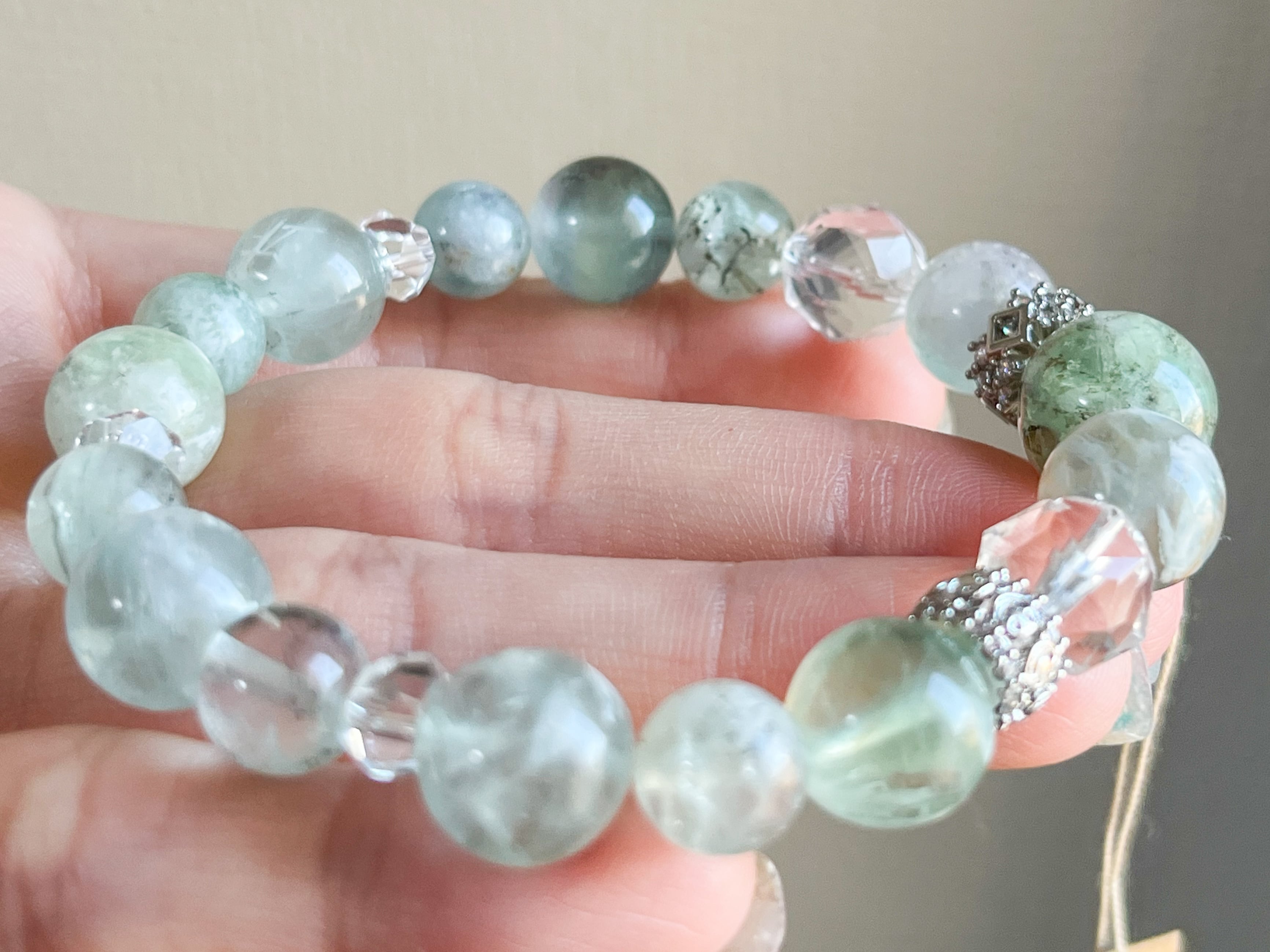 デンドリックエンジェルフェザーフローライトと水晶の魅力を、ぜひお楽しみください。このブレスレットが、あなたの日々にさらなる美しさと意味をもたらしますように…。