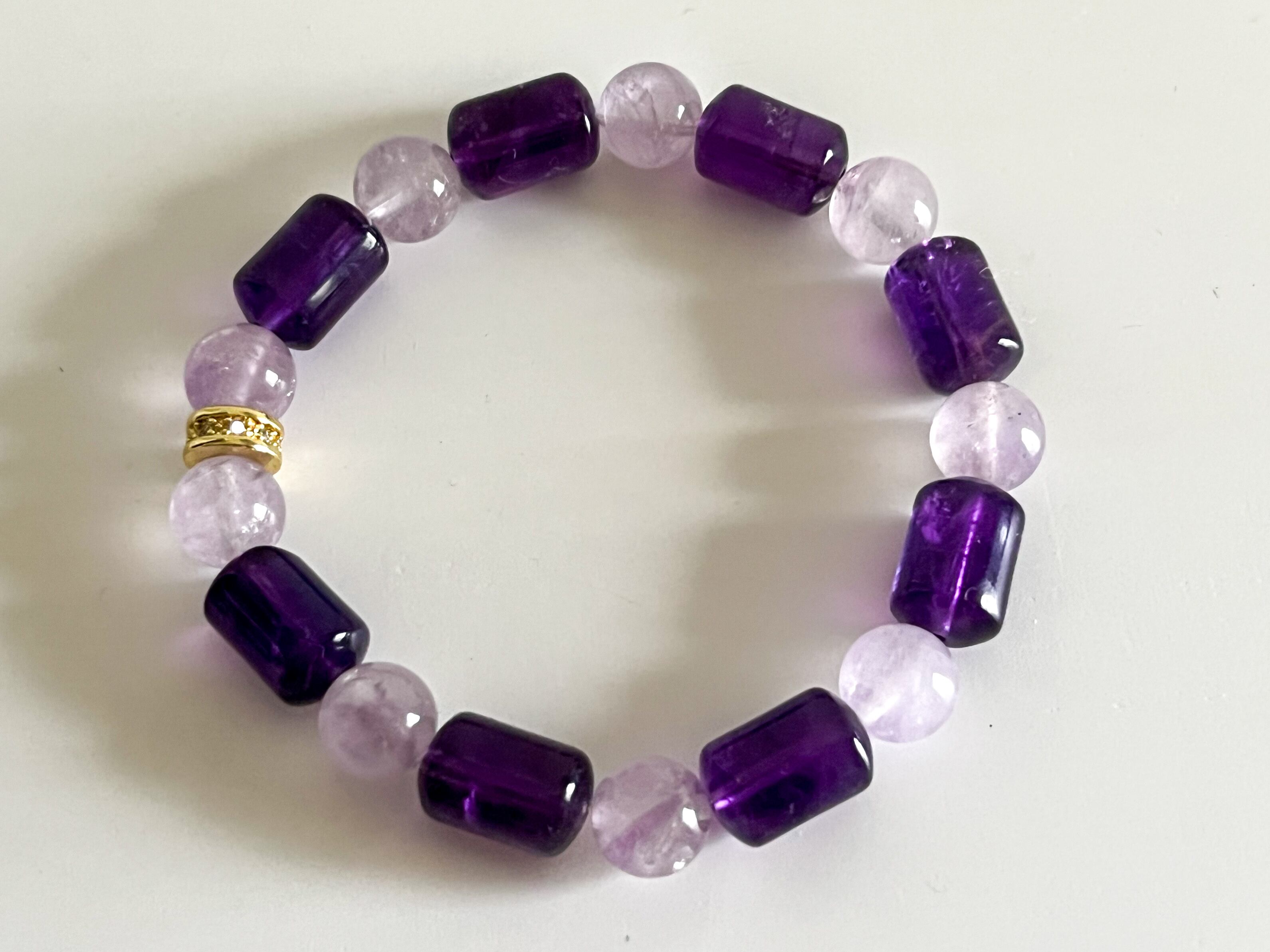 この美しいラベンダーアメシストとアメシストが融合したブレスレットは、心に安らぎと癒しをもたらす魅力的なアイテムです。