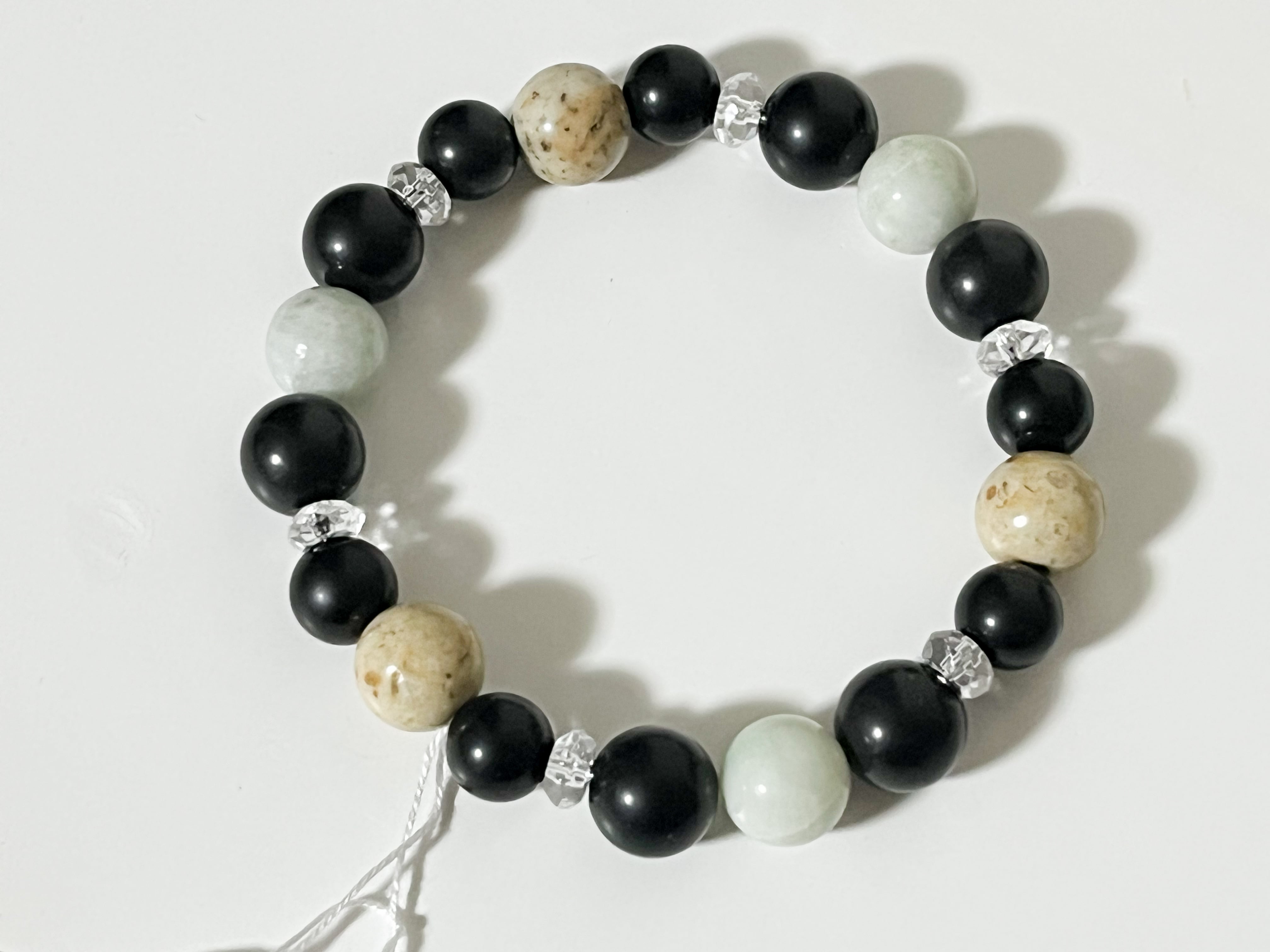 美しいブラックとグリーンが調和する、ブラックシリカと姫川薬石・糸魚川翡翠のブレスレットです。優雅なデザインと神秘的なエネルギーが、あなたの手元を一層引き立てます。自分自身を大切にするための一品です!
