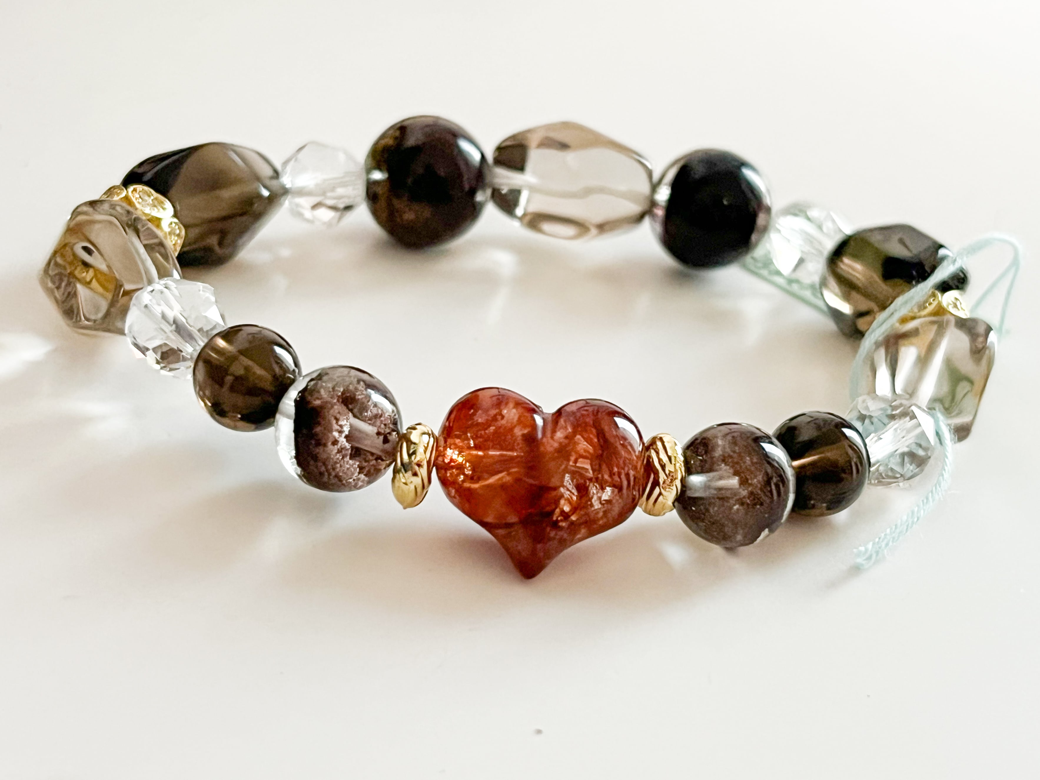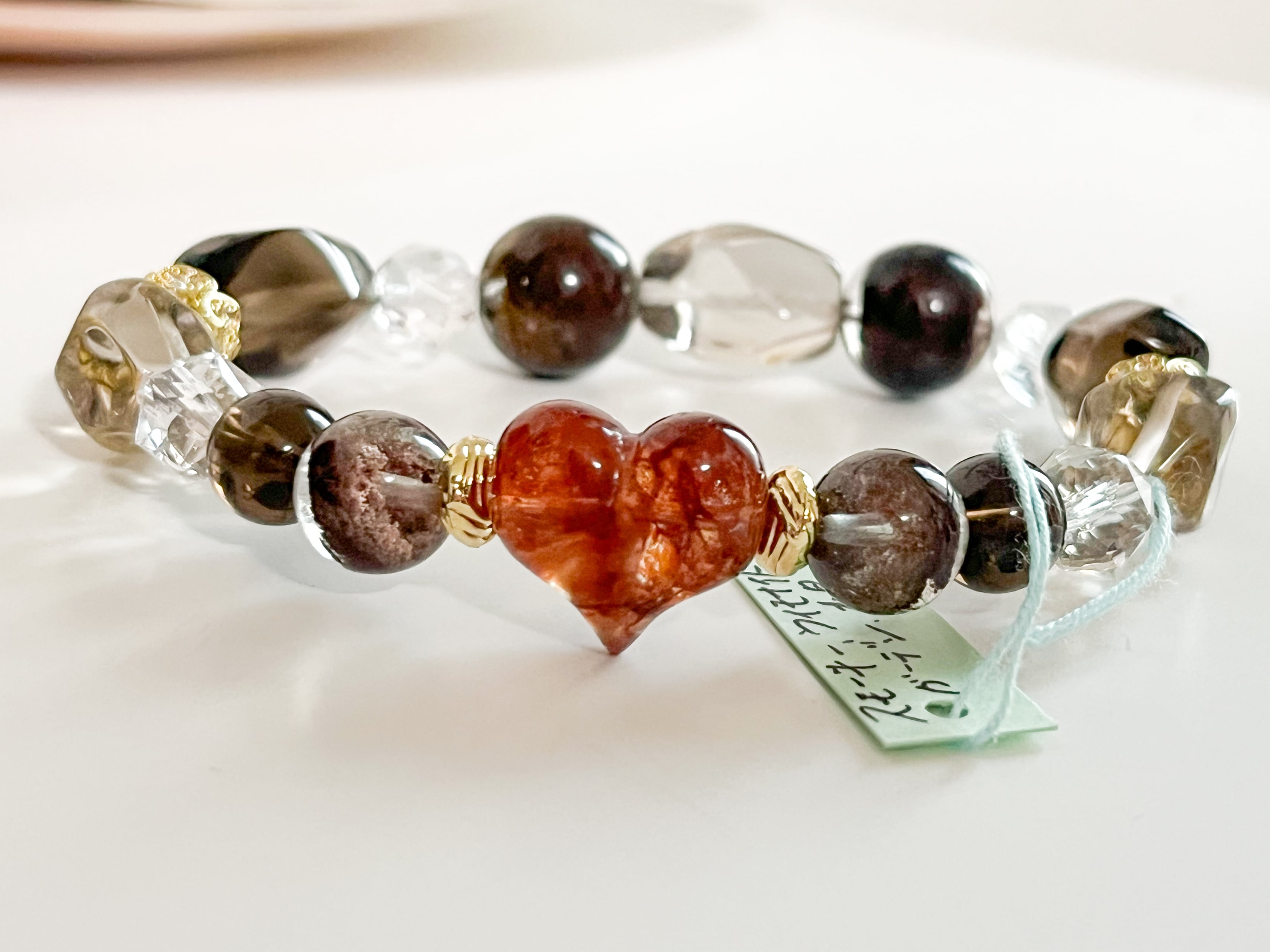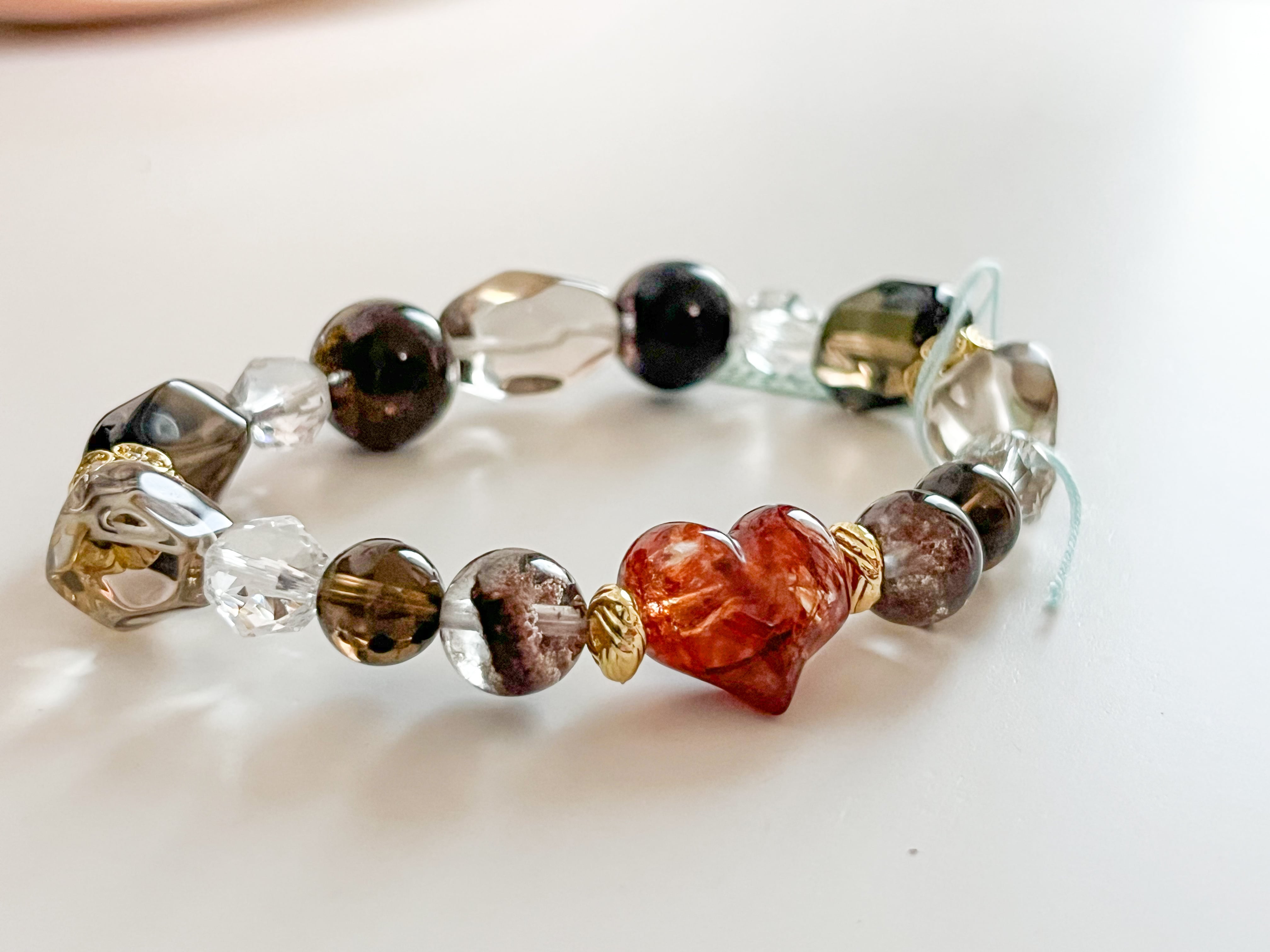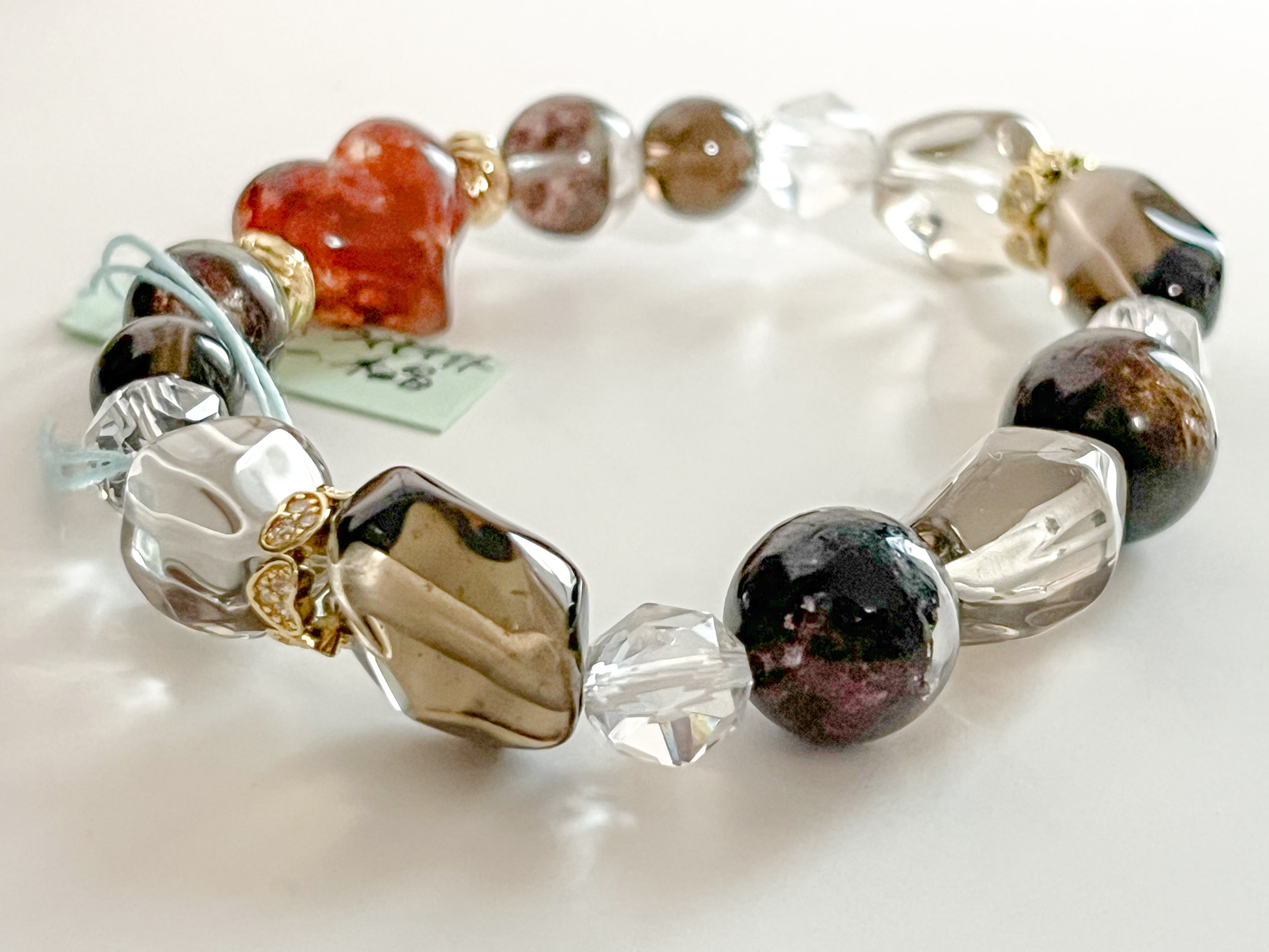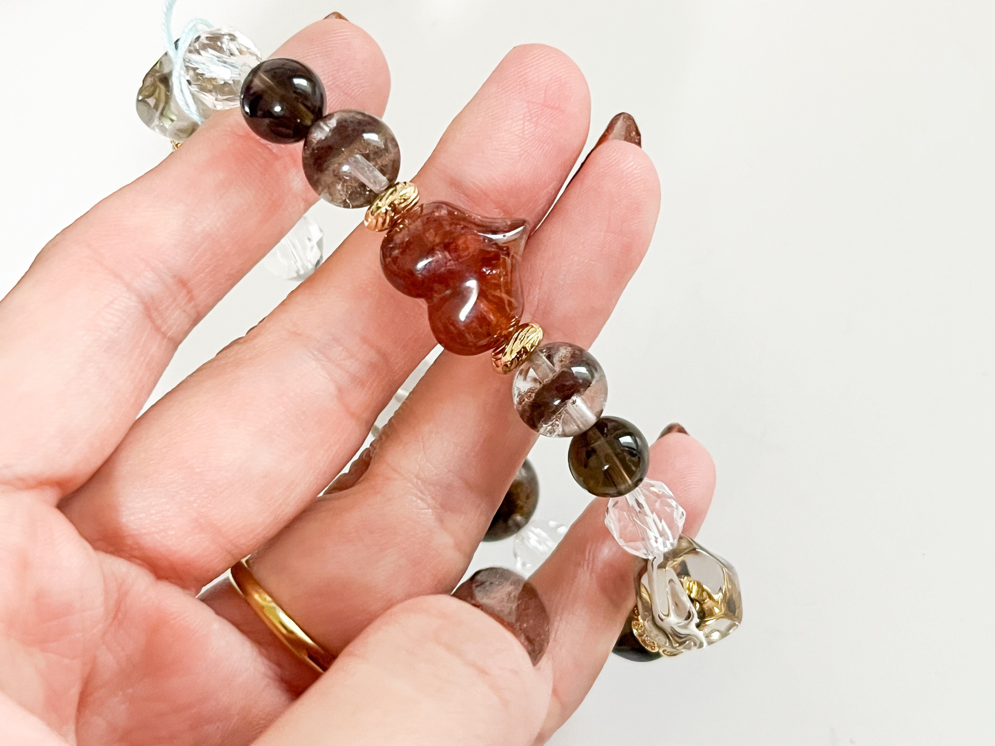 ライモナイトインクォーツとガーデンクォーツ、スモーキークォーツのブレスレット