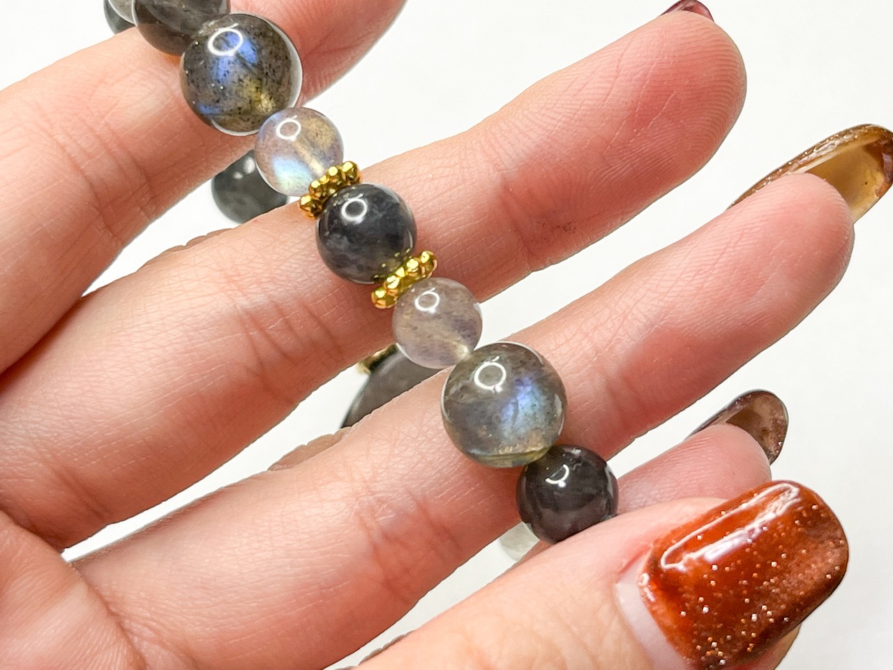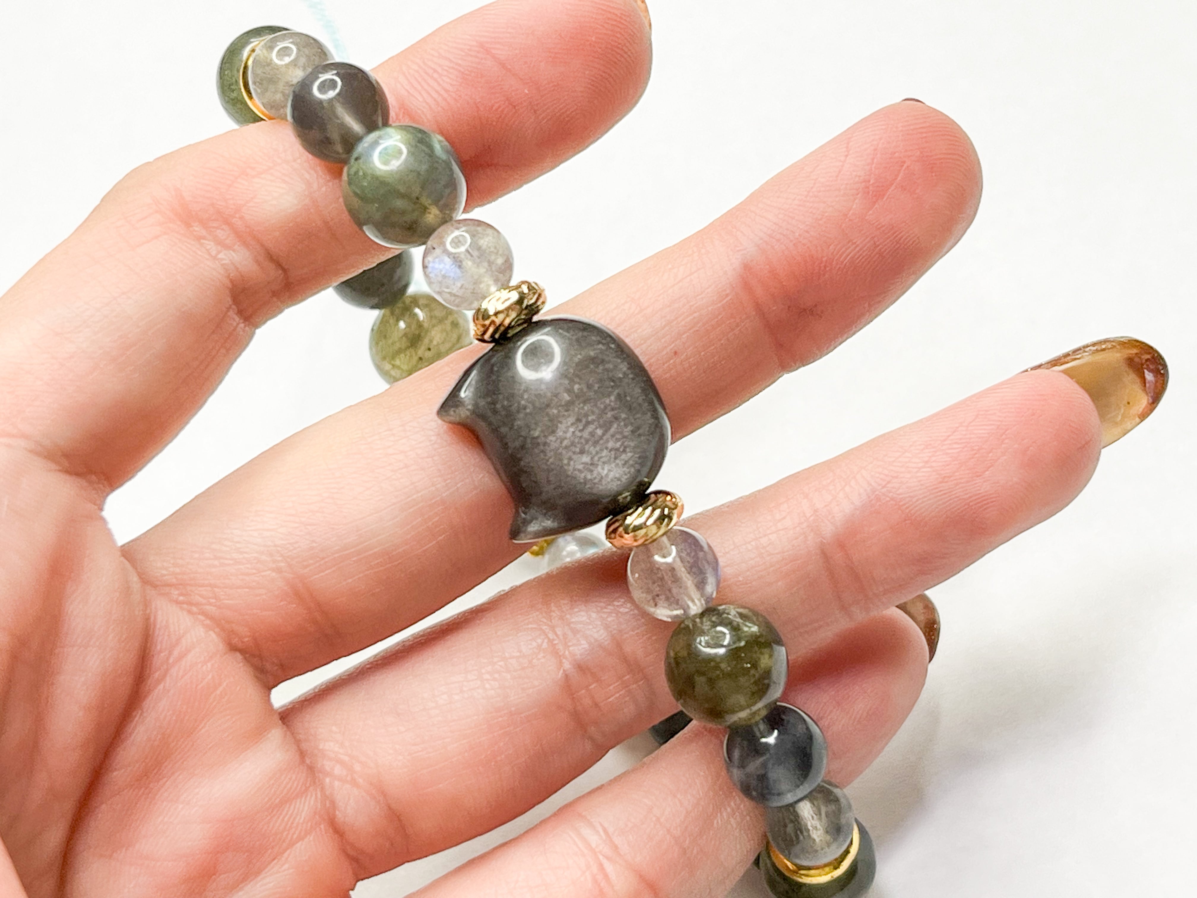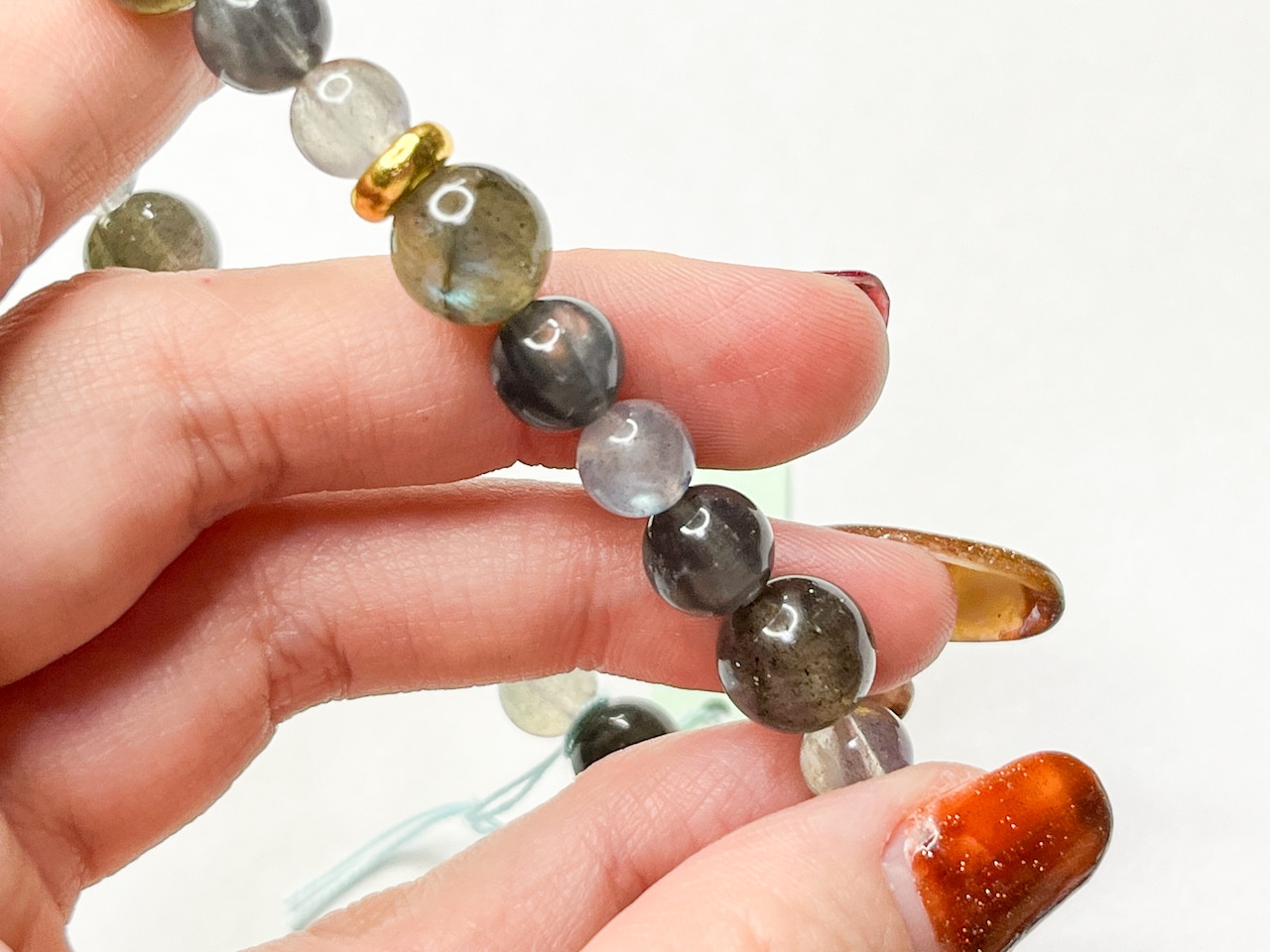 このブレスレットは、神秘的なオブシディアンと美しいラブラドライトが特徴です。素材それぞれの特性を生かし、心に安らぎとエネルギーを与えてくれるアイテムです。ヒーリングの力を感じられる一本です。