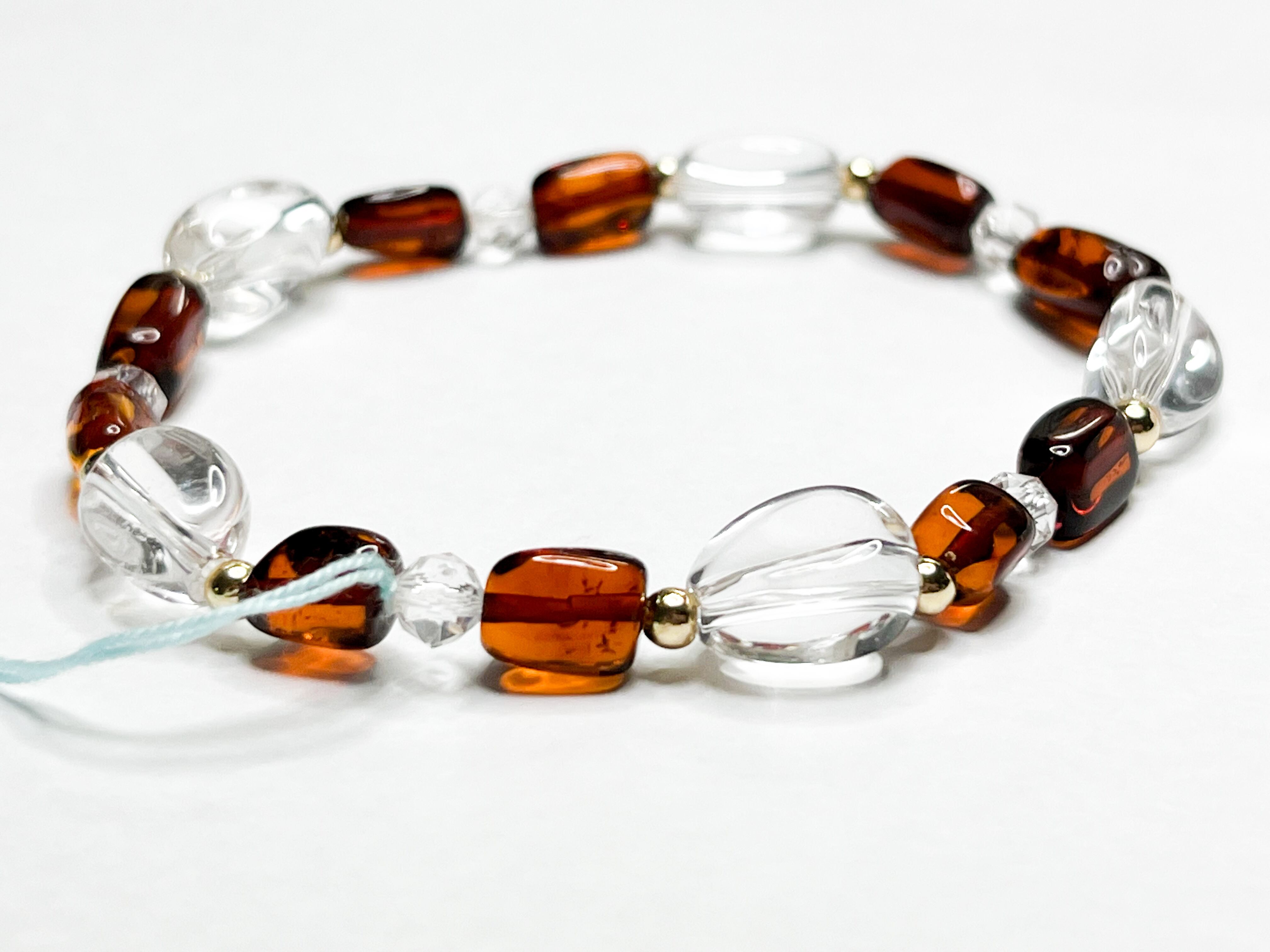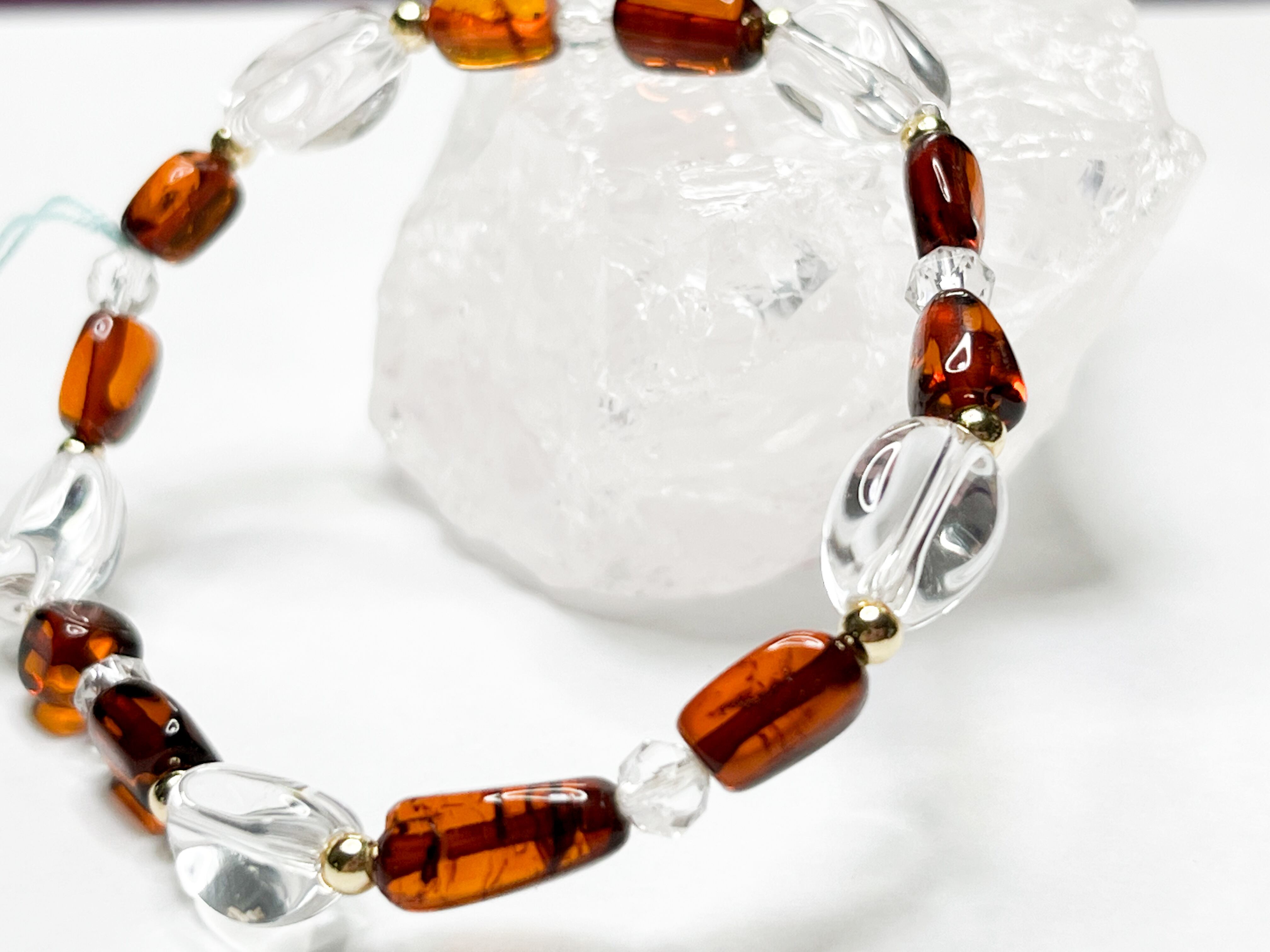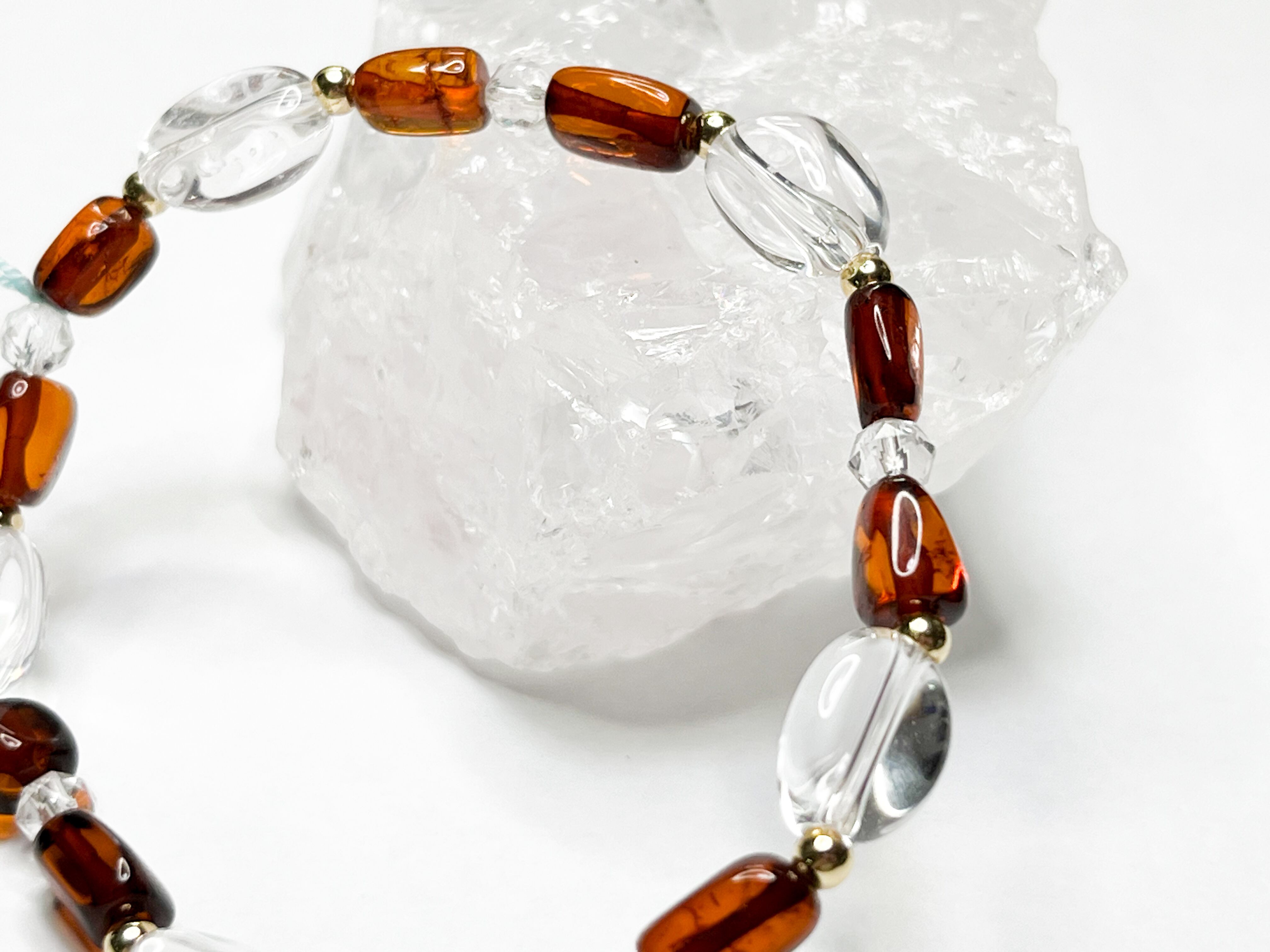 アンバーと水晶のブレスレット