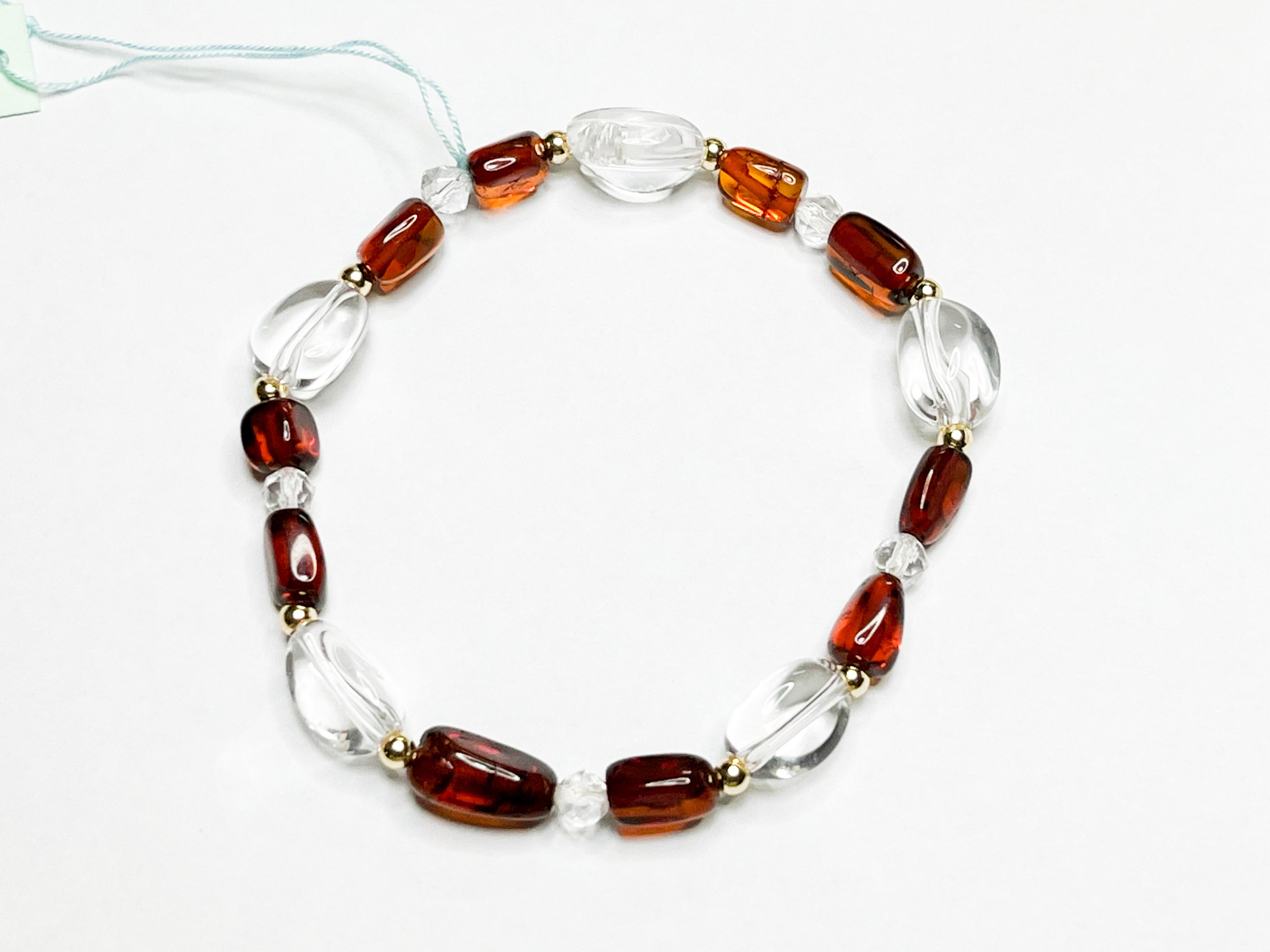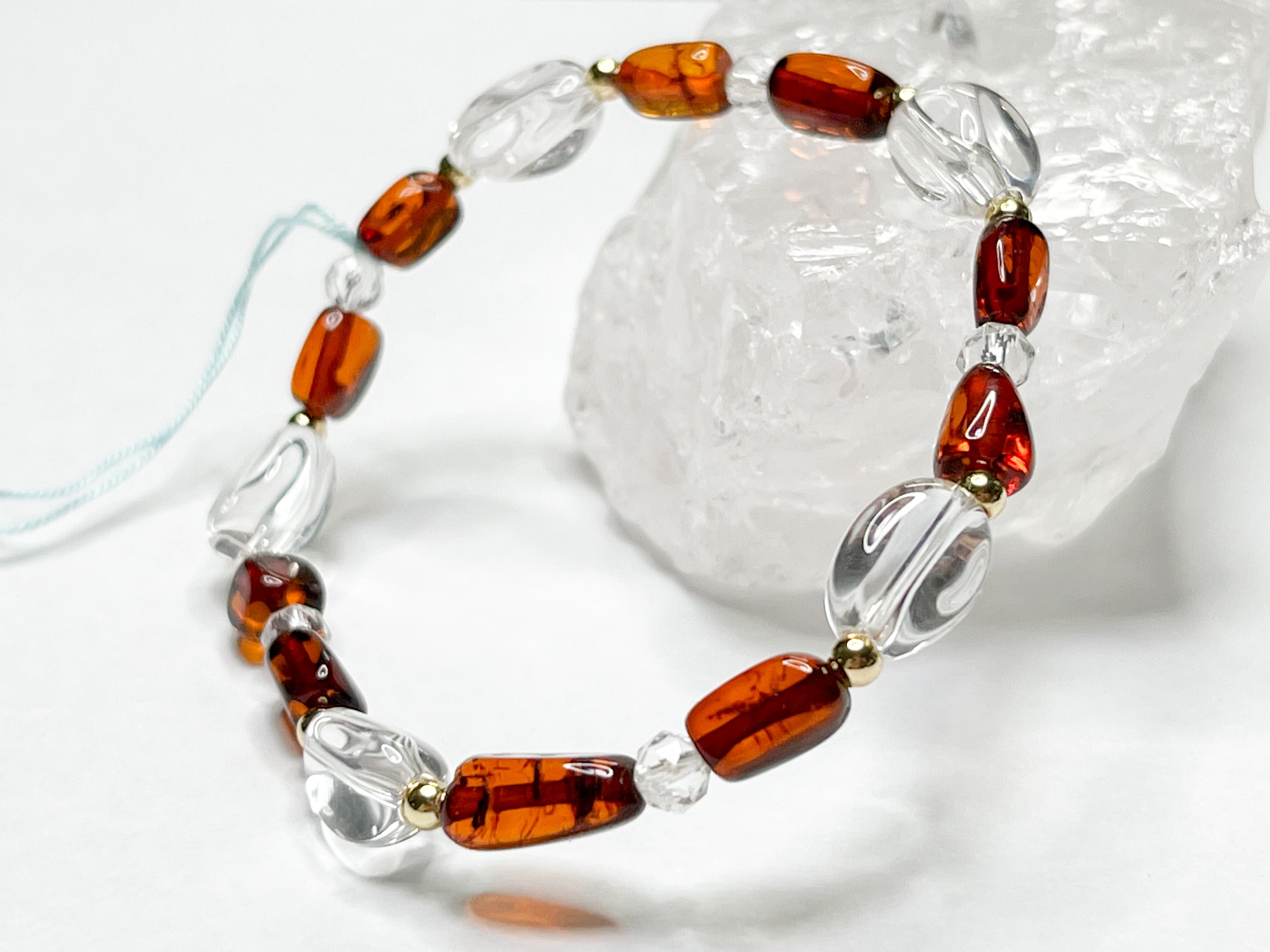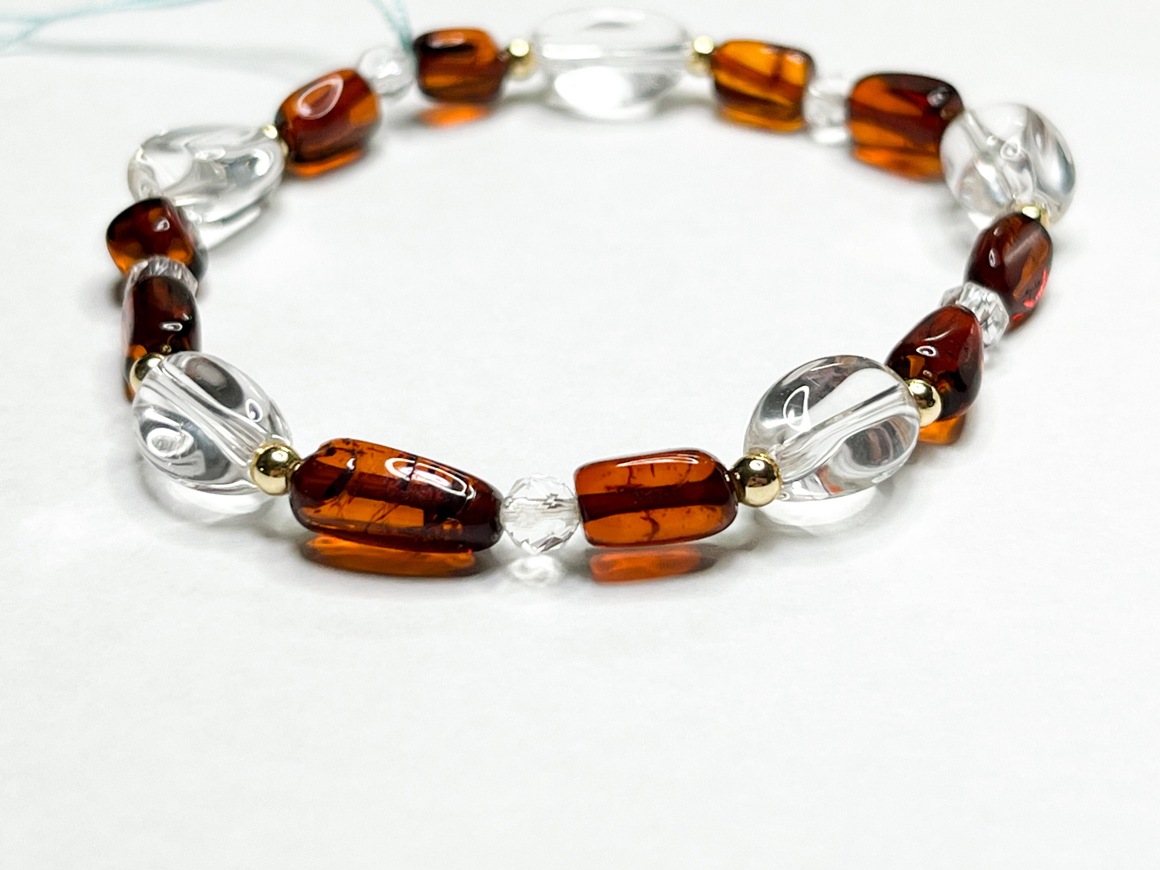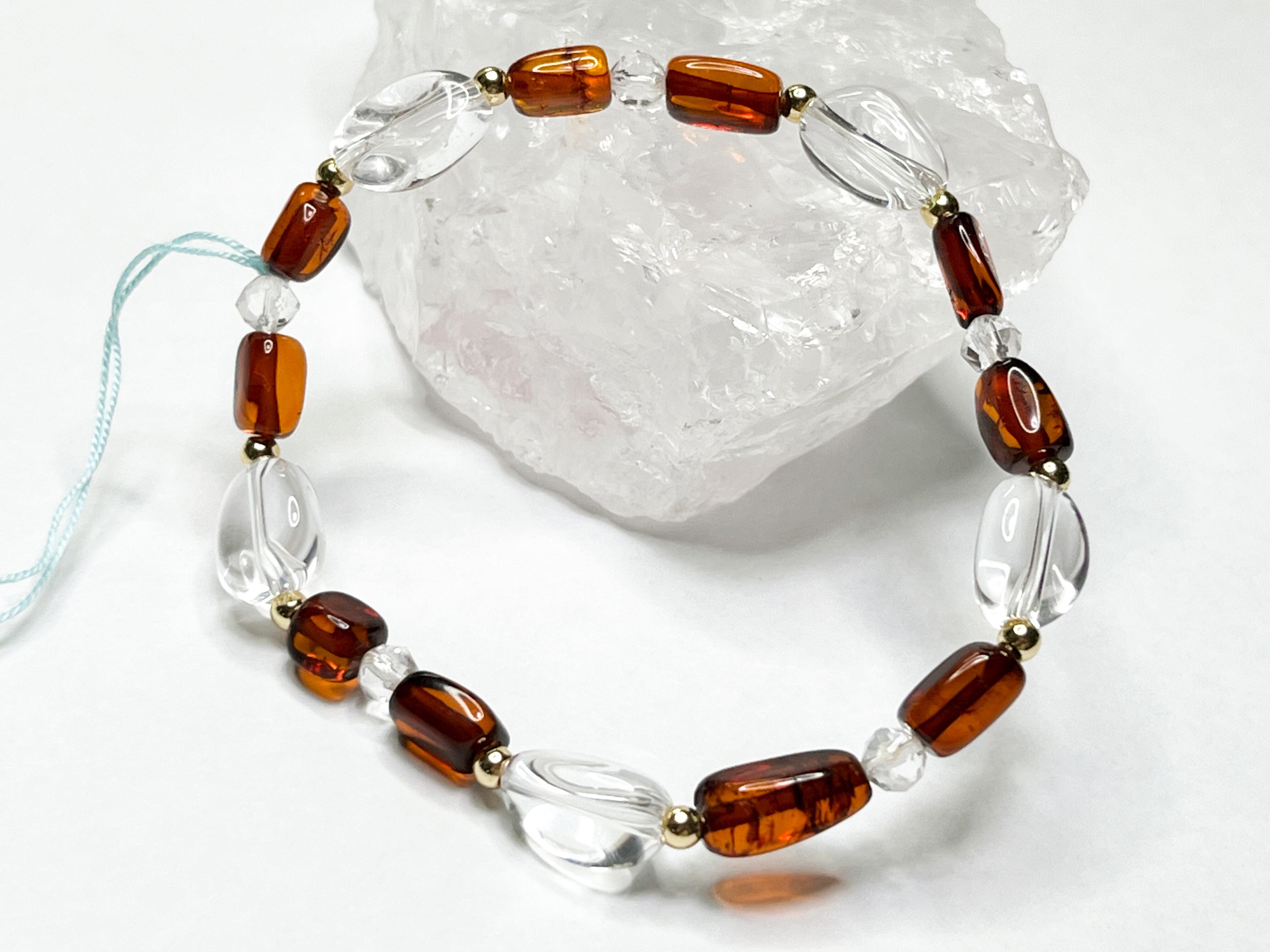 アンバーと水晶のブレスレット