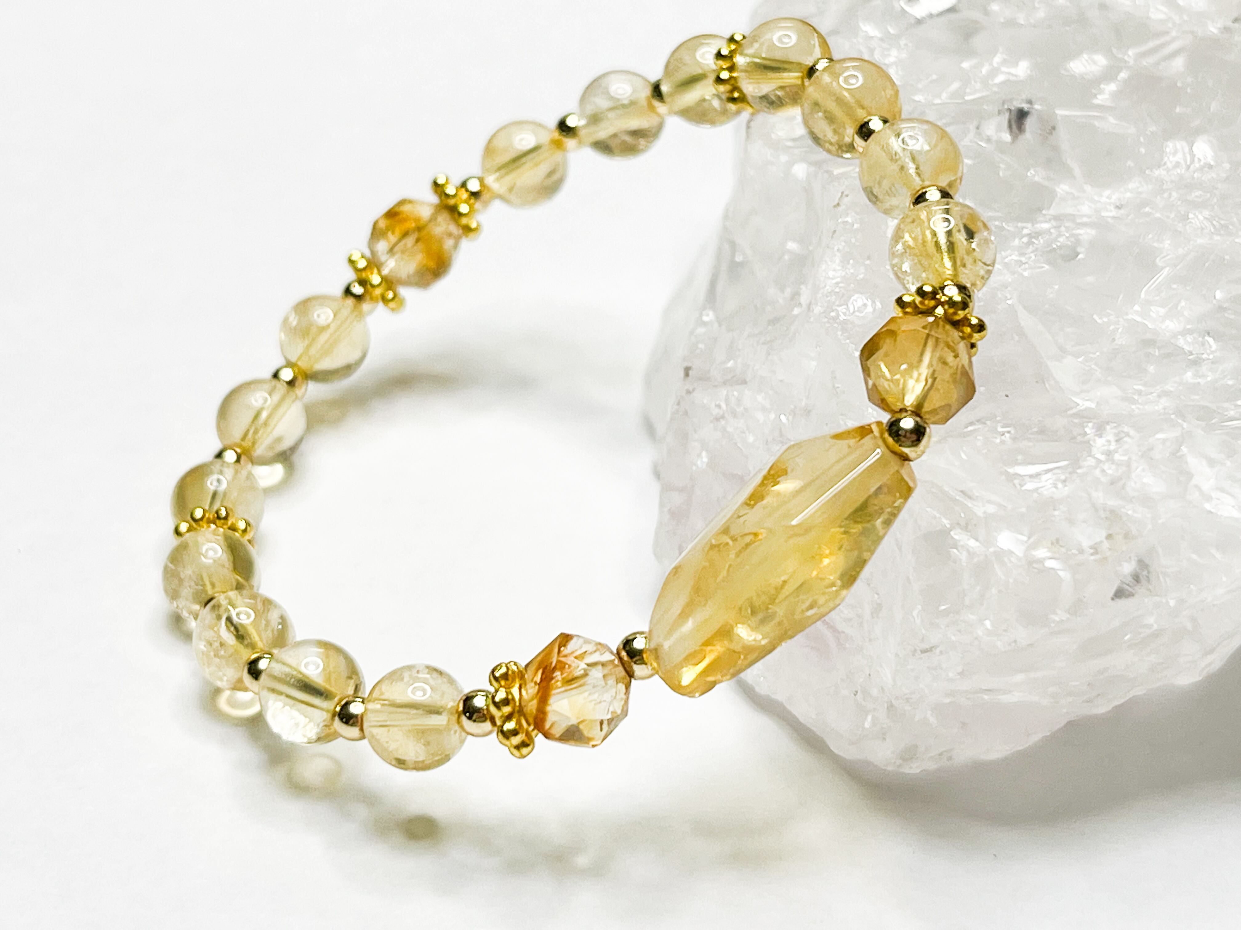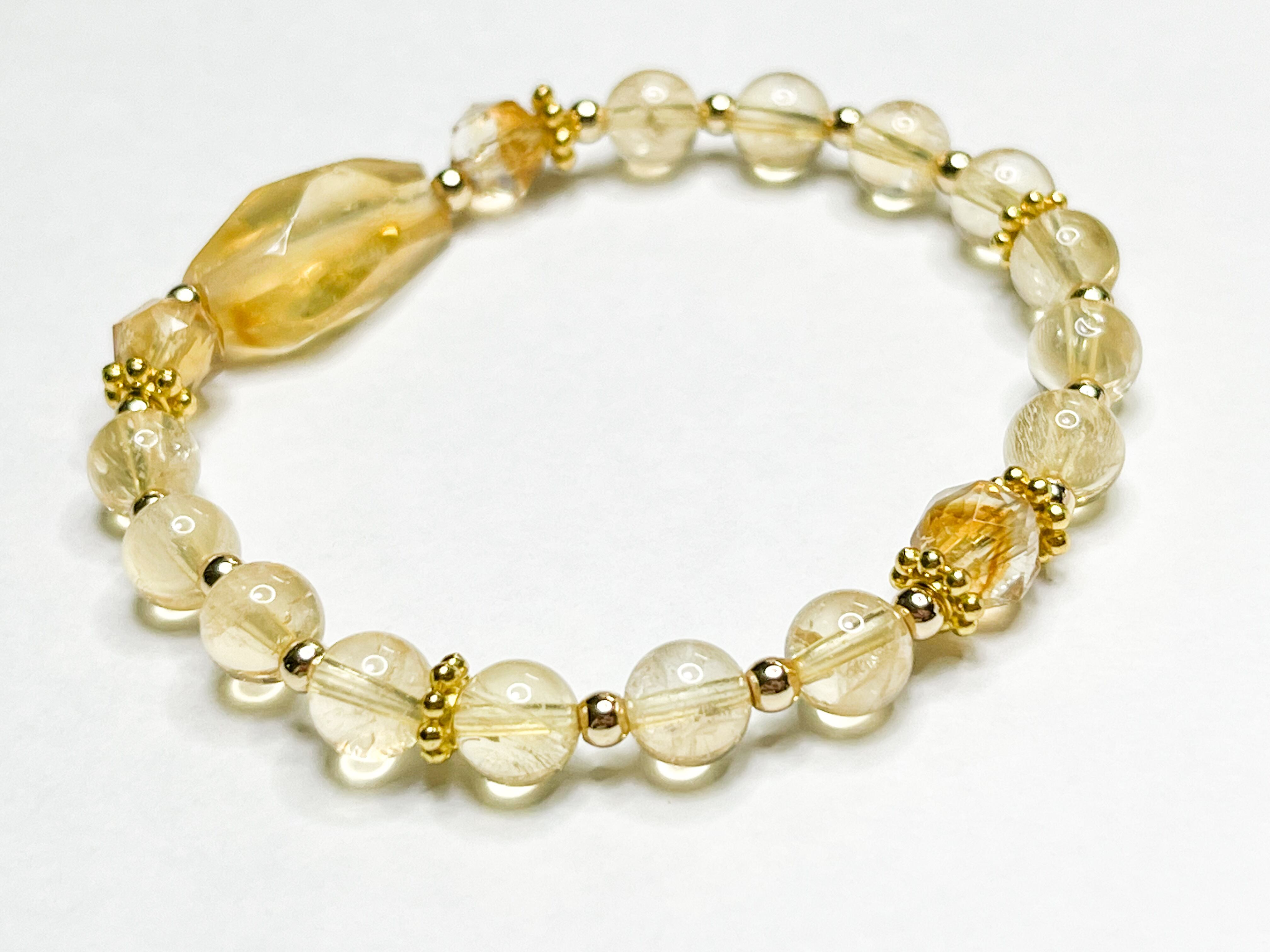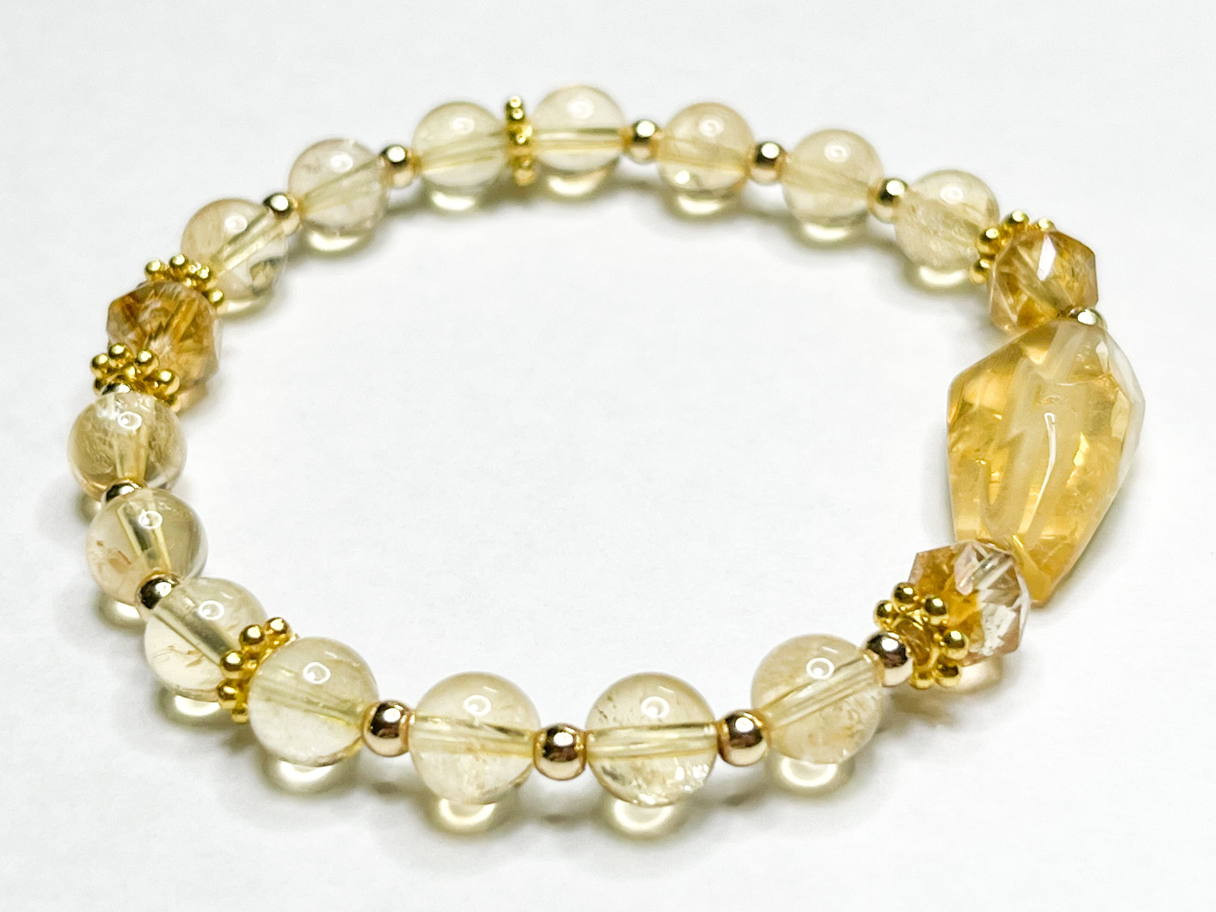 このブレスレットを身につけることで、毎日の生活に前向きなエネルギーとともに心の安らぎがもたらされるでしょう。シトリンの美しい輝きが、あなたの毎日をもっと素敵に演出します。