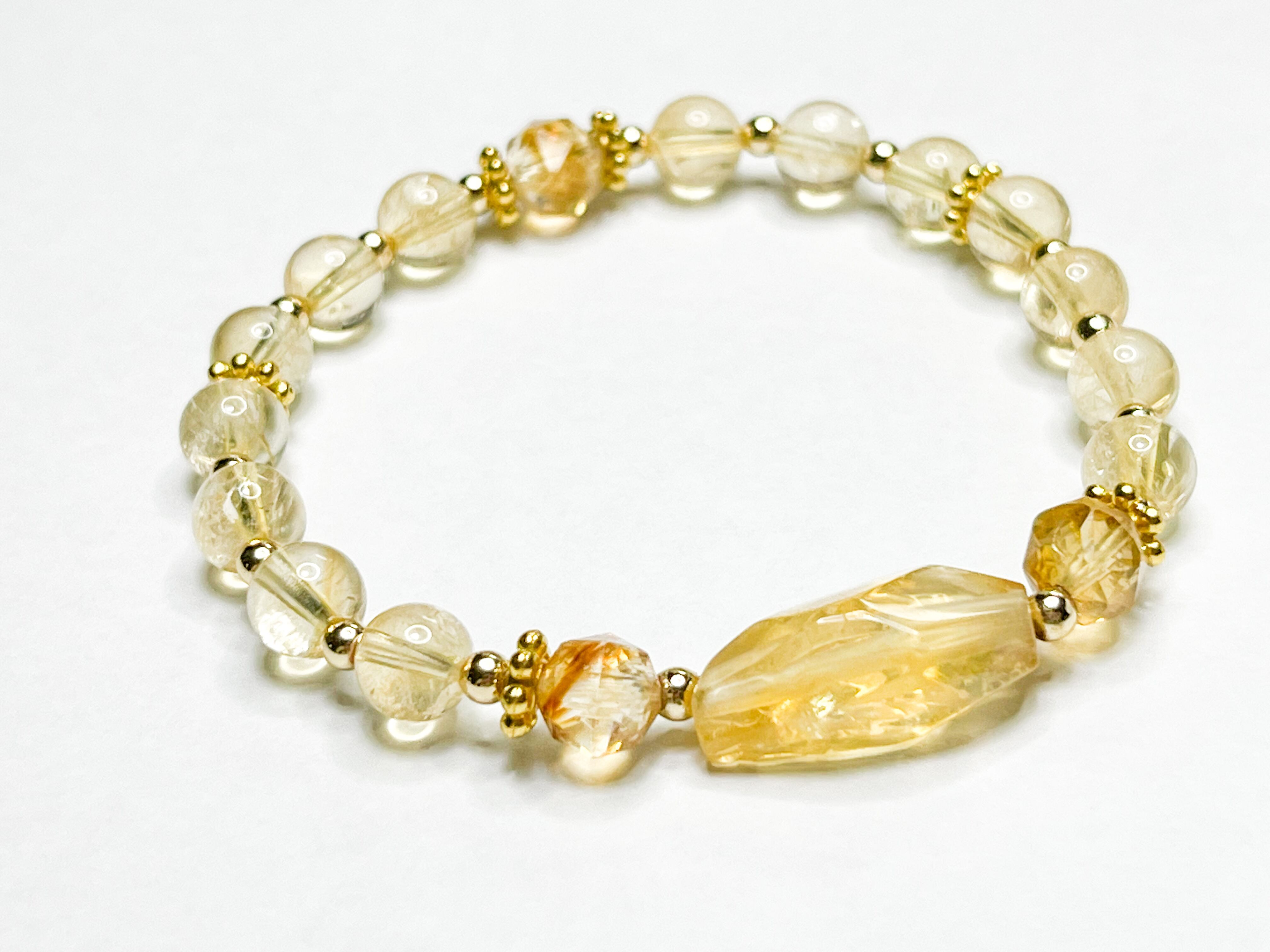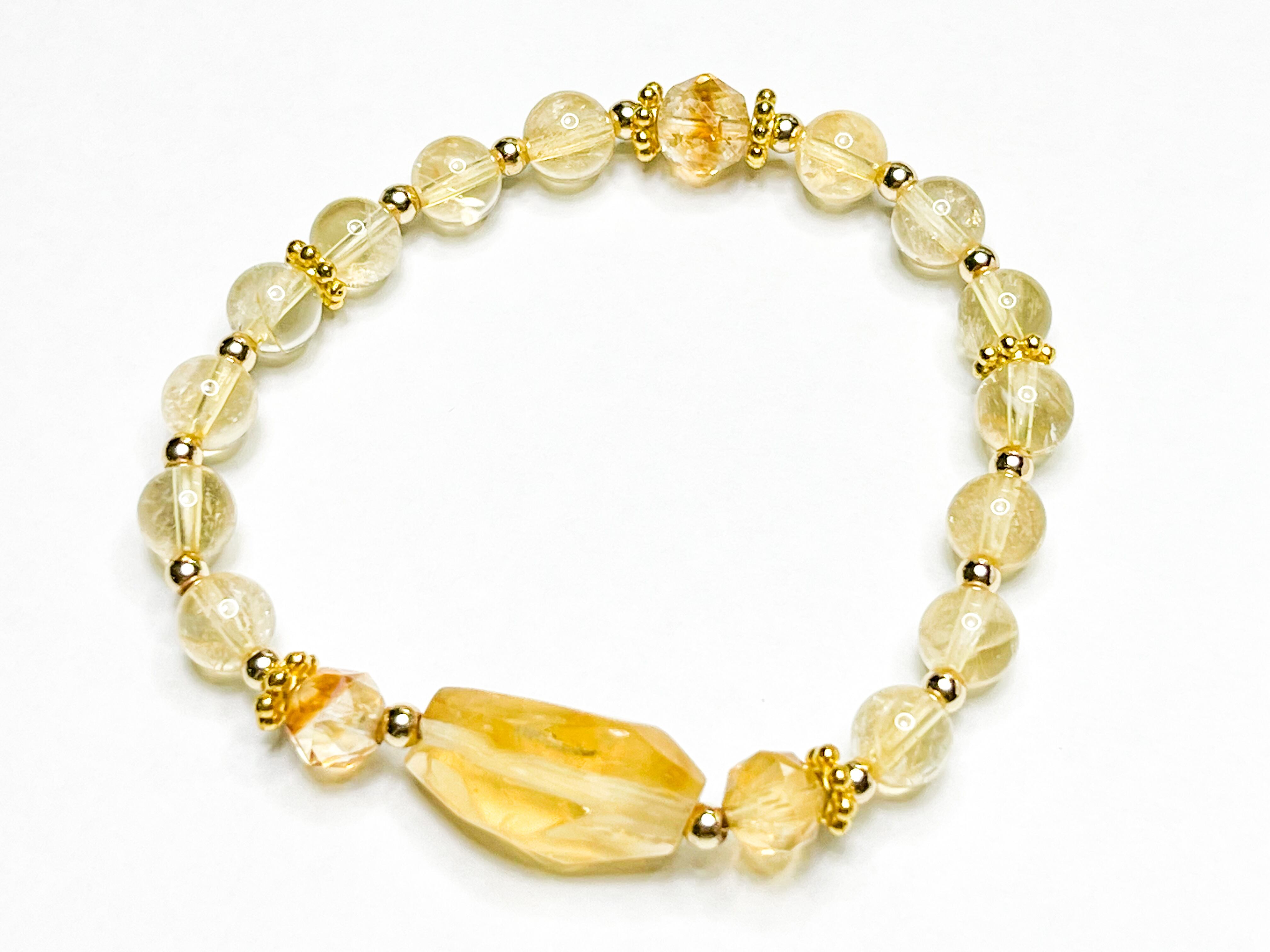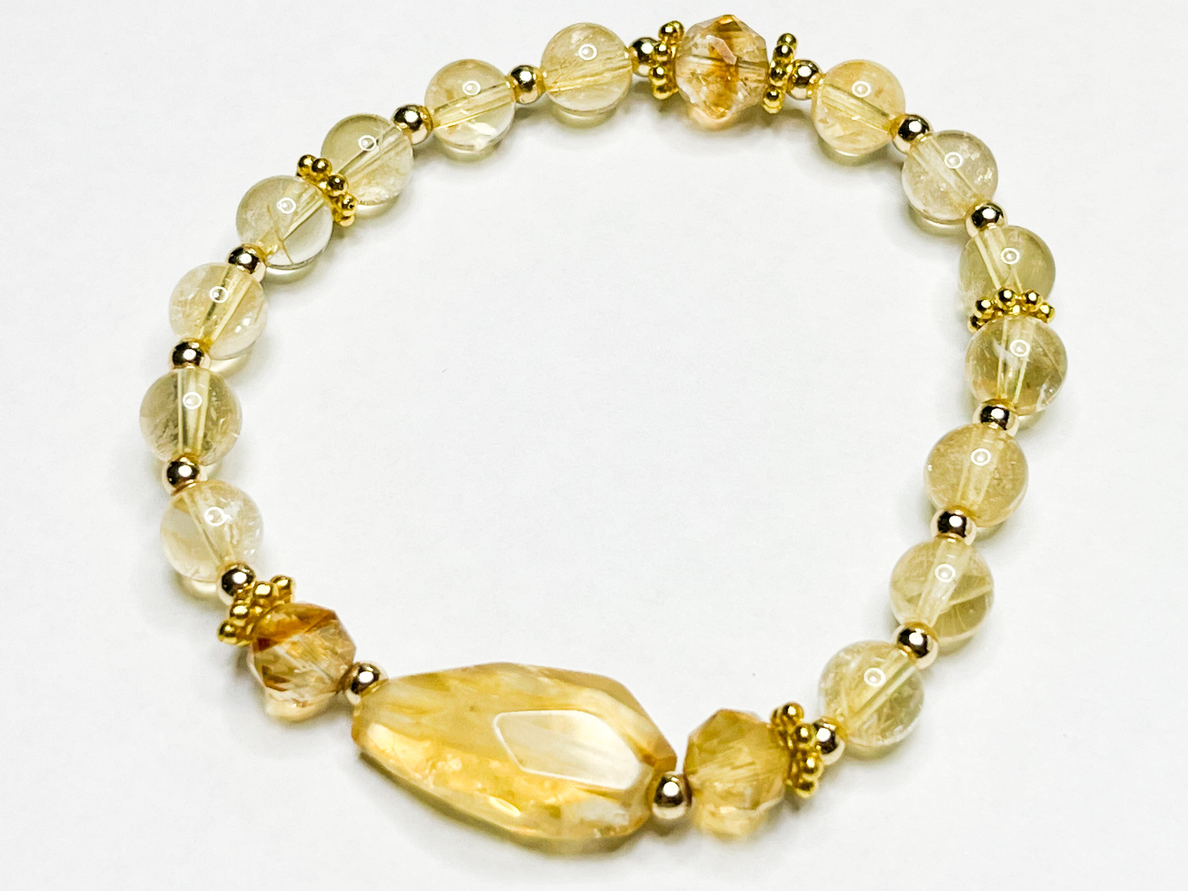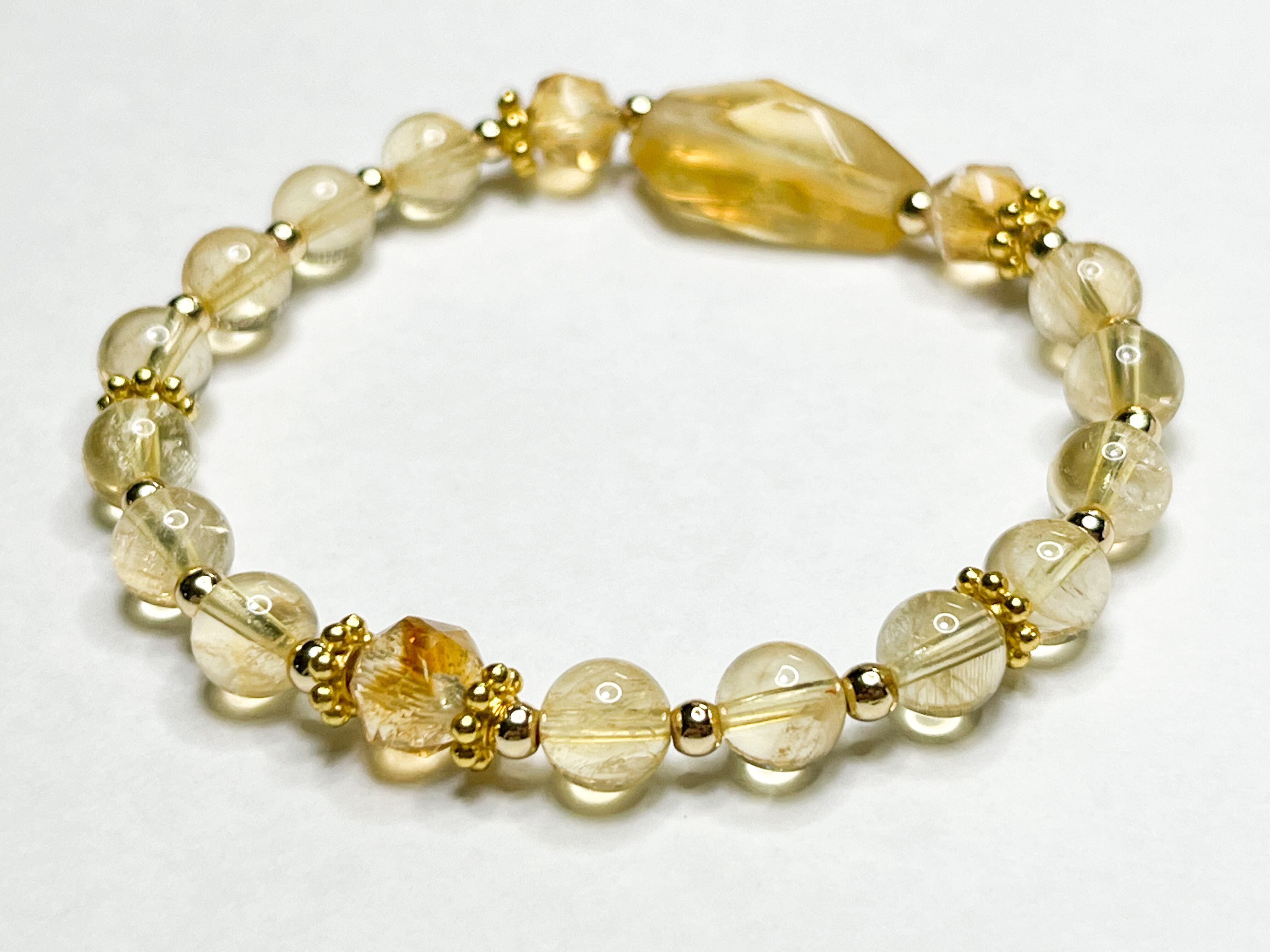 このブレスレットを身につけることで、毎日の生活に前向きなエネルギーとともに心の安らぎがもたらされるでしょう。シトリンの美しい輝きが、あなたの毎日をもっと素敵に演出します。