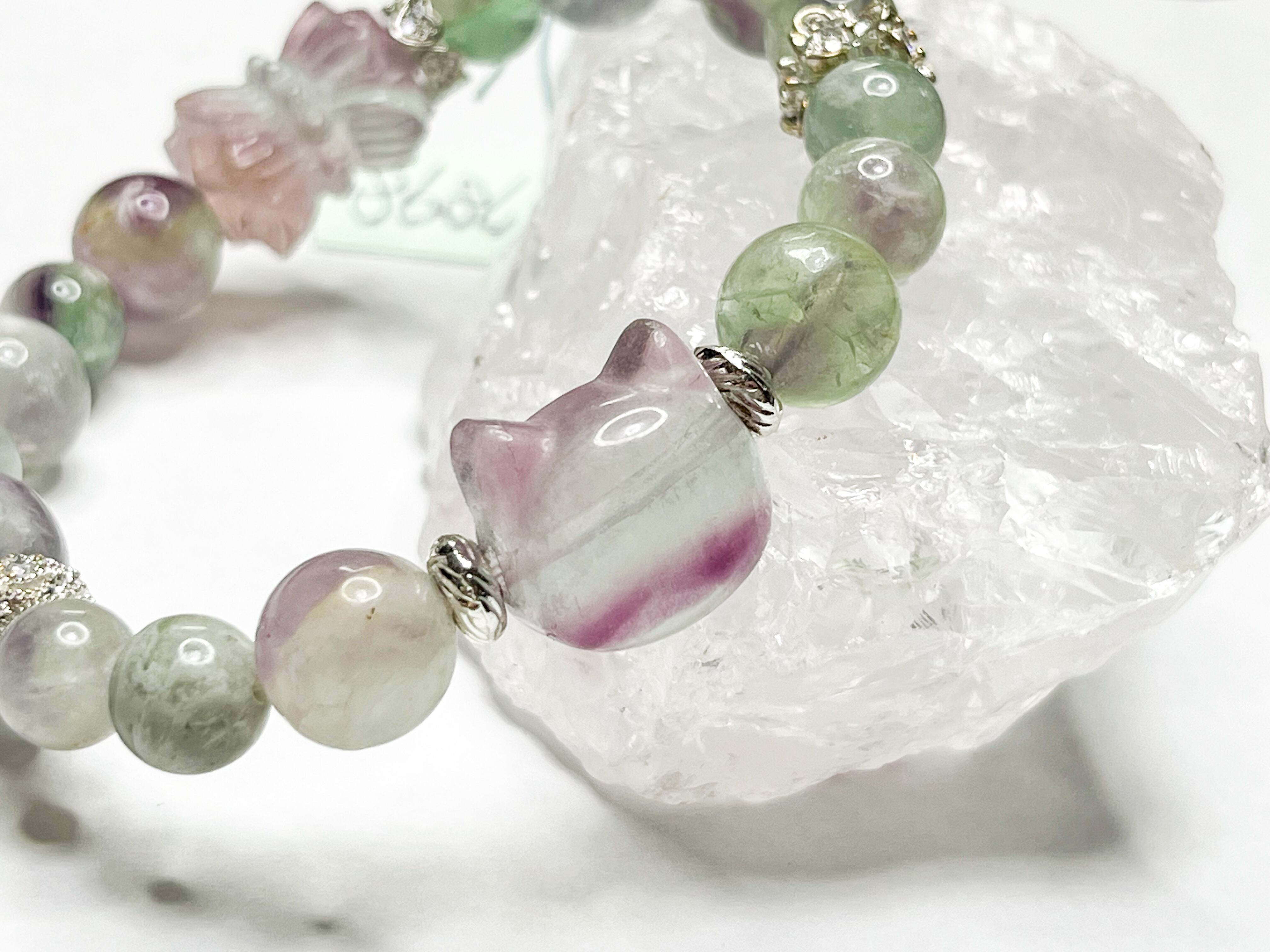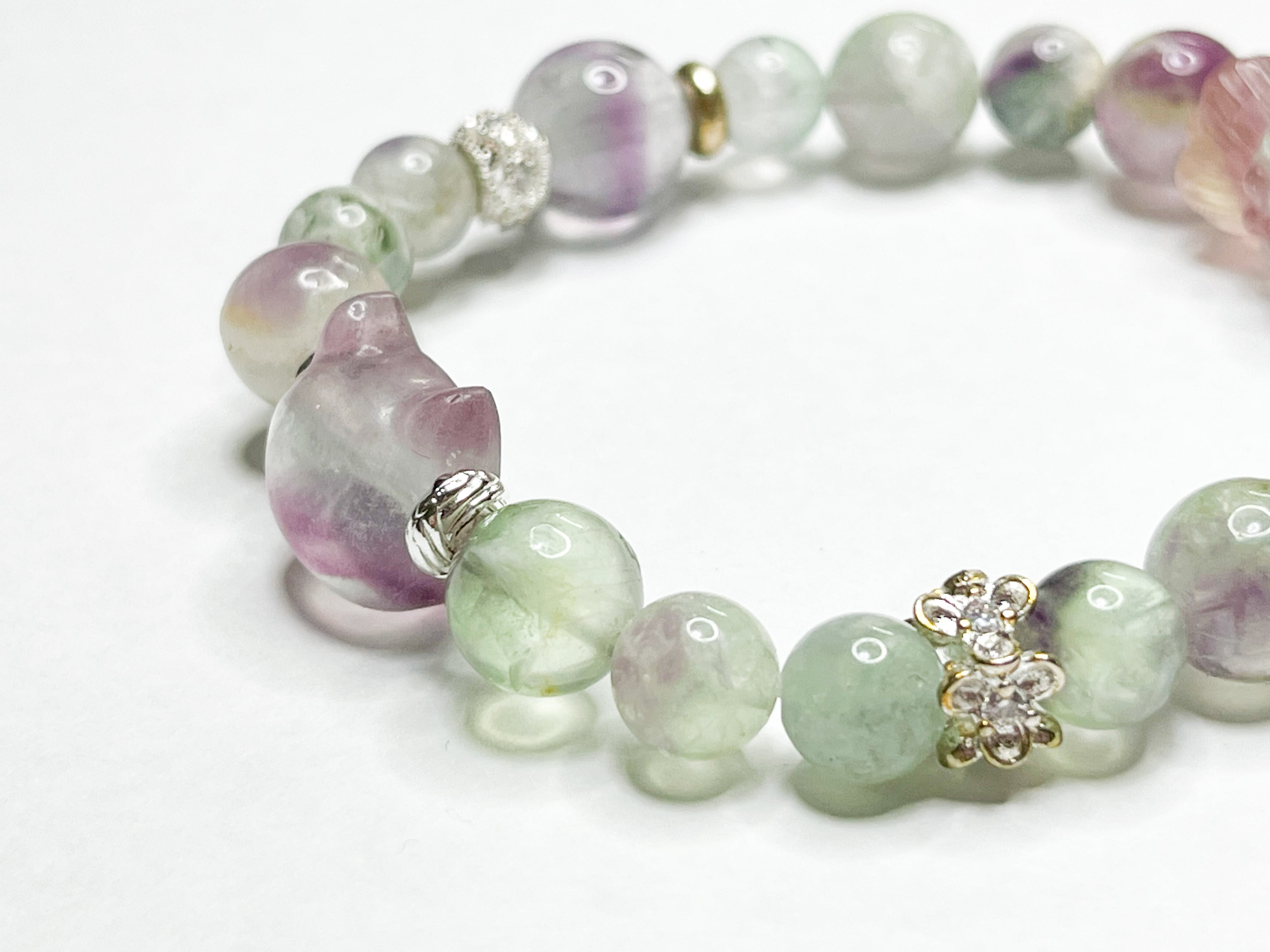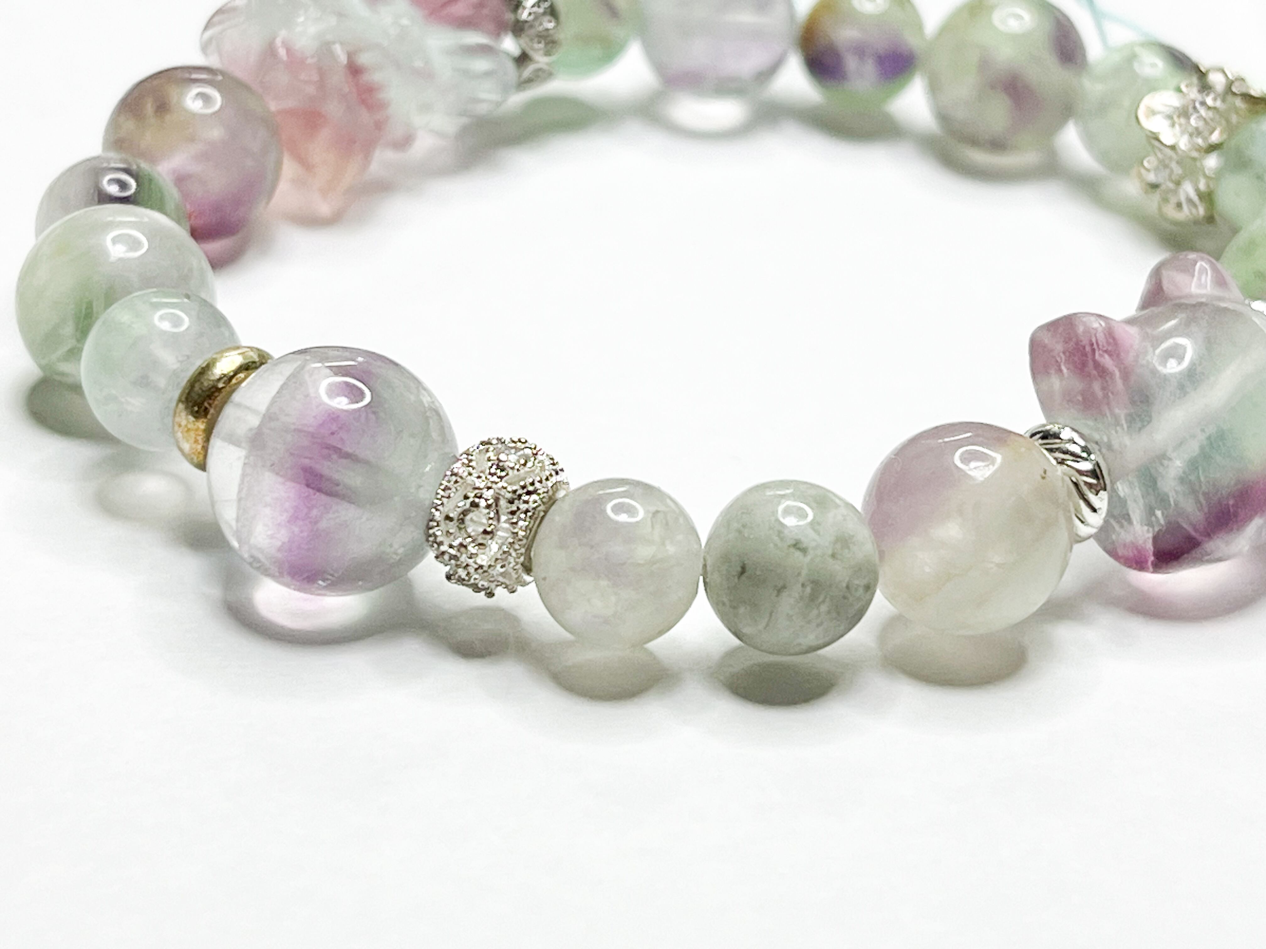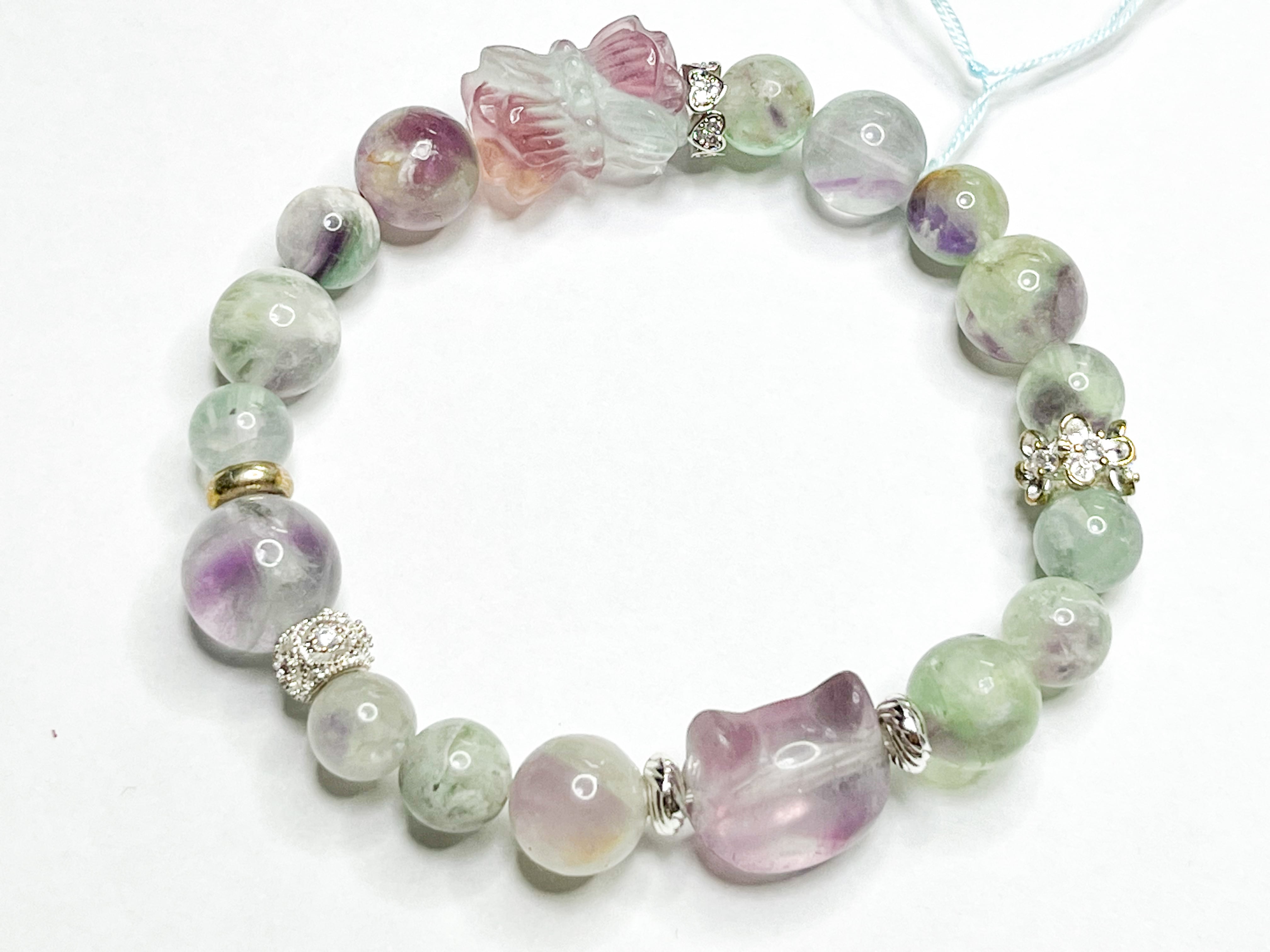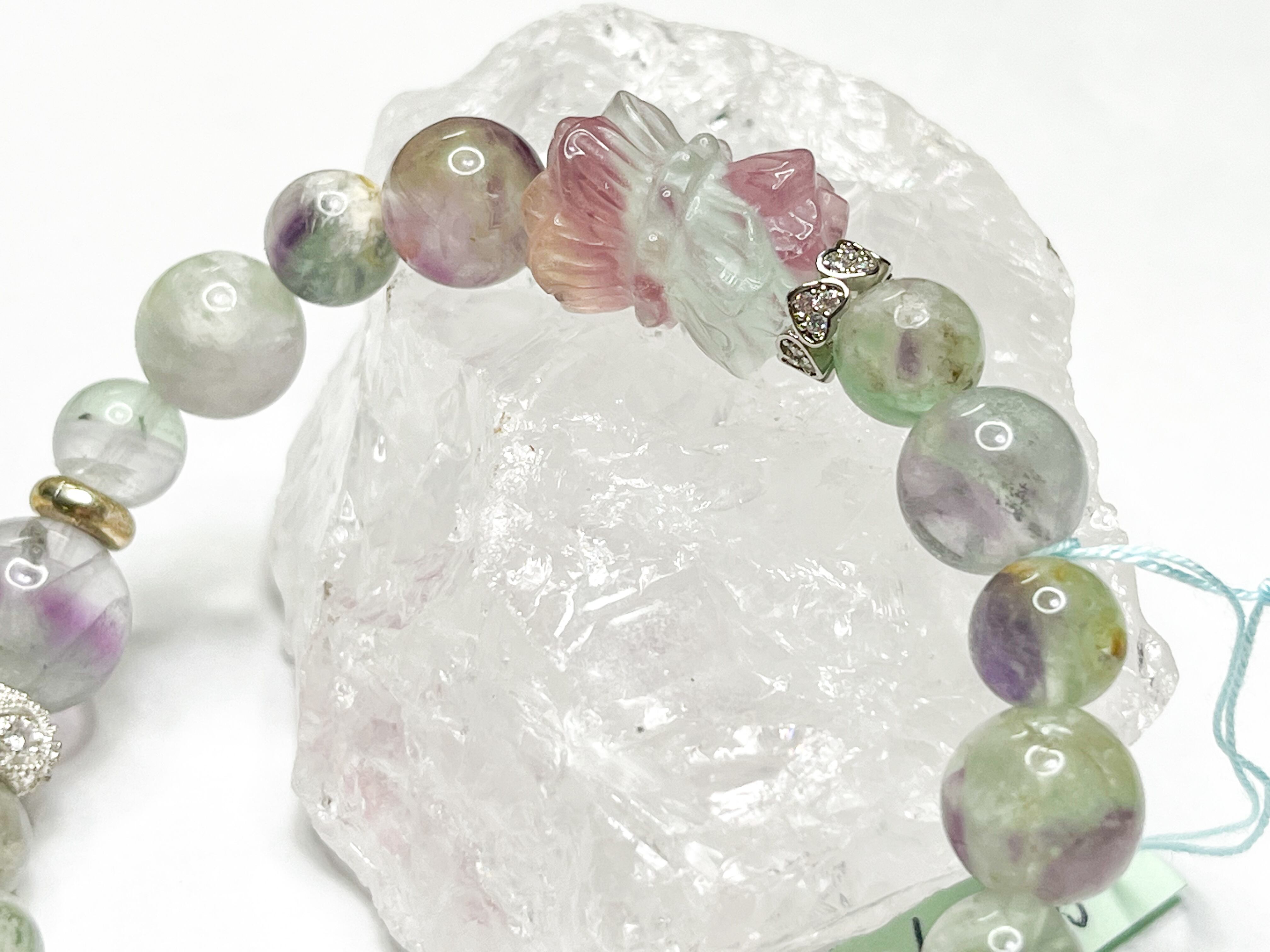 エンジェルフェザーフローライトとフローライトの双蓮花のブレスレット