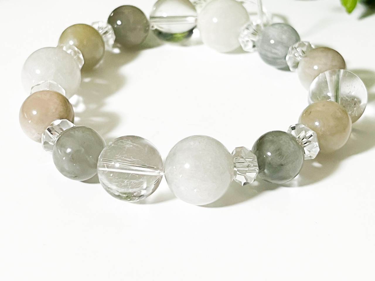 ホワイトルチルとブルールチル、プラチナルチルのブレスレットは、あなたの手元に独自の輝きを宿す特別なアイテムです。