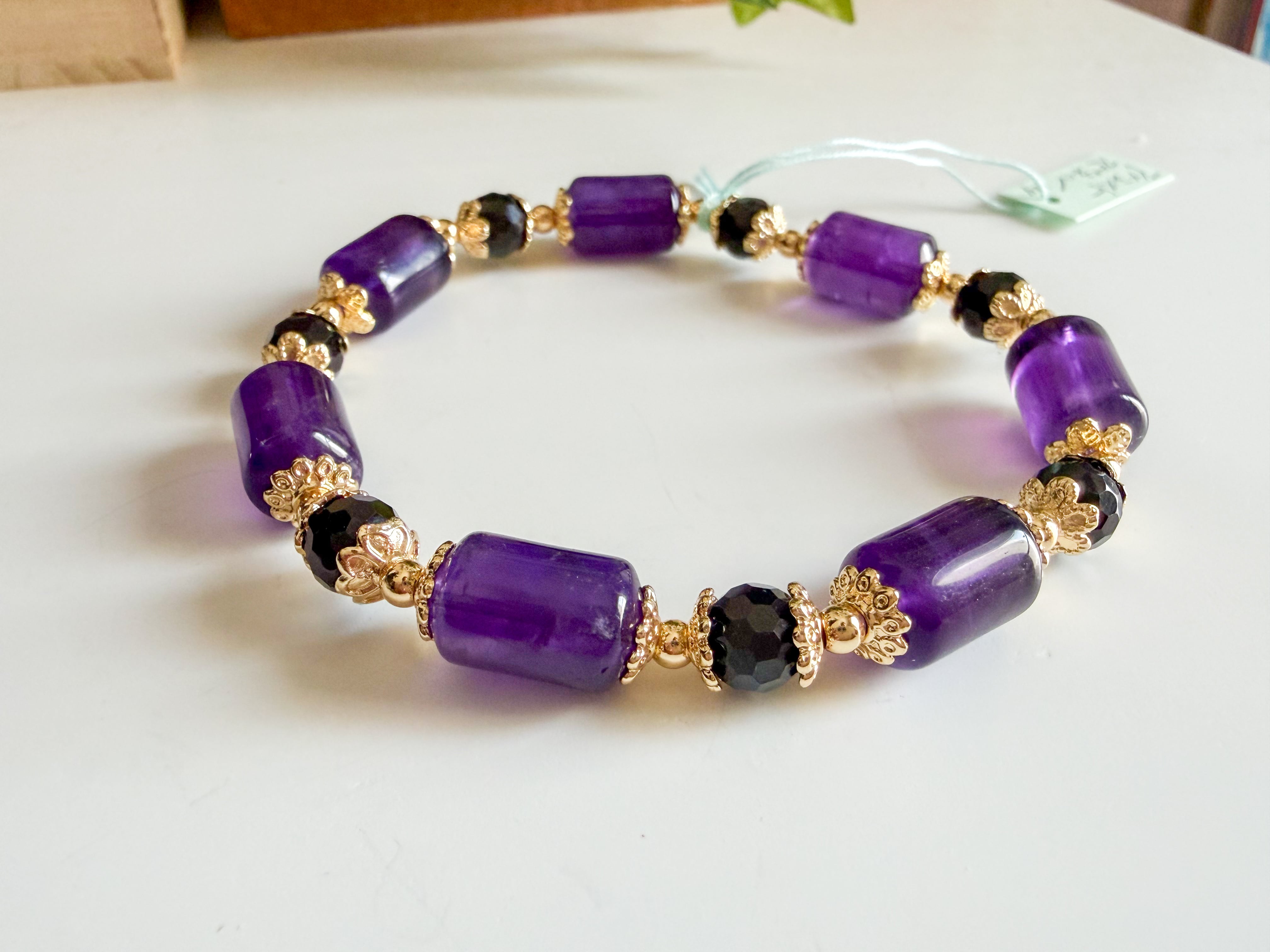忙しい日常の中で、心に寄り添い、あなたに勇気と静けさをもたらす、アメシストとブラックスピネルのゴージャスブレスレットです。