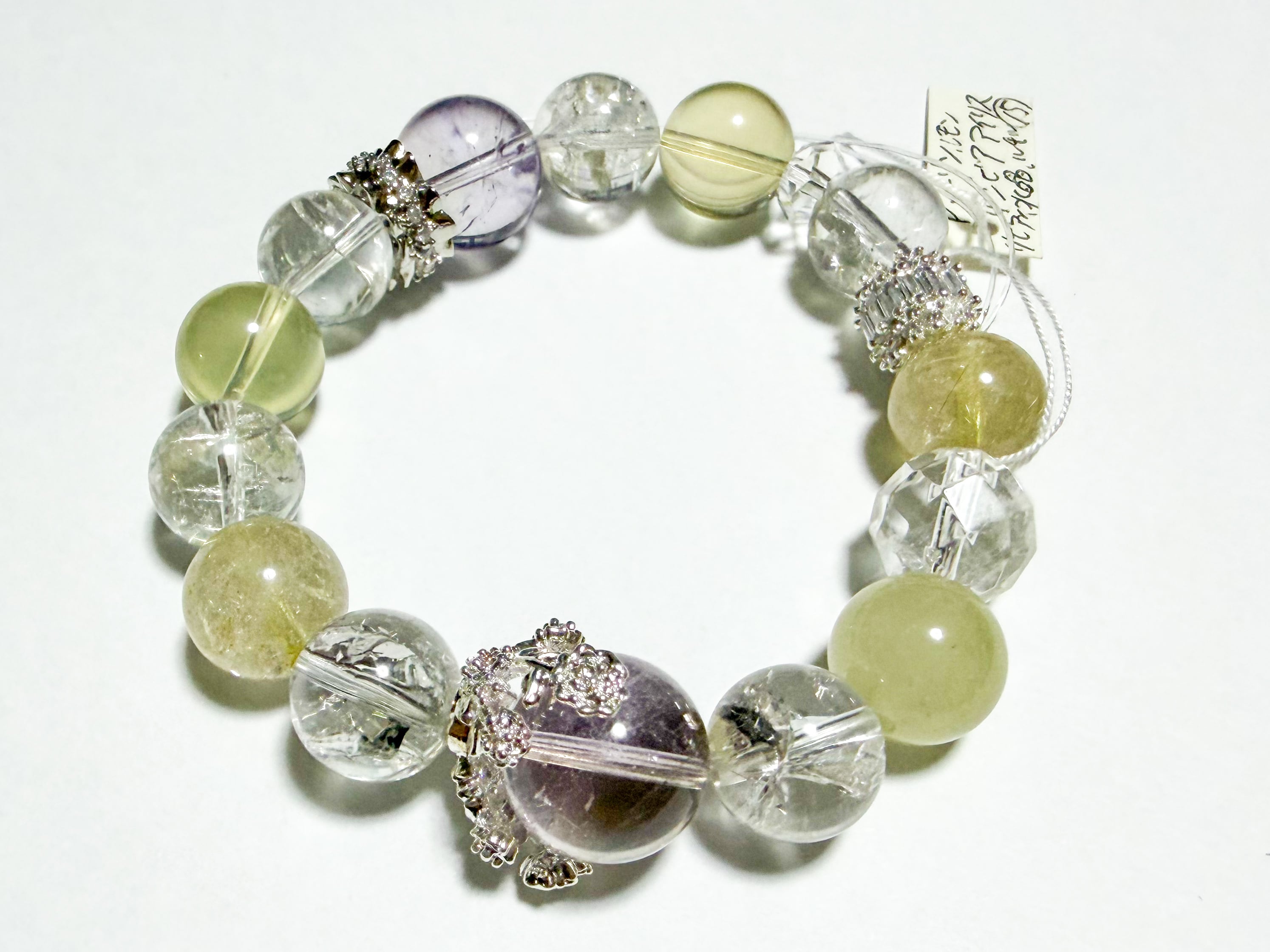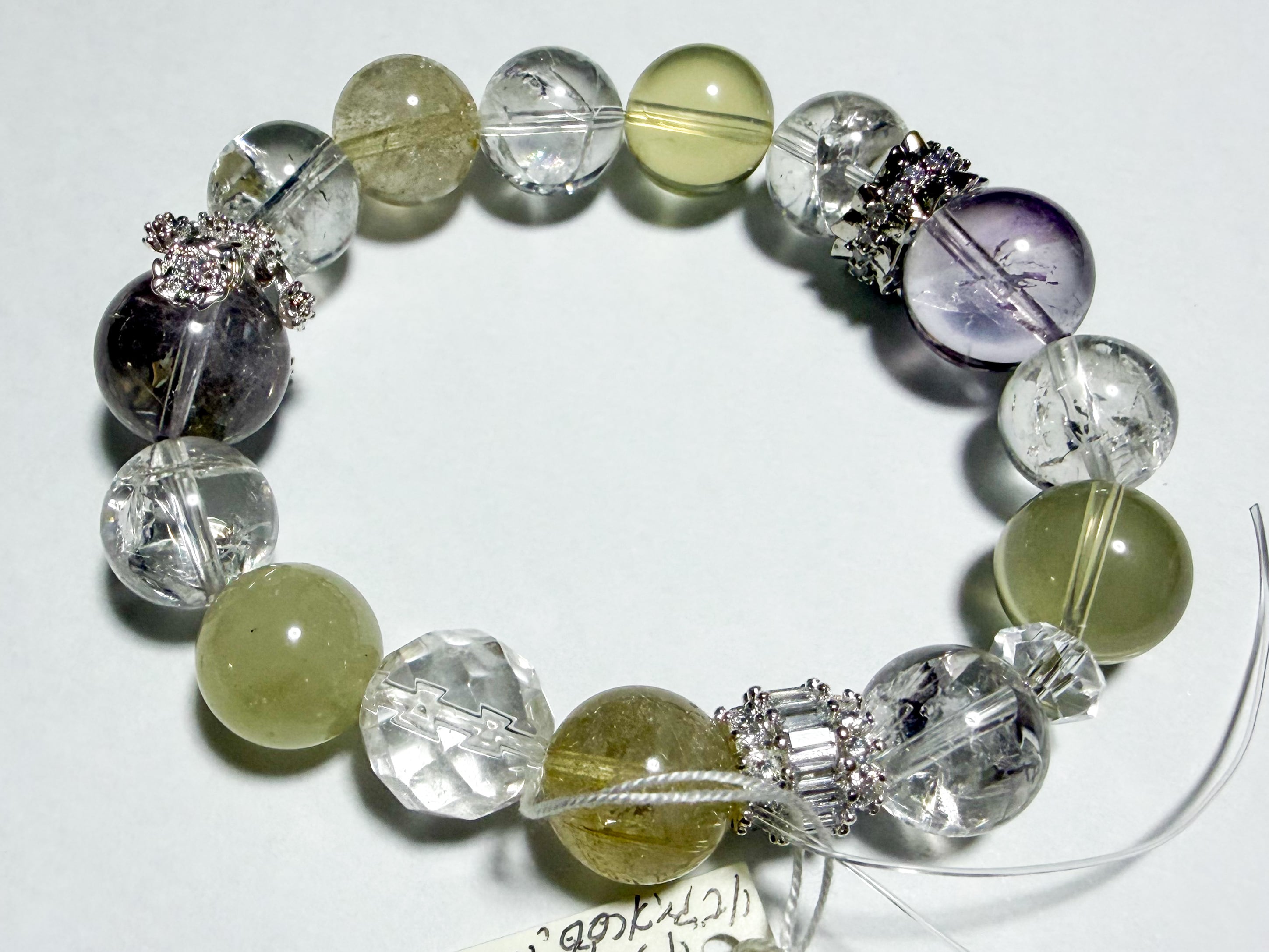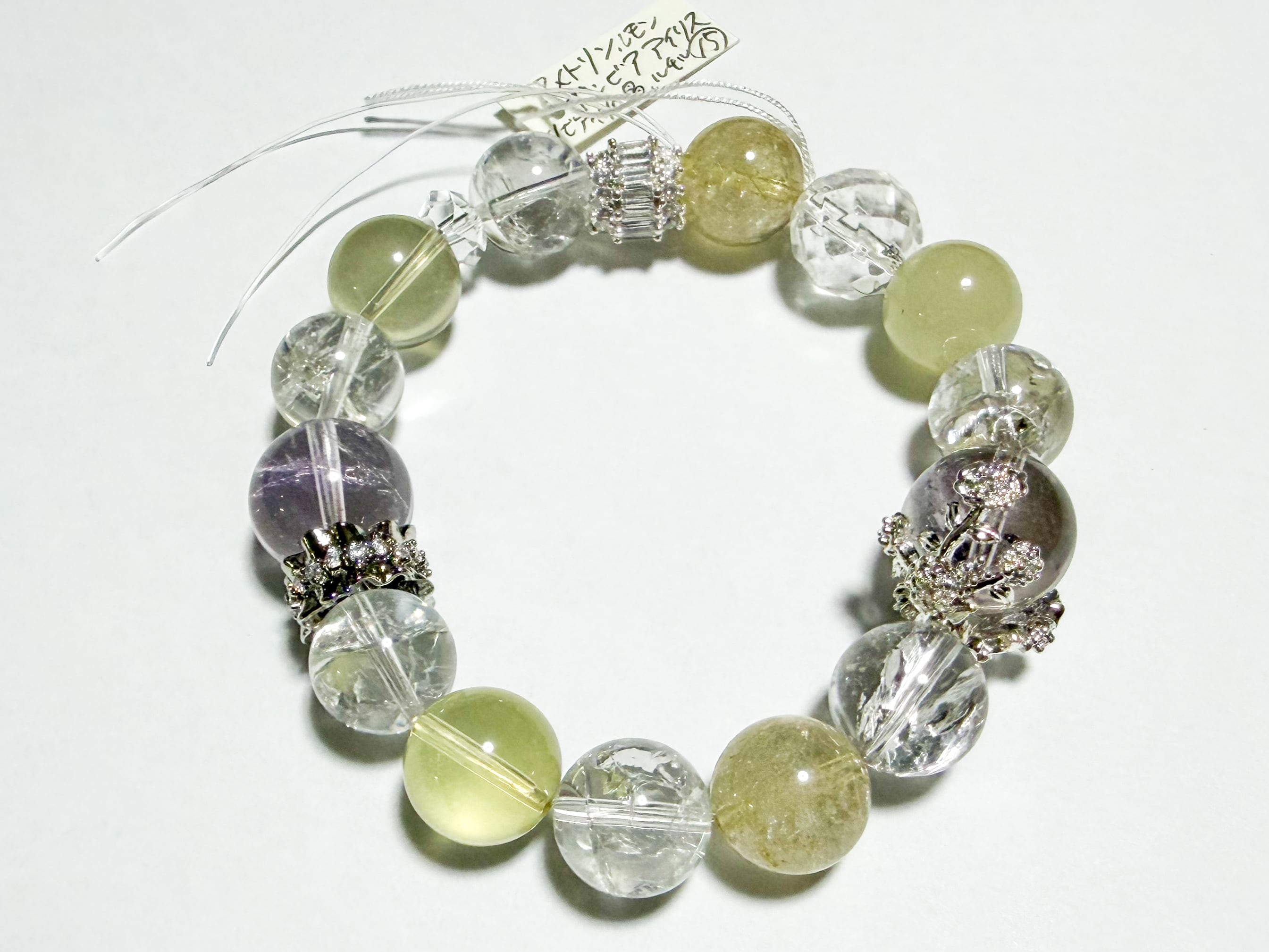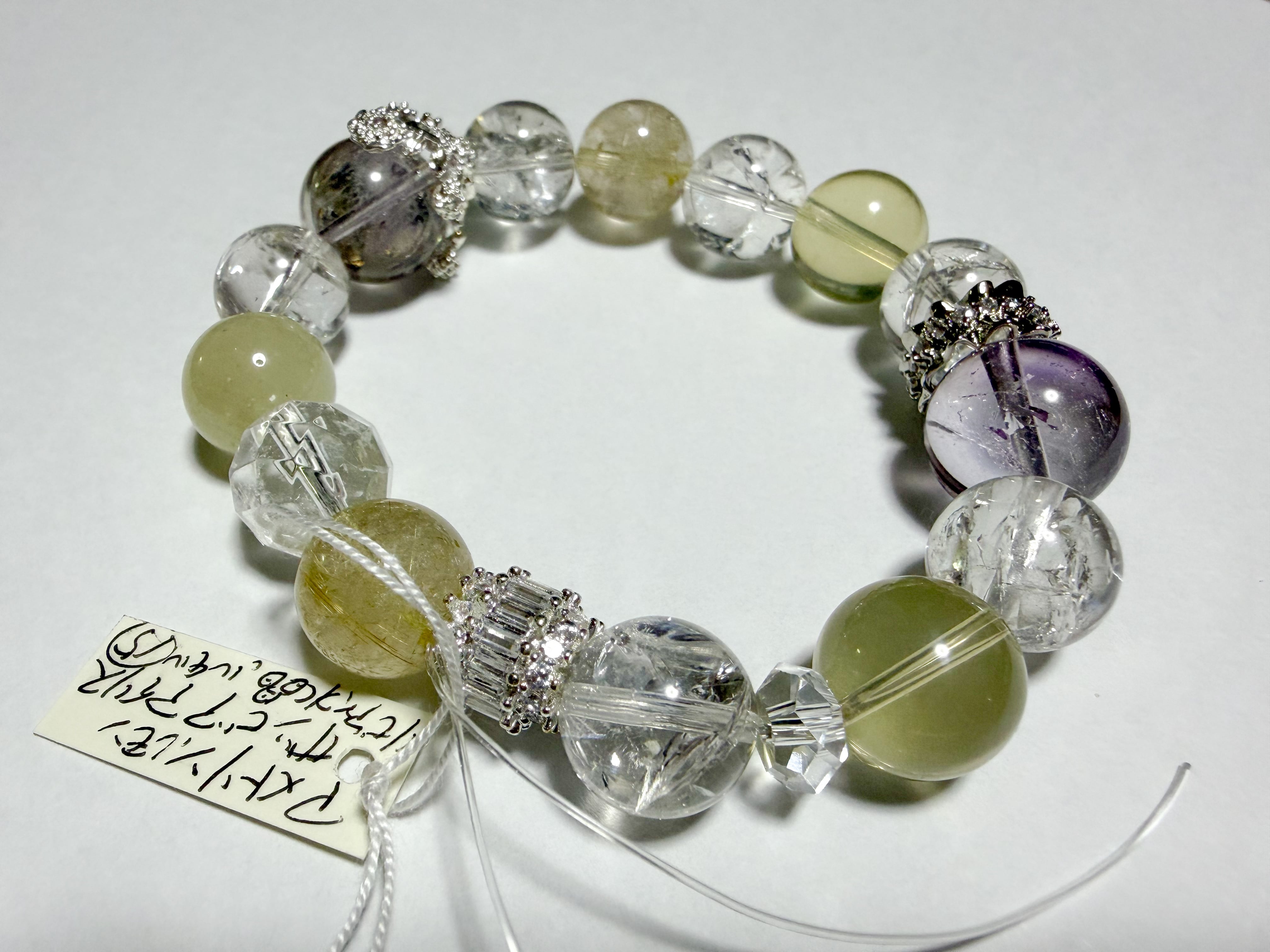 アメトリンとリビアングラスのブレスレットは、自然の美とパワーを融合させた特別なアイテムです。このブレスレットには、アメトリン、ルチル、リビアングラス、ザンビア産アイリスクォーツが使用されており、各ストーンの輝きがあなたの手元を魅力的に飾ります。