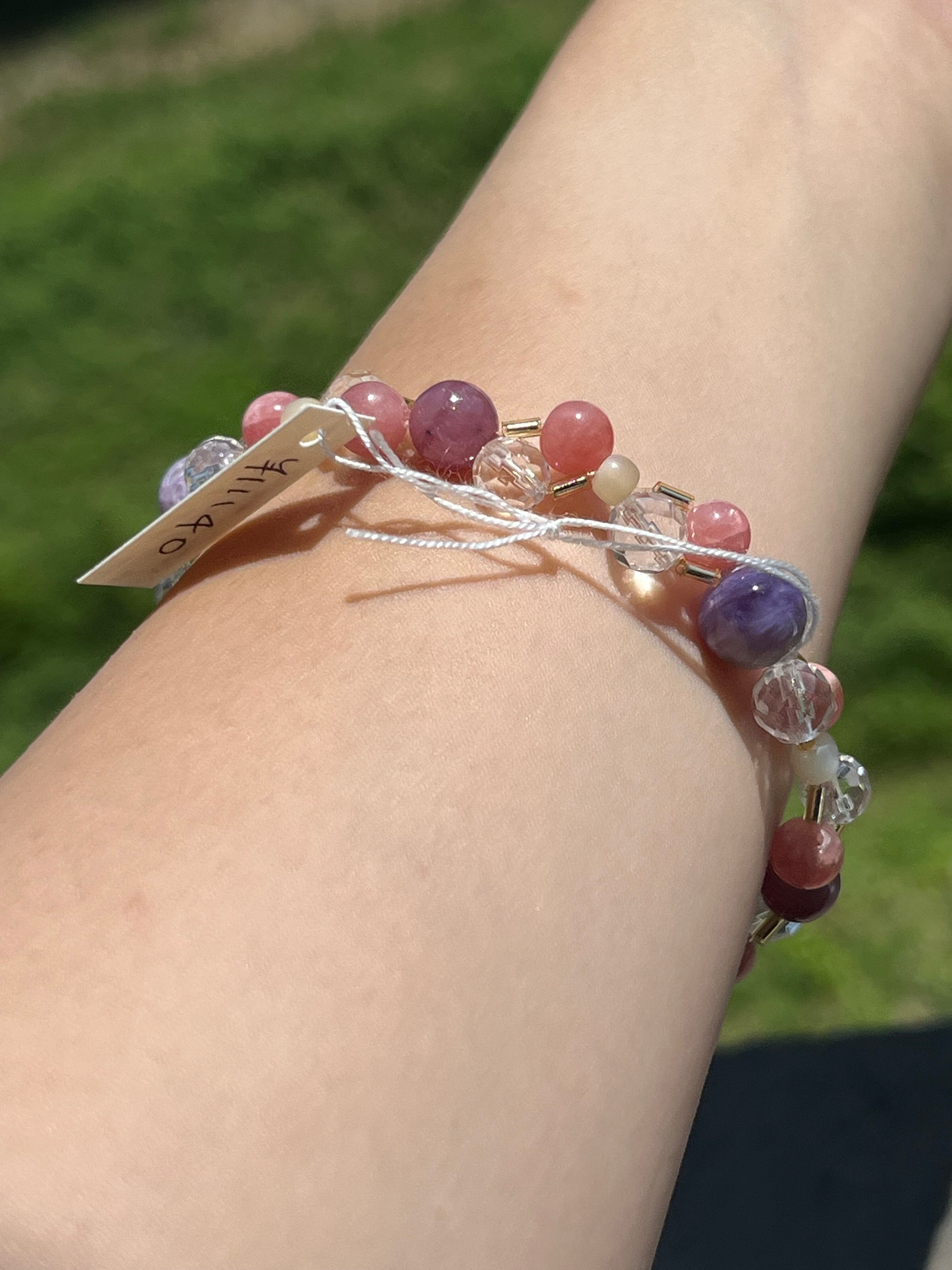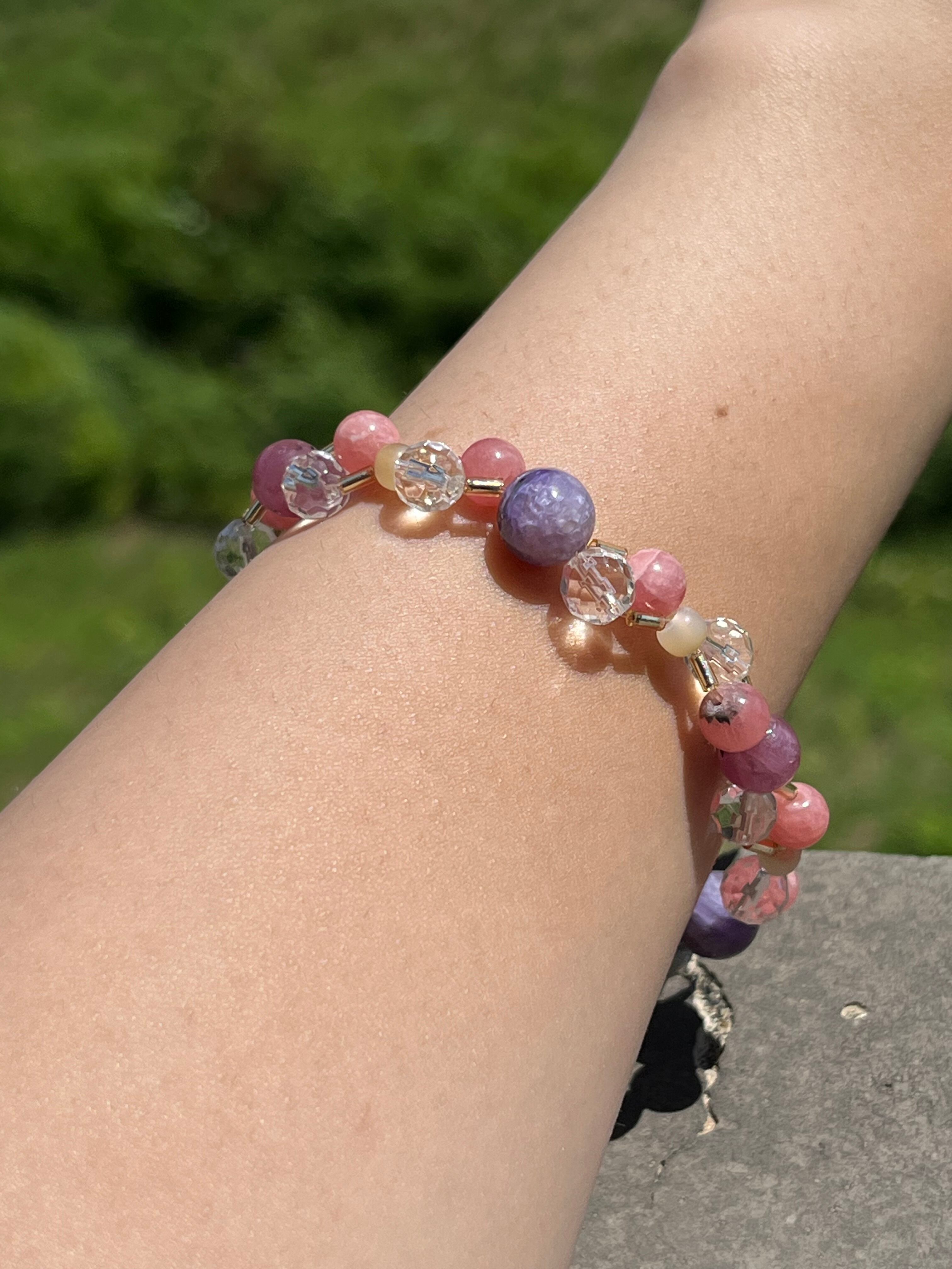 7月の誕生石、ルビーとインカローズのブレスレット。大粒のチャロアイトがアクセント♡♡