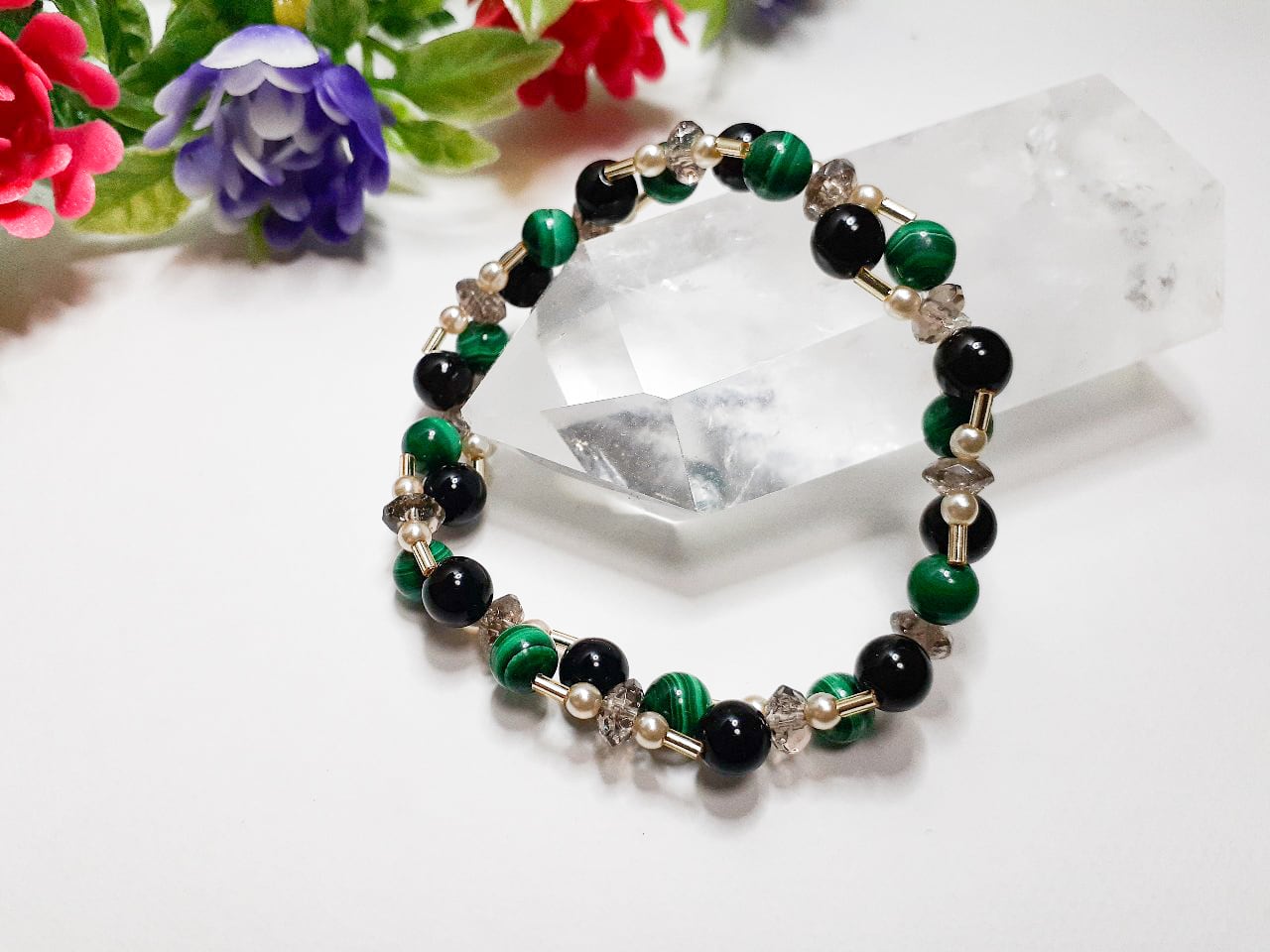 HSP・エンパスの人におすすめ!マラカイトとモリオンのインフィニティ魔除けブレス【ヒーリングアクセサリー】【パワーストーンブレスレット】【インフィニティ∞ブレス】
