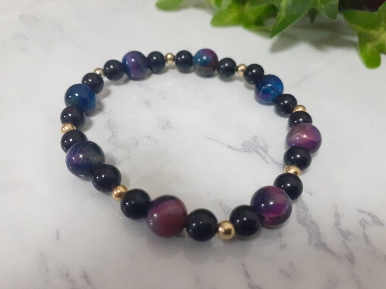 オブシディアンとマルチカラータイガーアイの魔除ブレスレット