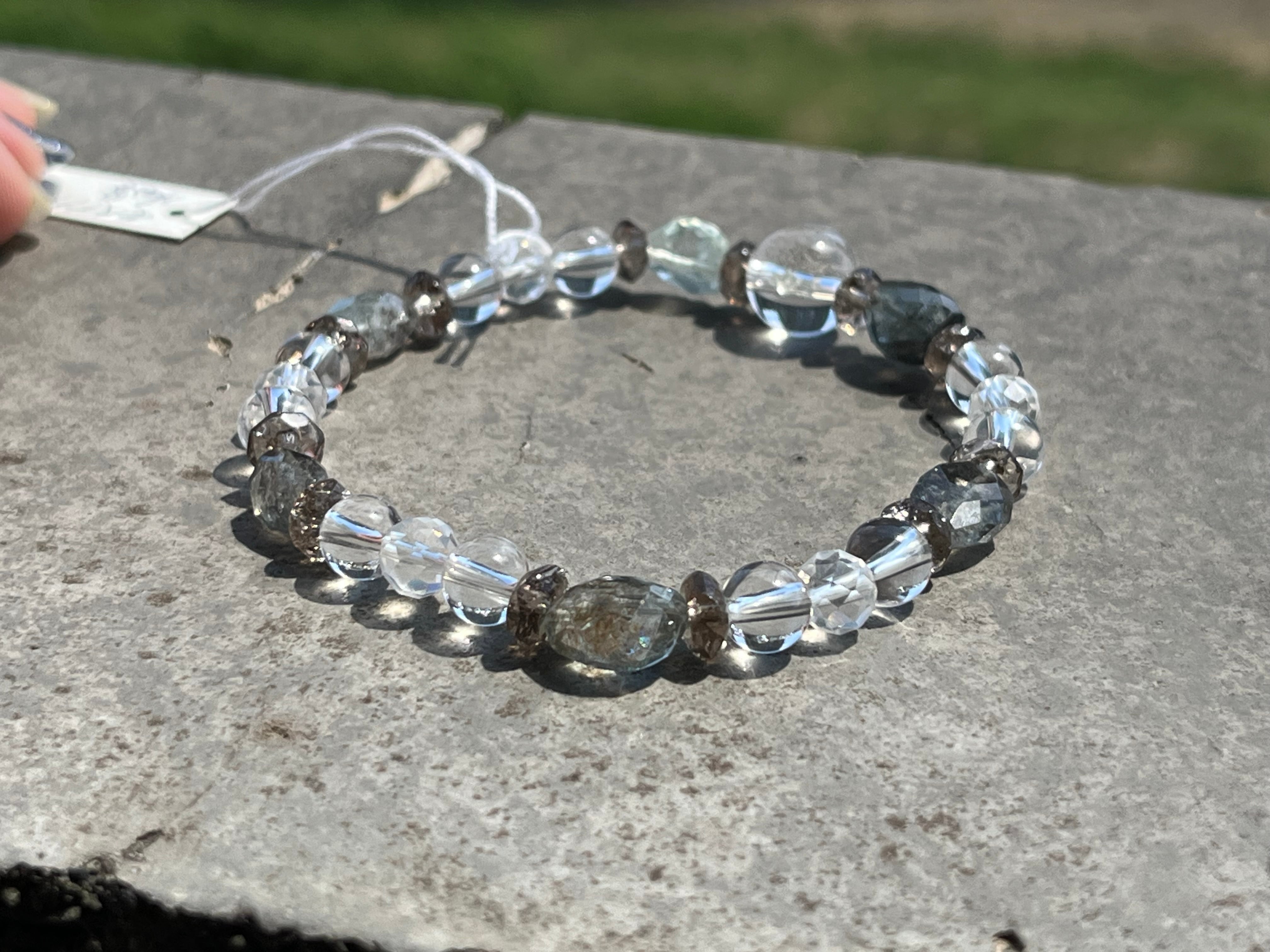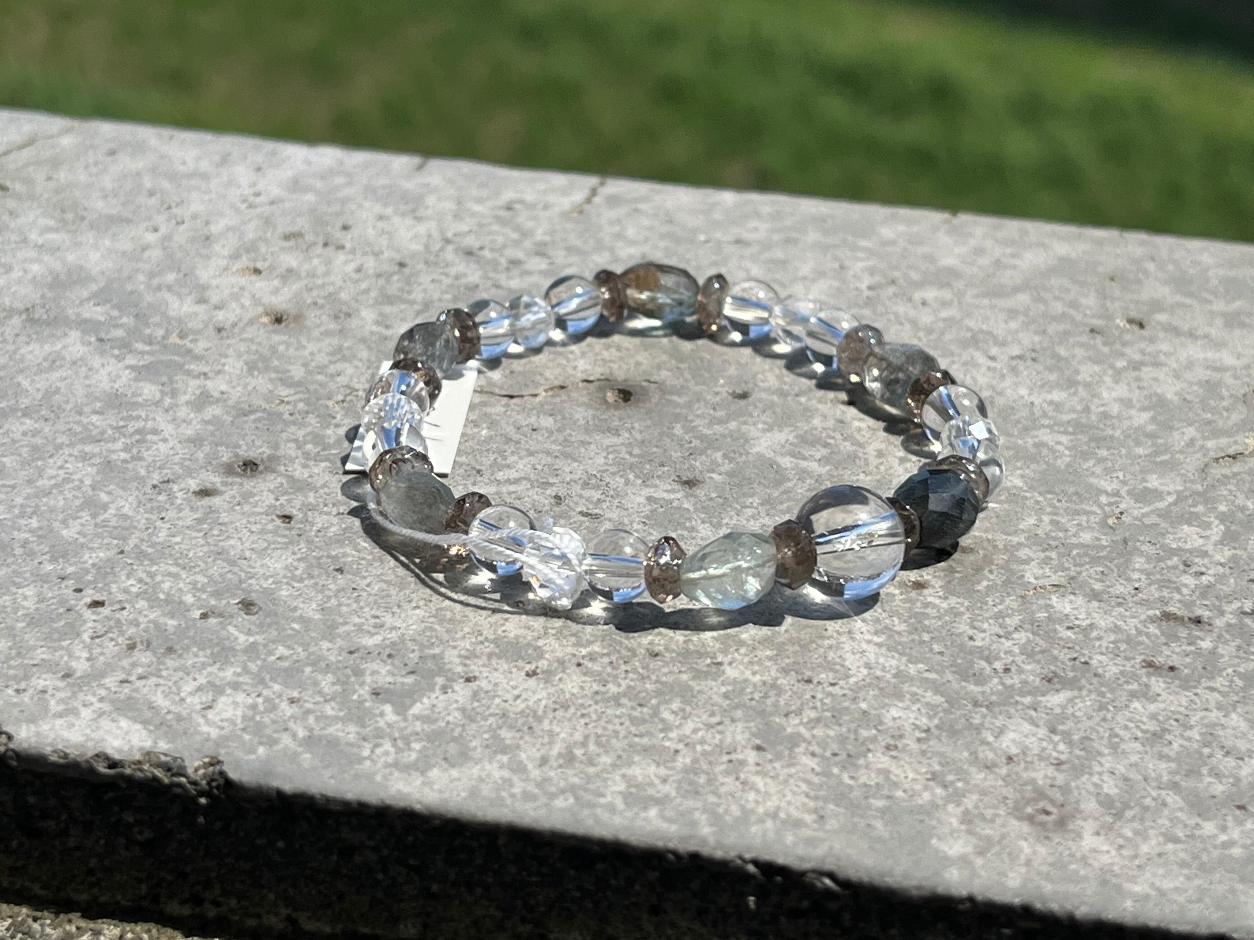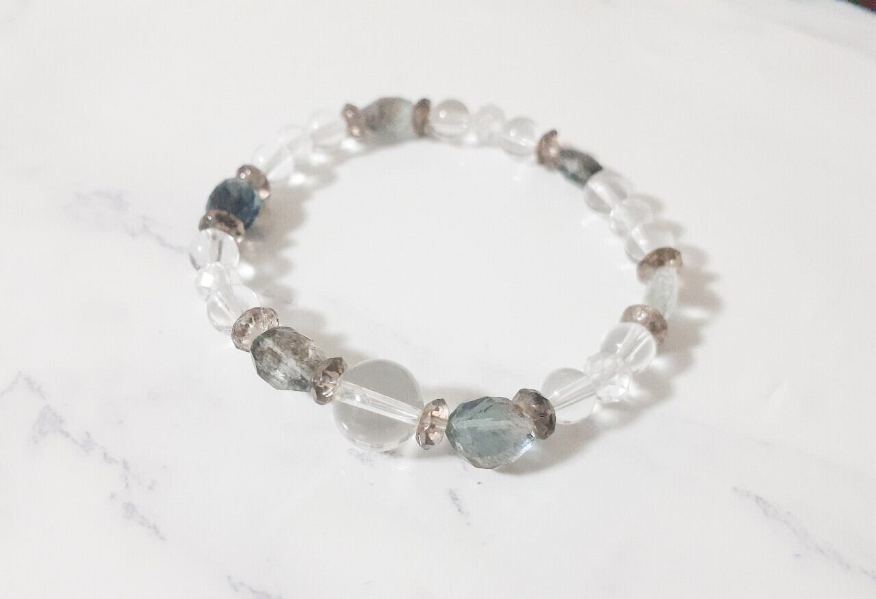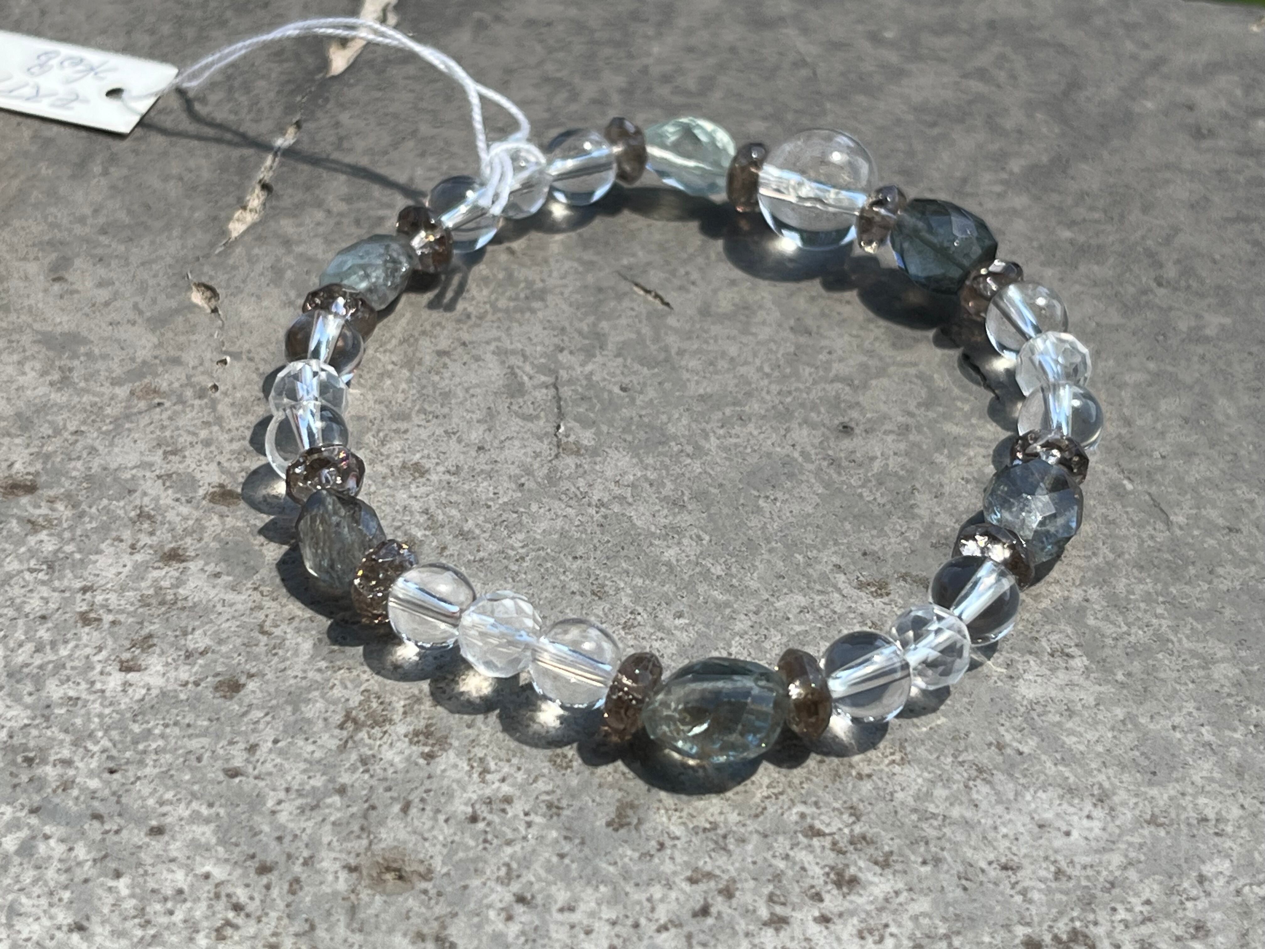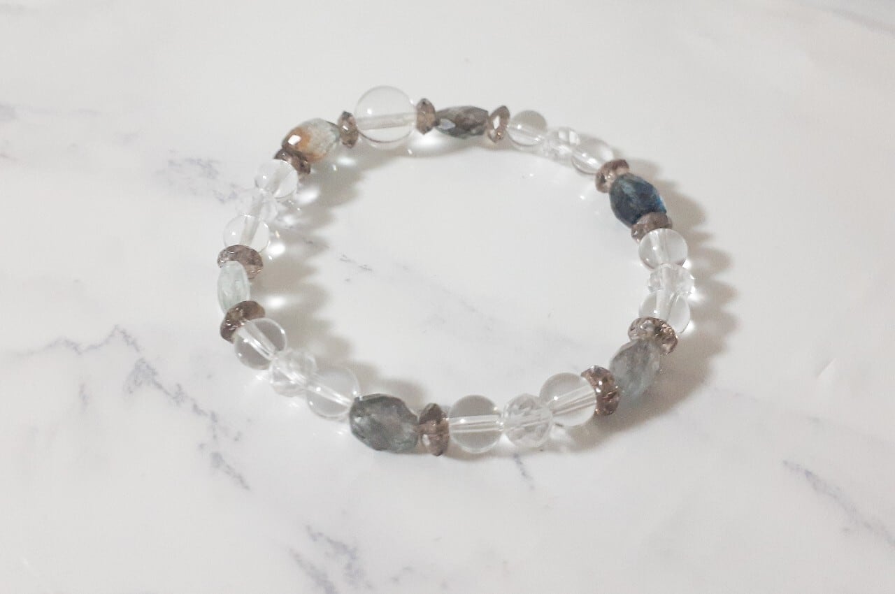 モスアクアマリンのブレスレット。雪解けの様子に似ているブレスレット。やっと春らしくなりながらも、雪解けがなかなか進まない北海道の姿とイメージが重なりました。