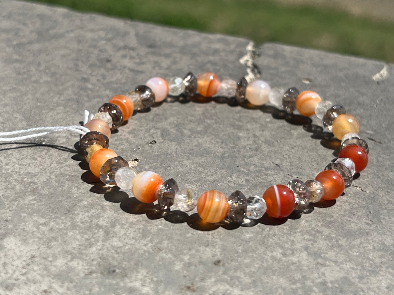 オレンジ色の縞模様が可愛らしいサードオニキス。魔除の効果もさることながら、かわいらしい色合いで人気があるストーンです。紅葉をイメージしたブレスレット。