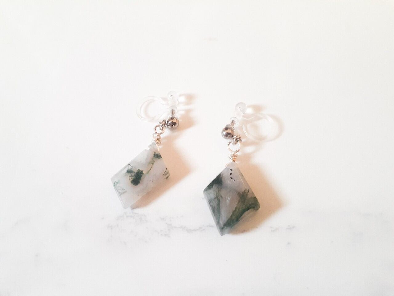 当然の事ながら、ひとつひとつ内包物からみえる表面の模様が異なるため完全に世界にオンリーワンのストーンイヤリングです。