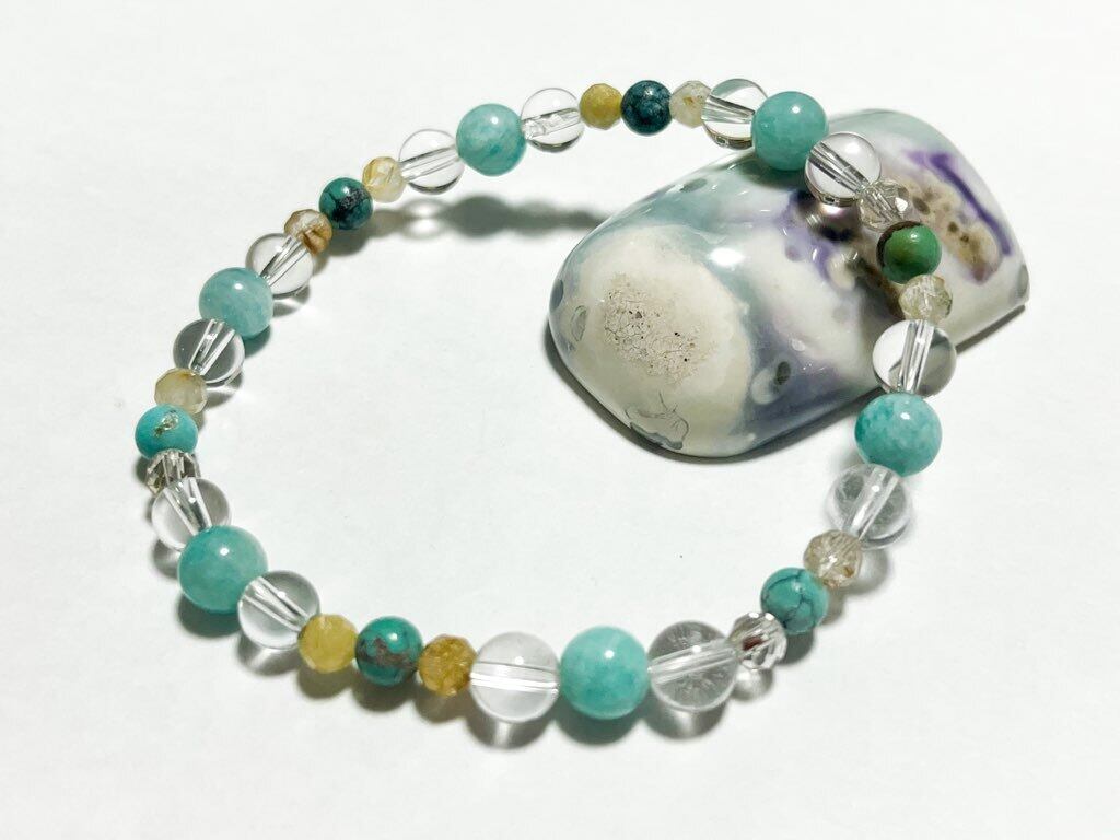 明るく前向きになりたい方へ⭐︎アマゾナイトとターコイズのルチルブレスレット