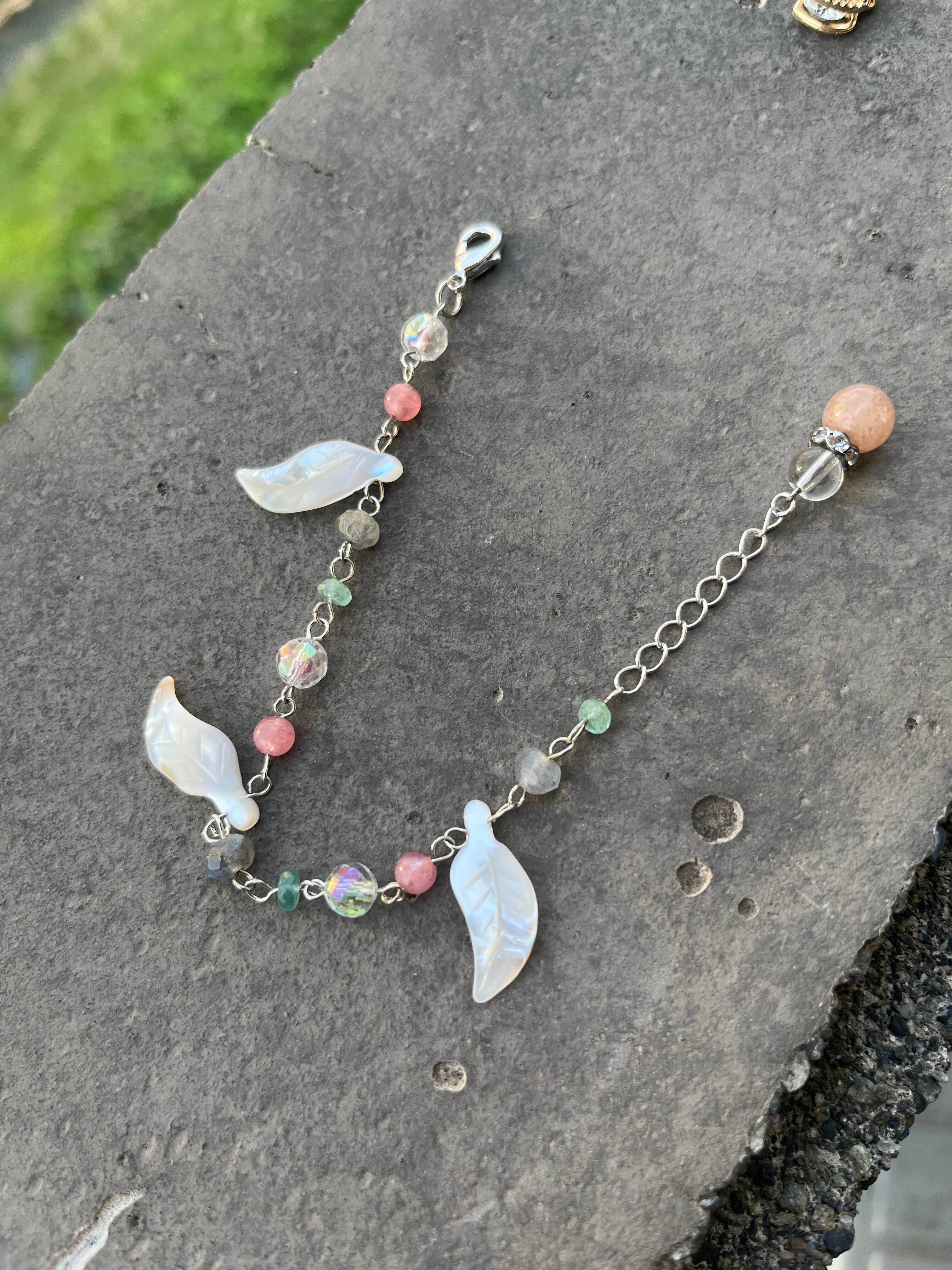 マザーオブパールのモチーフがアクセントの可愛らしいブレスレットです。