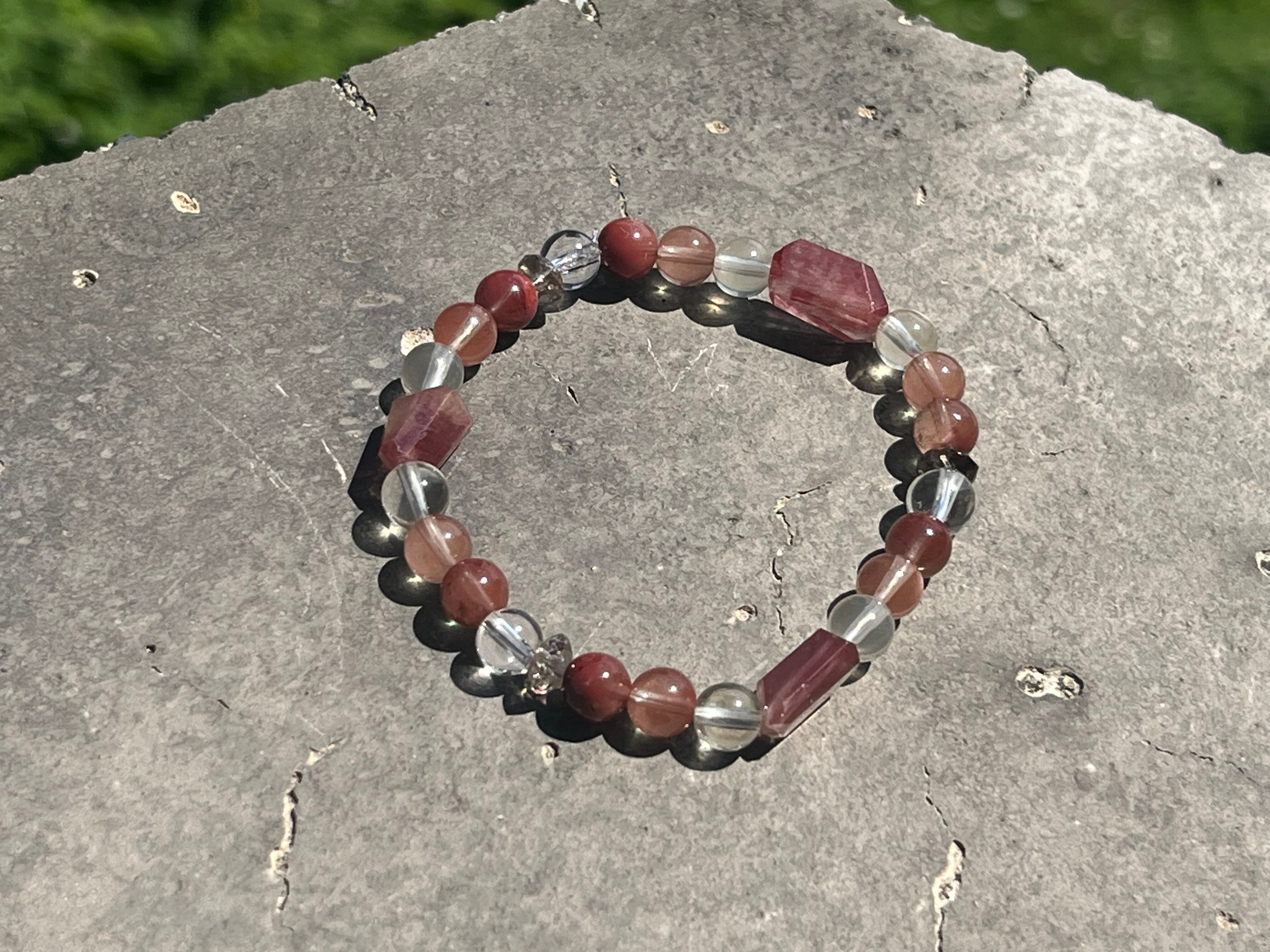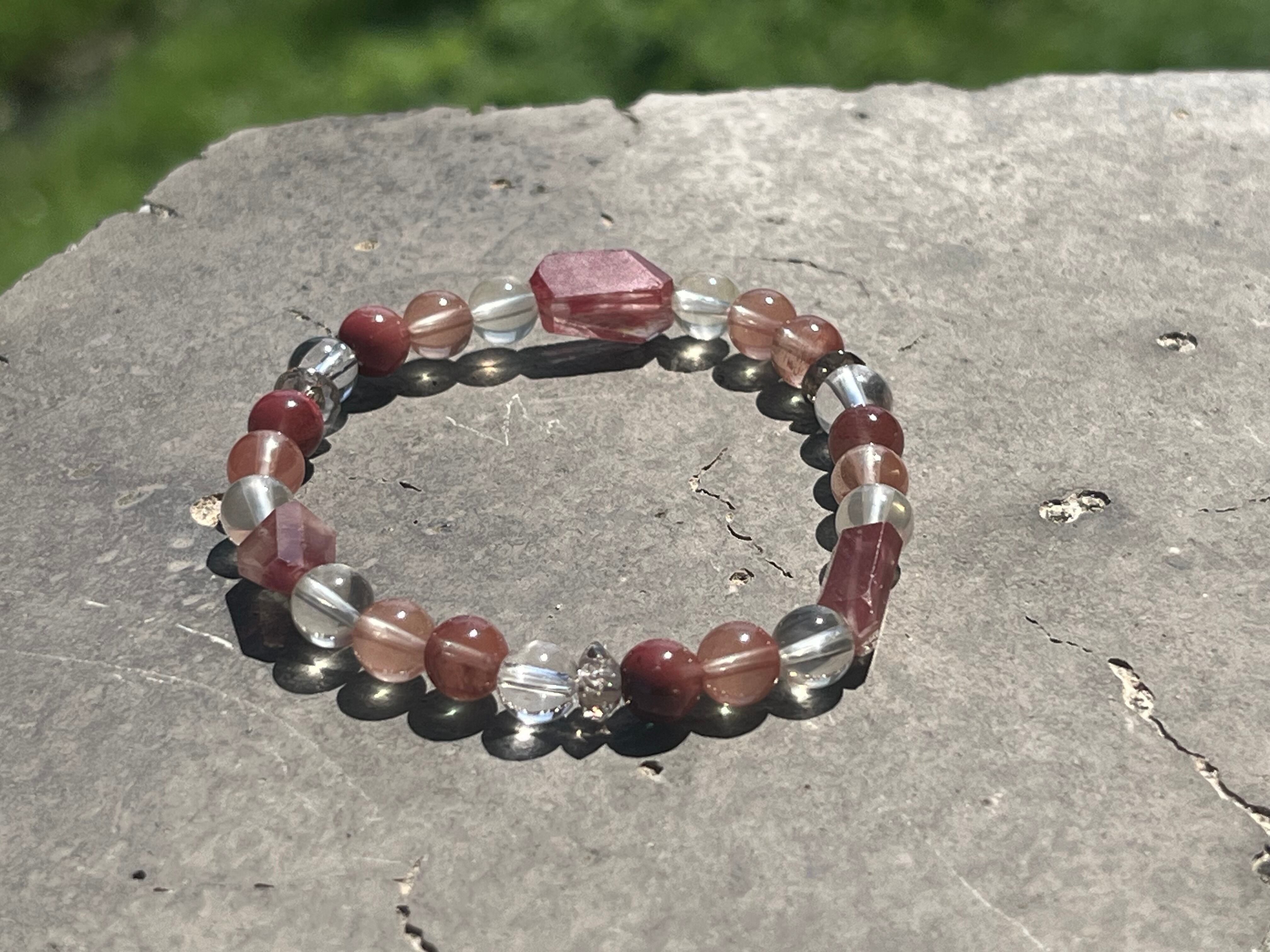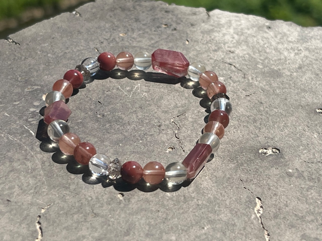 赤のアンデシンと黄色のアンデシン、水晶を使ったデザインブレスレットです。