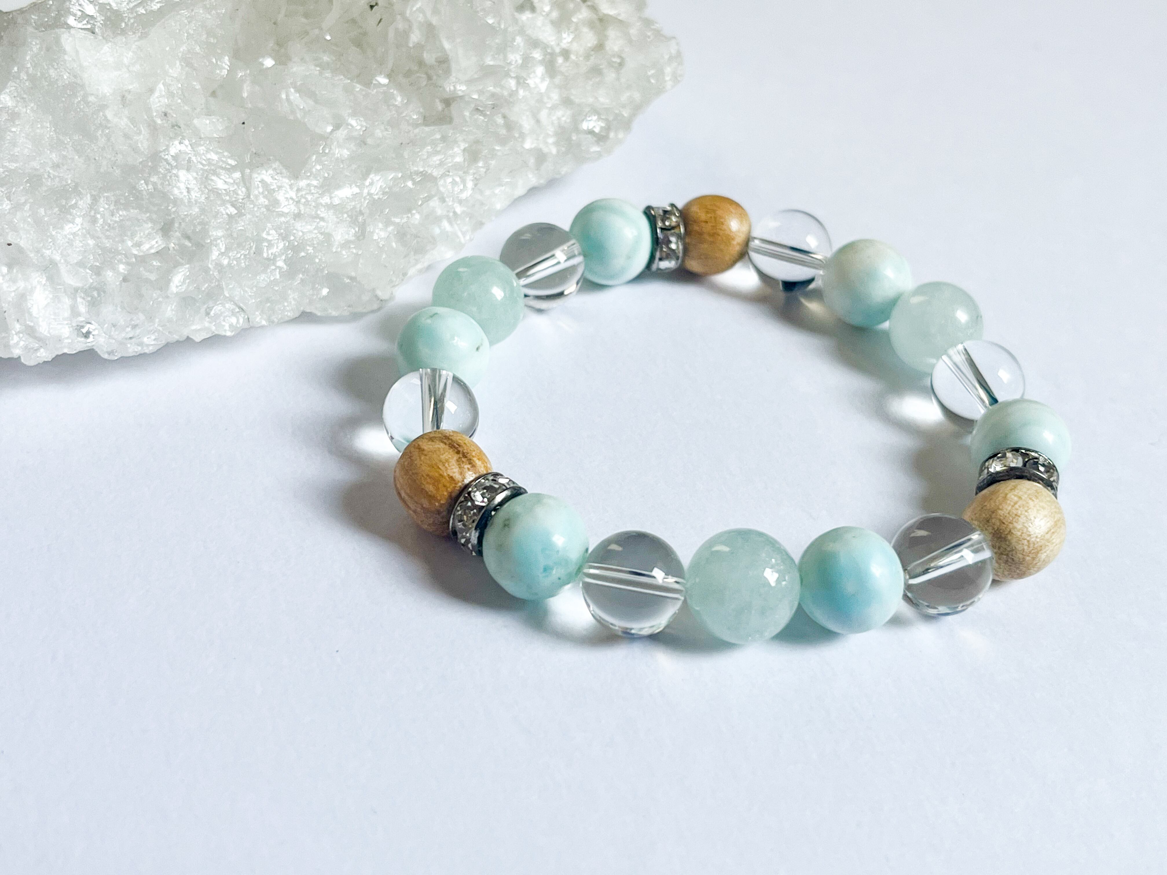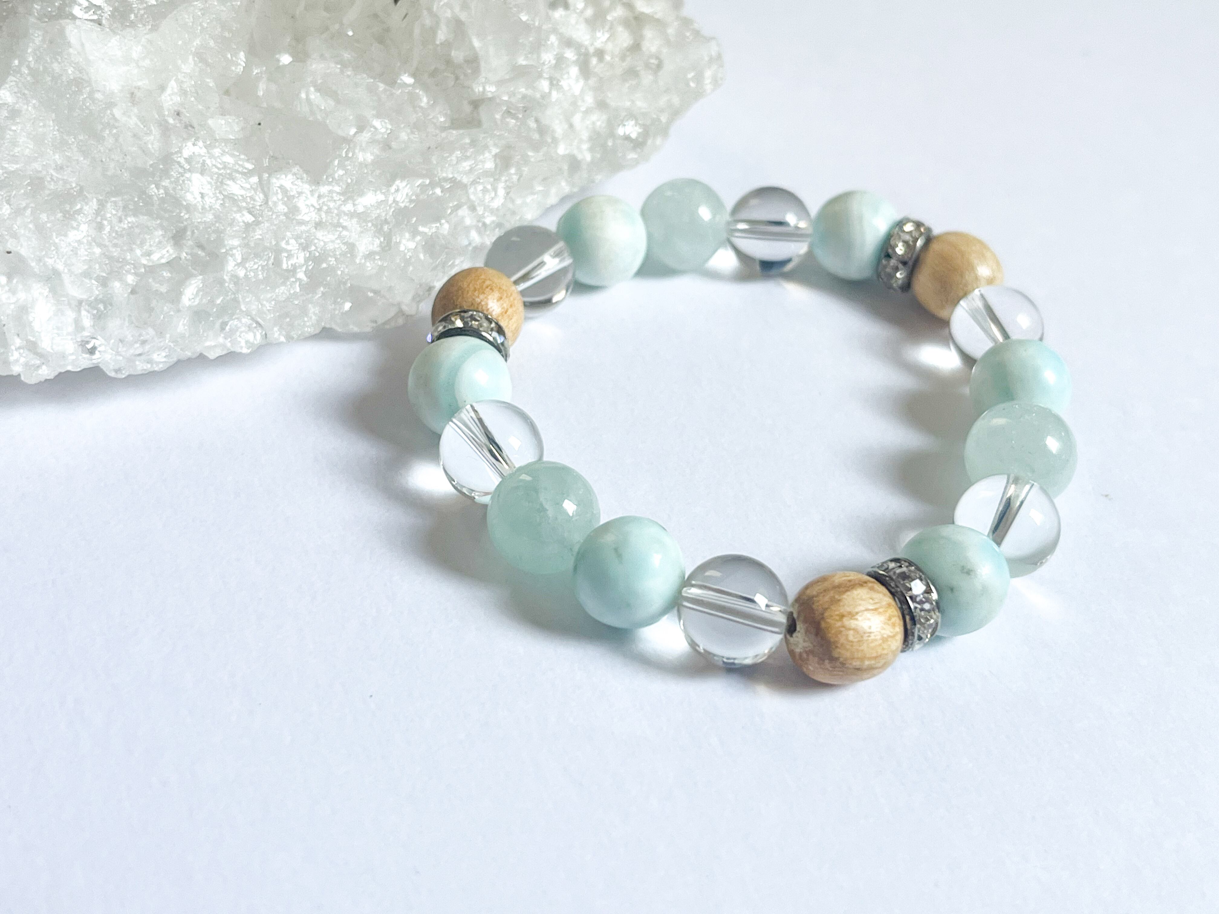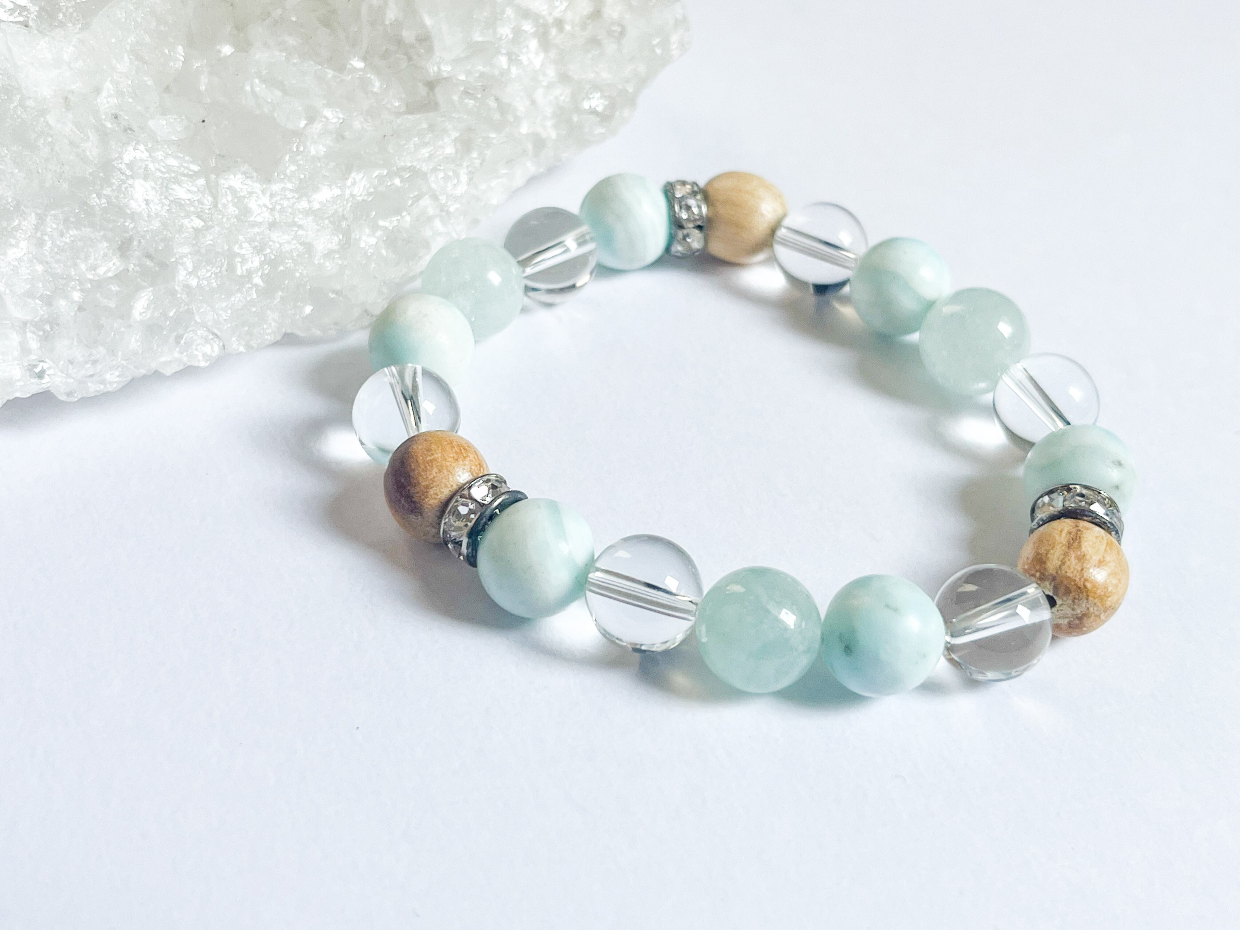 スミソナイトとパロサント、アクアマリンのブレスレット