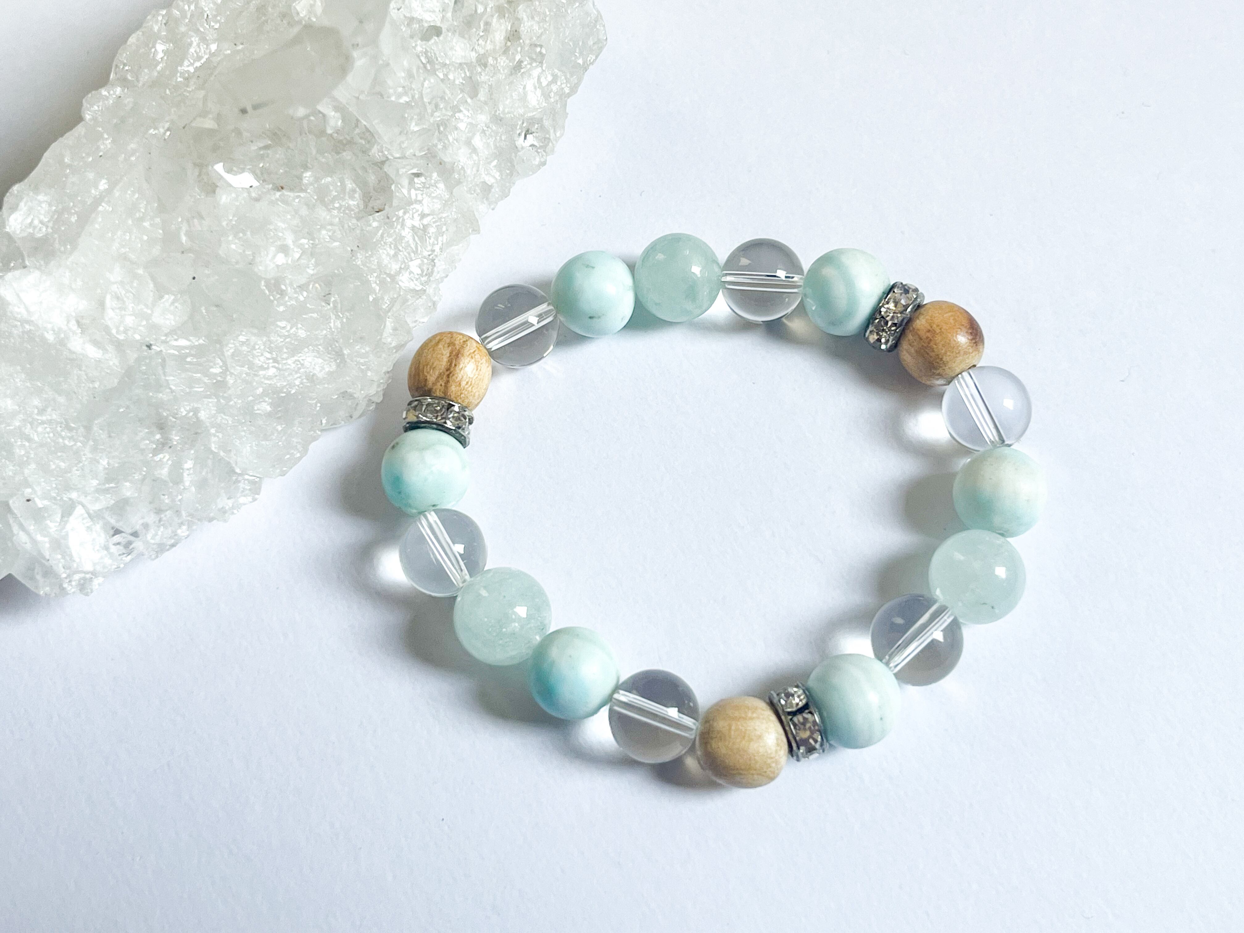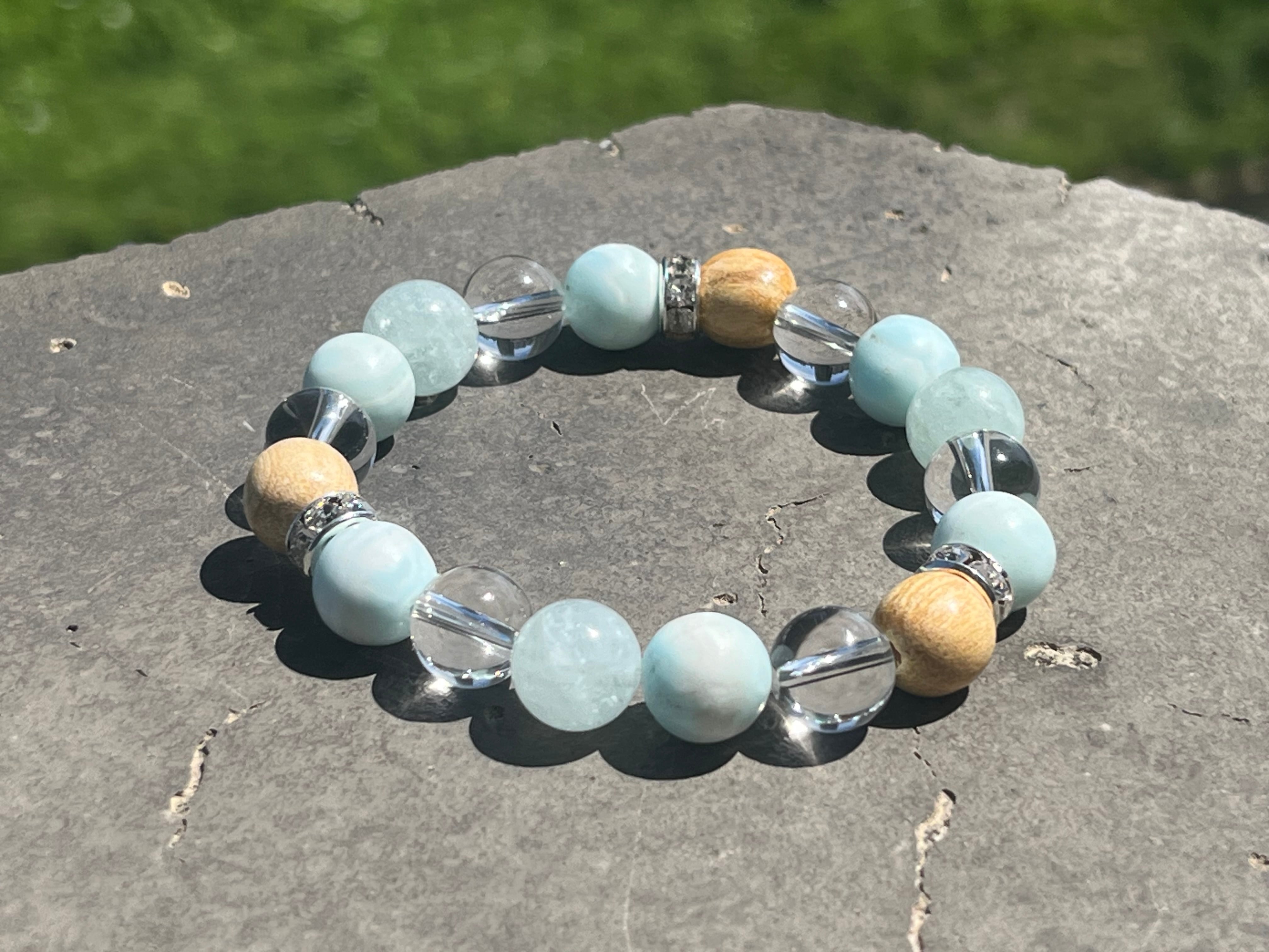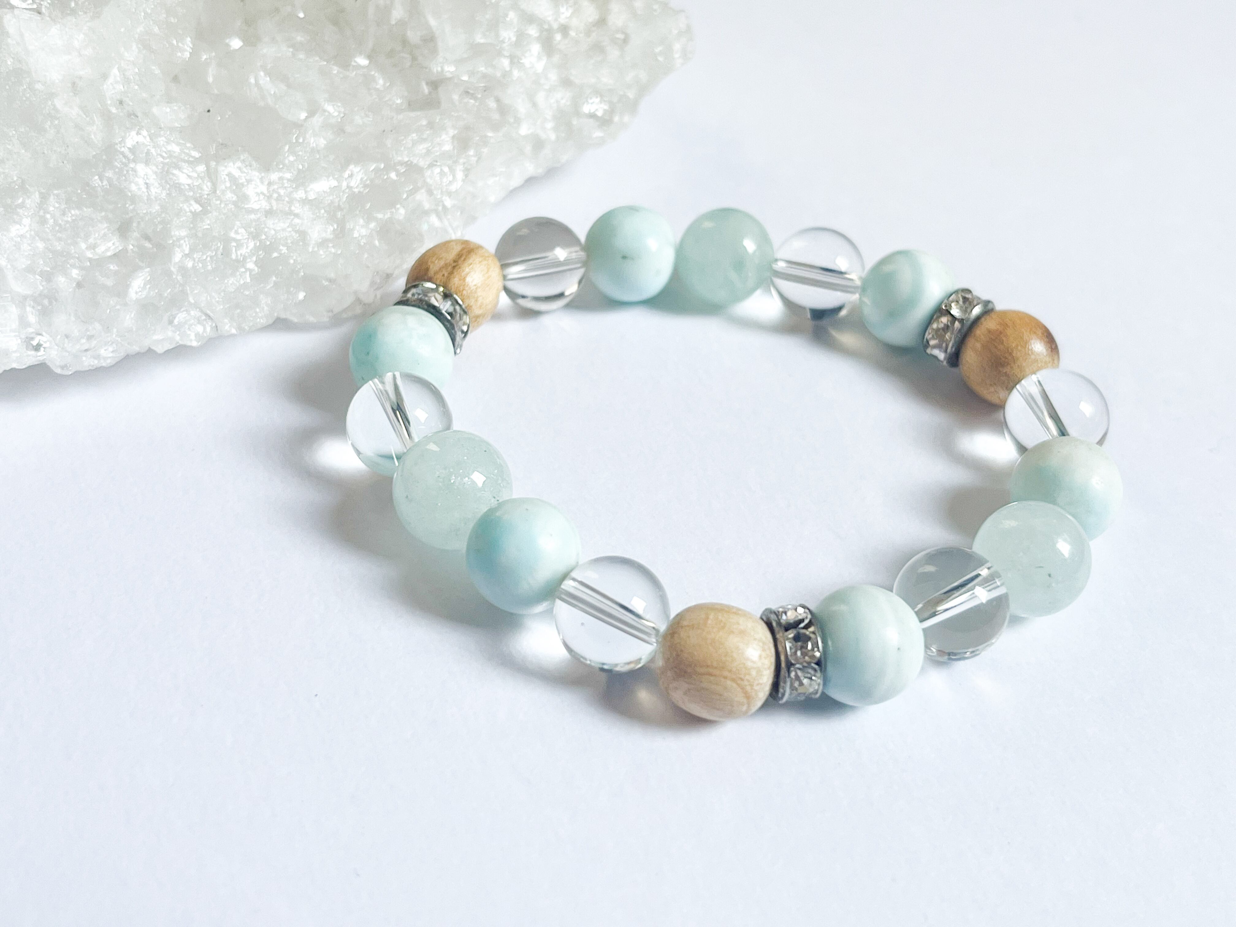 スミソナイトとパロサント、アクアマリンのブレスレット