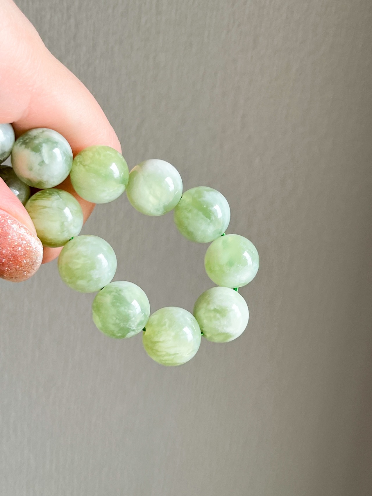 可愛らしいマスカットカラーに羽のような模様が入っているのが特徴的なブレスレットです。