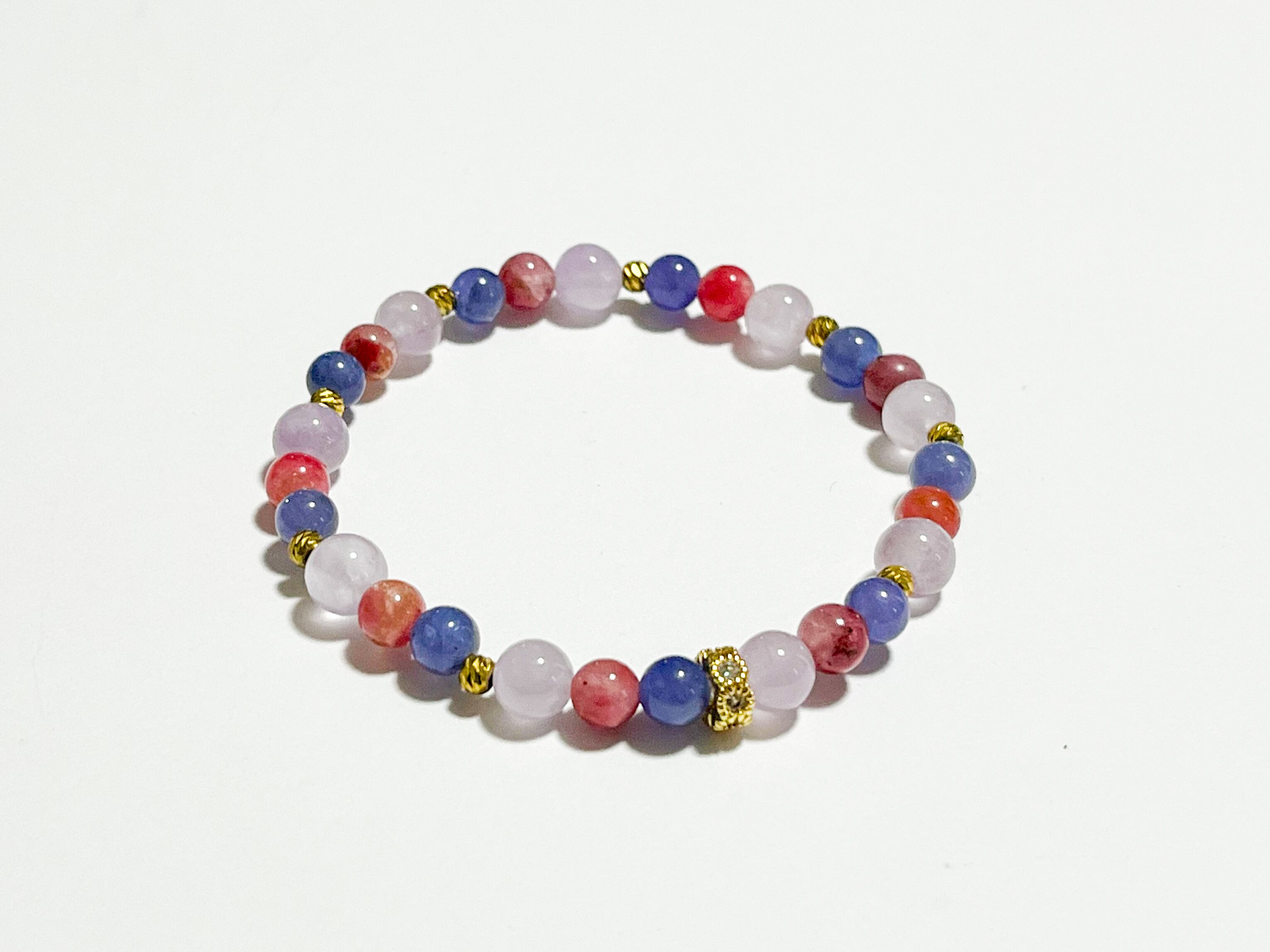 ロードナイトシリカとタンザナイト、ラベンダーアメジストの華奢ブレス
