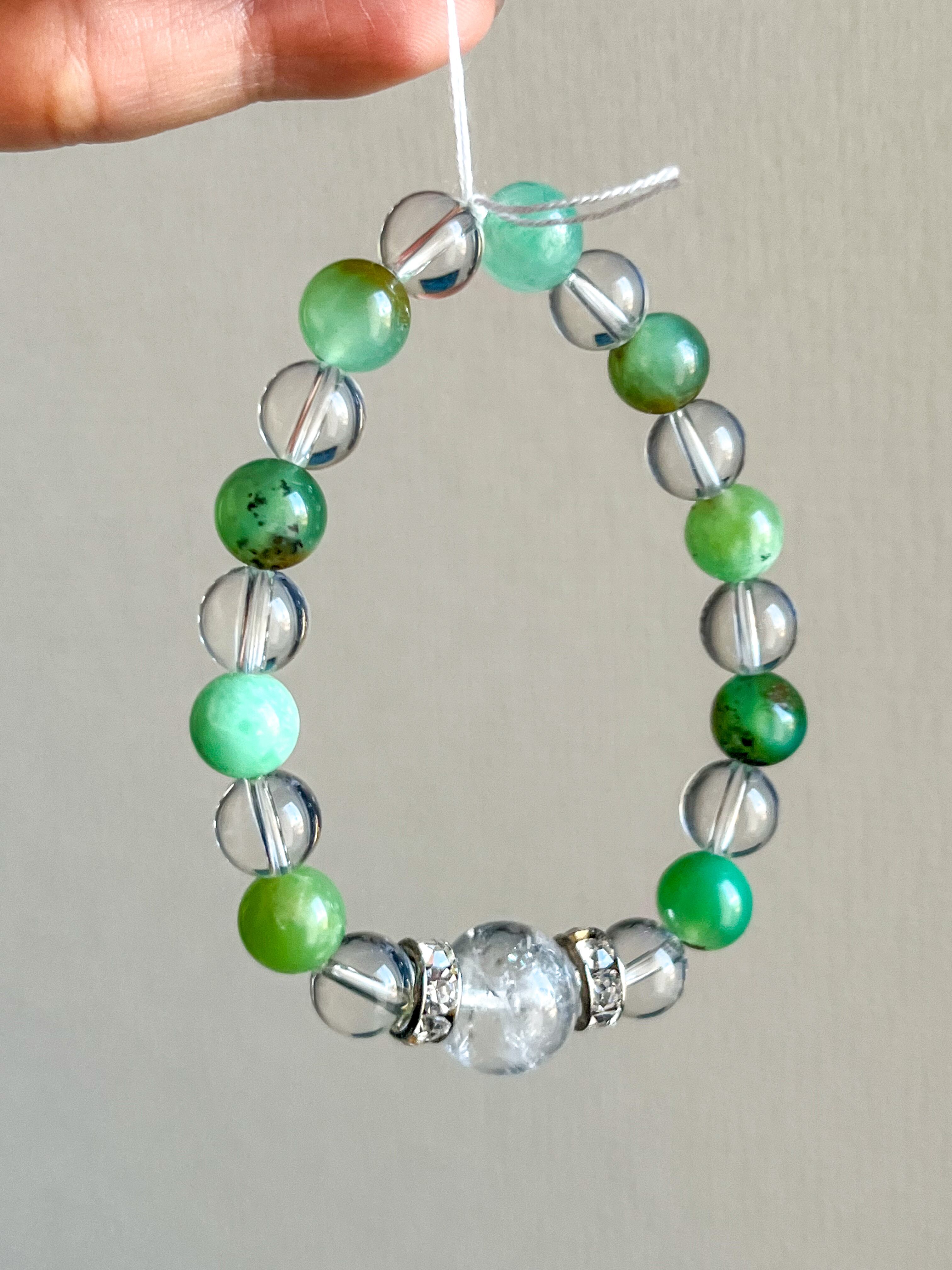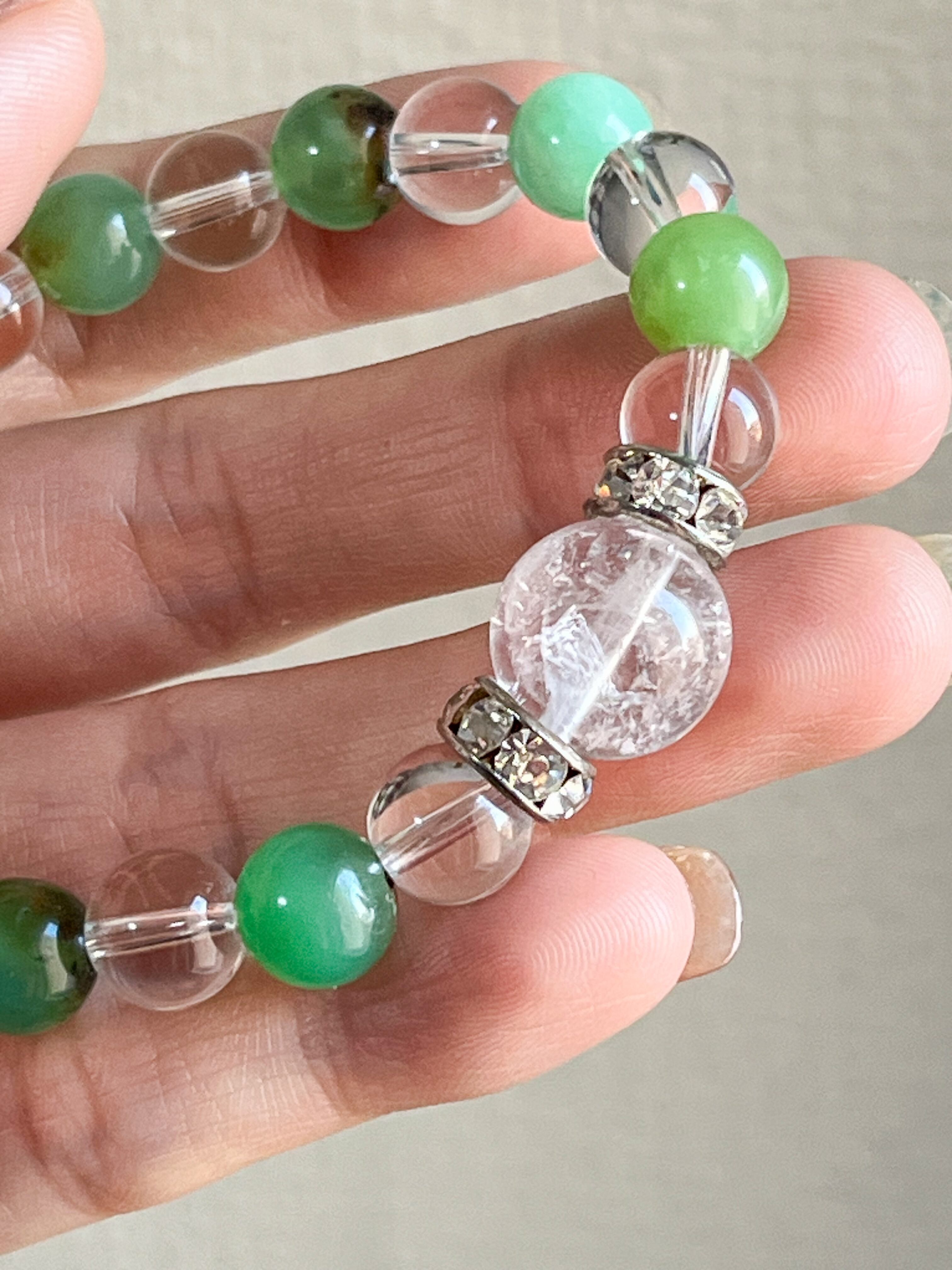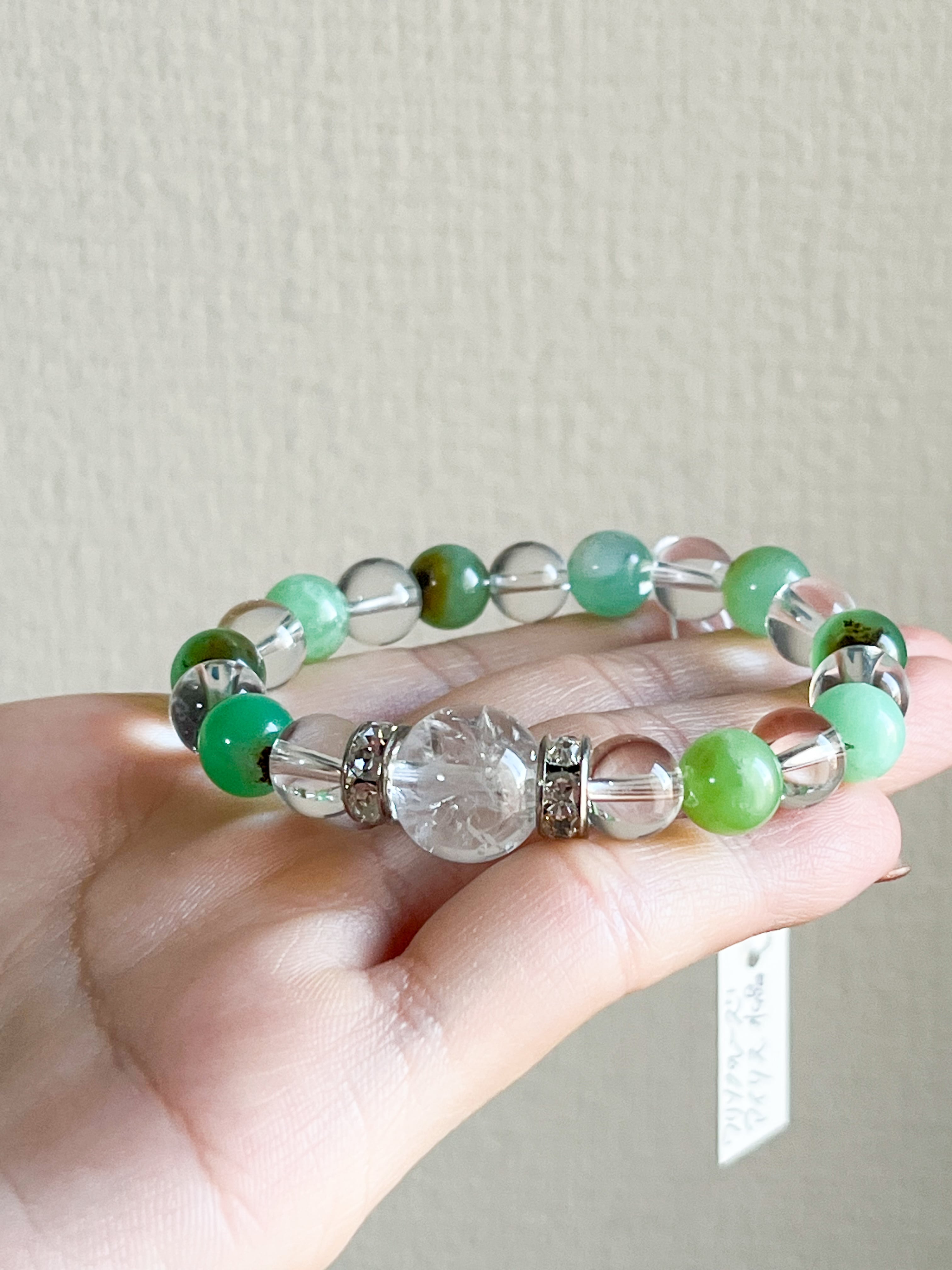 母岩つきクリソプレーズとトップのアイリスクォーツが爽やかで可愛らしいブレスレットです。