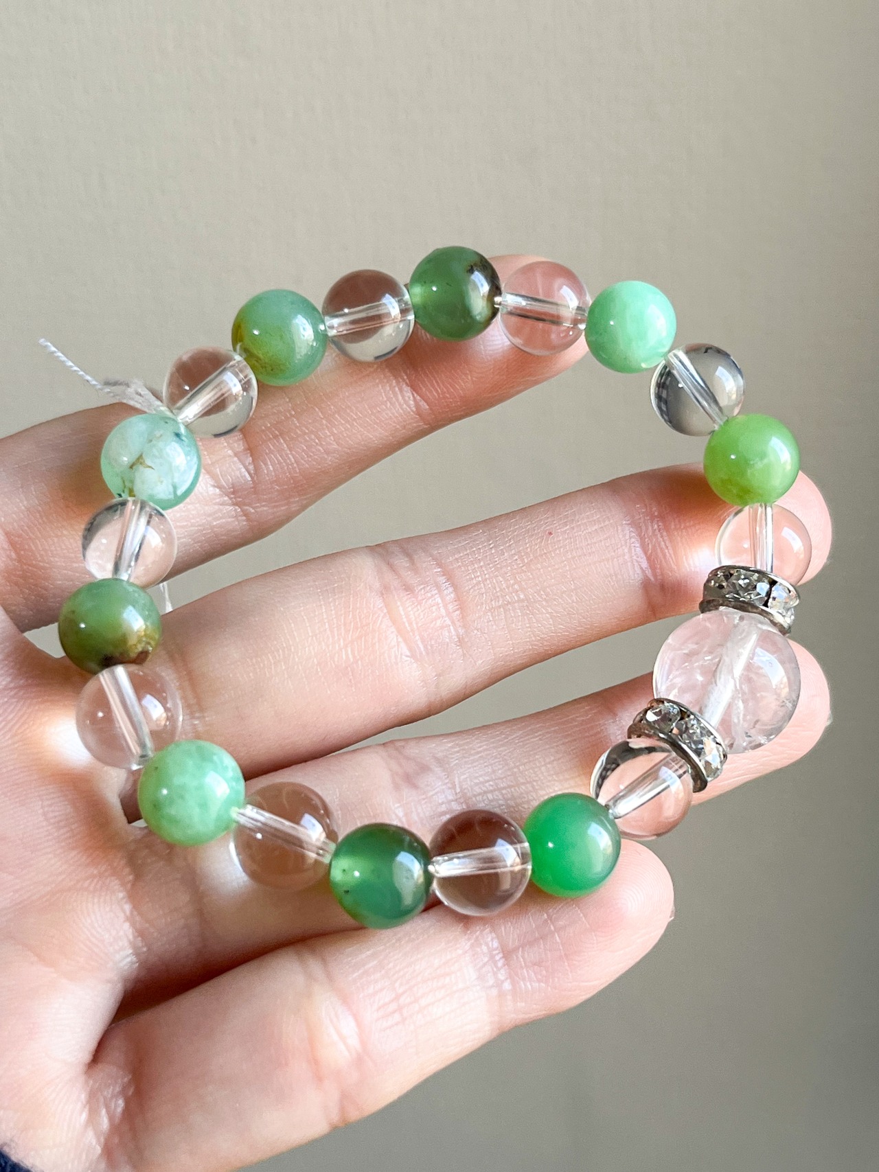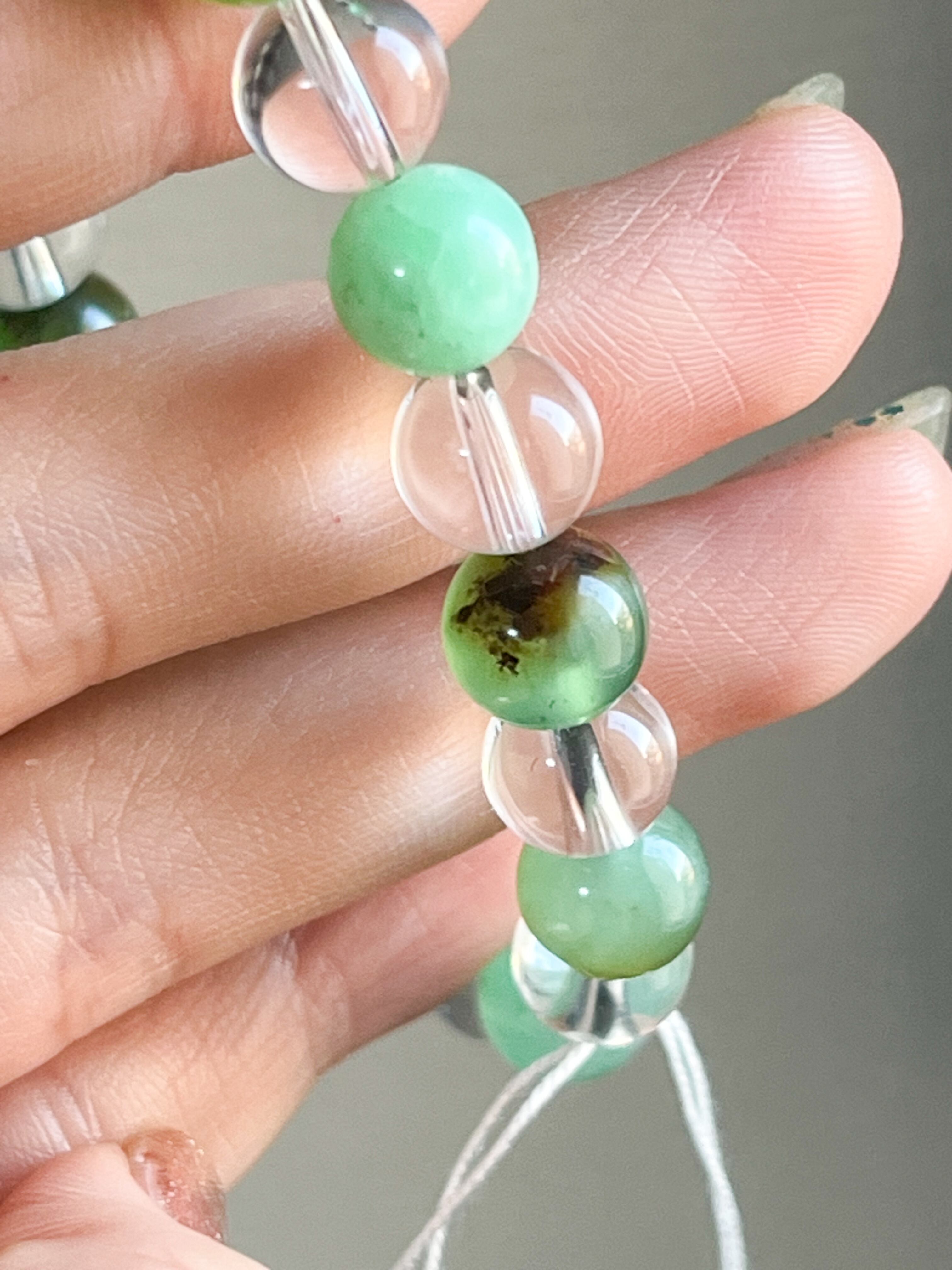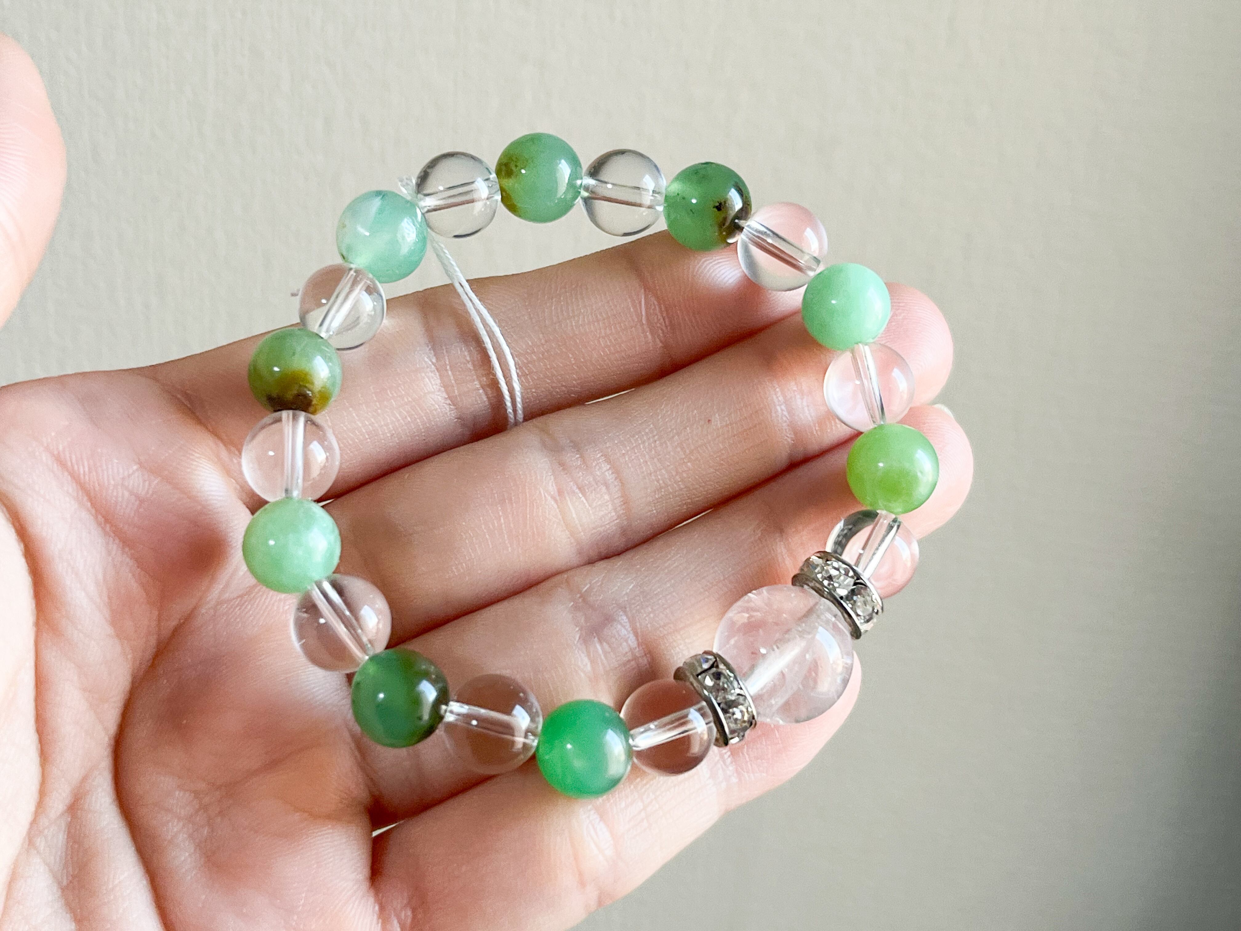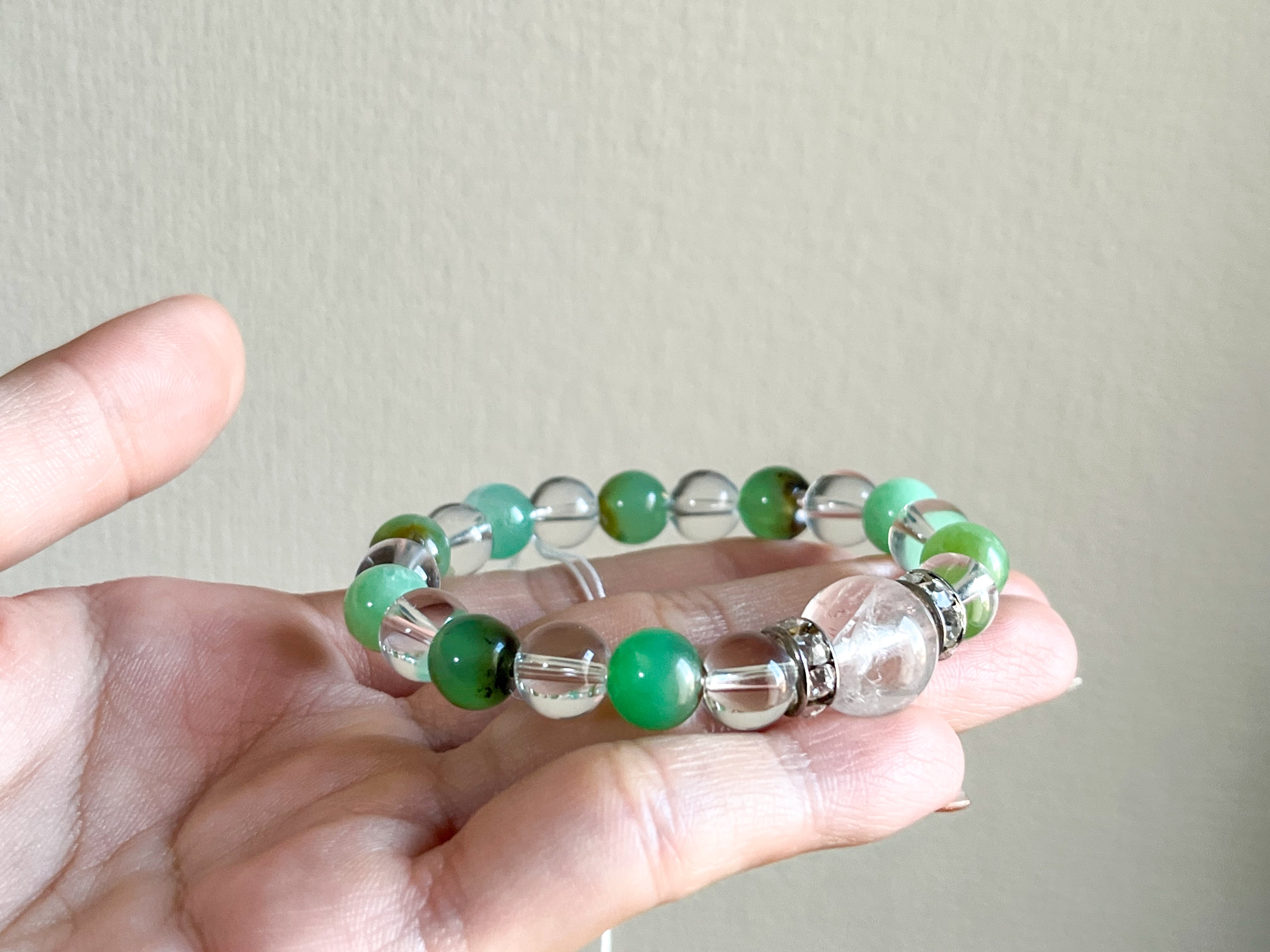 母岩つきクリソプレーズとトップのアイリスクォーツが爽やかで可愛らしいブレスレットです。
