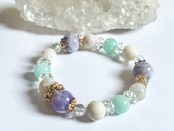 ティファニーストーンとアマゾナイトを使用した、心を豊かにするエネルギーを感じるブレスレットです。ティファニーストーンの穏やかな紫と、アマゾナイトの美しい青緑が織りなす、幻想的でありながら落ち着いた印象が特徴です。