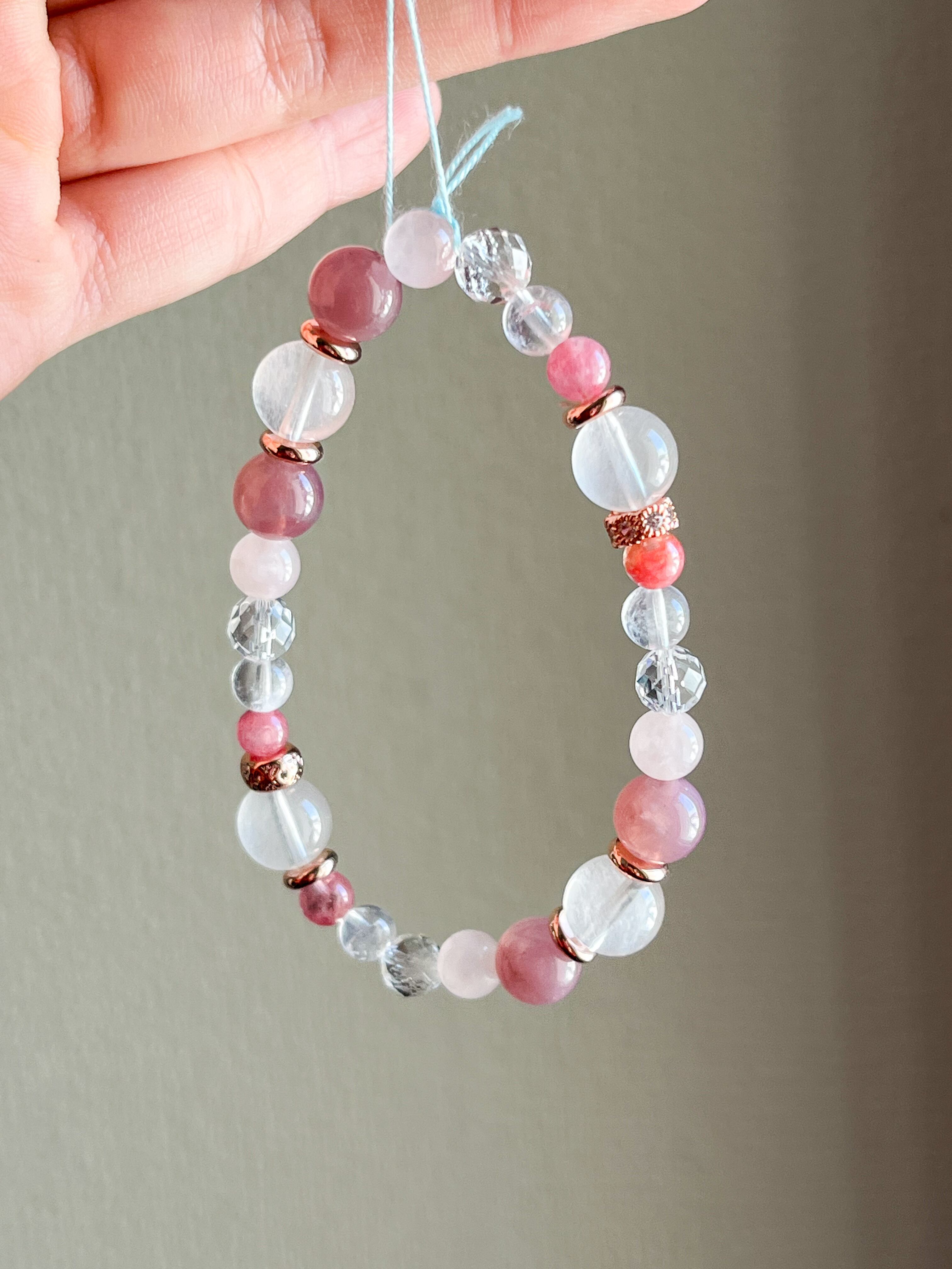 ロードナイトシリカとローズクォーツ、ラズベリークォーツのブレスレット