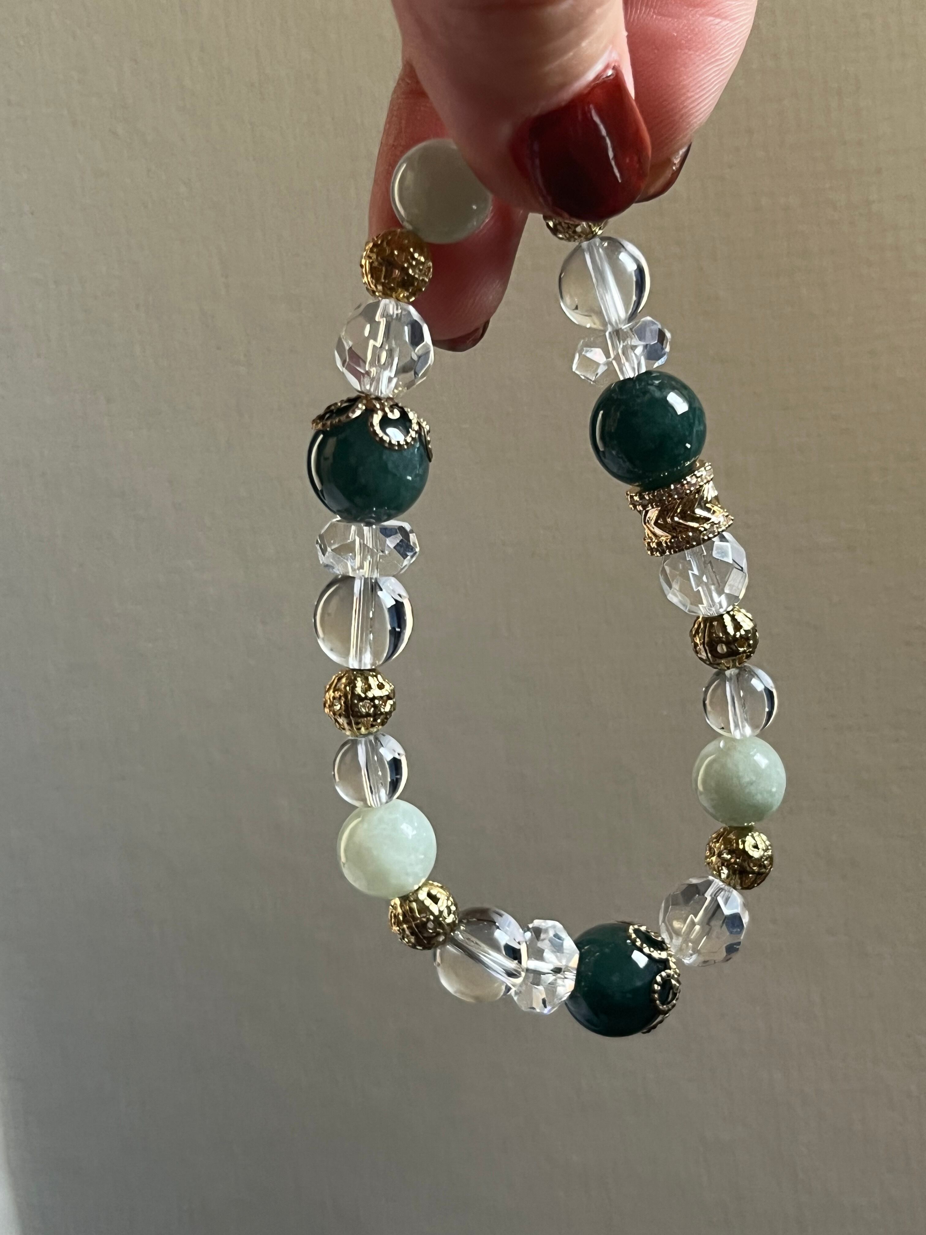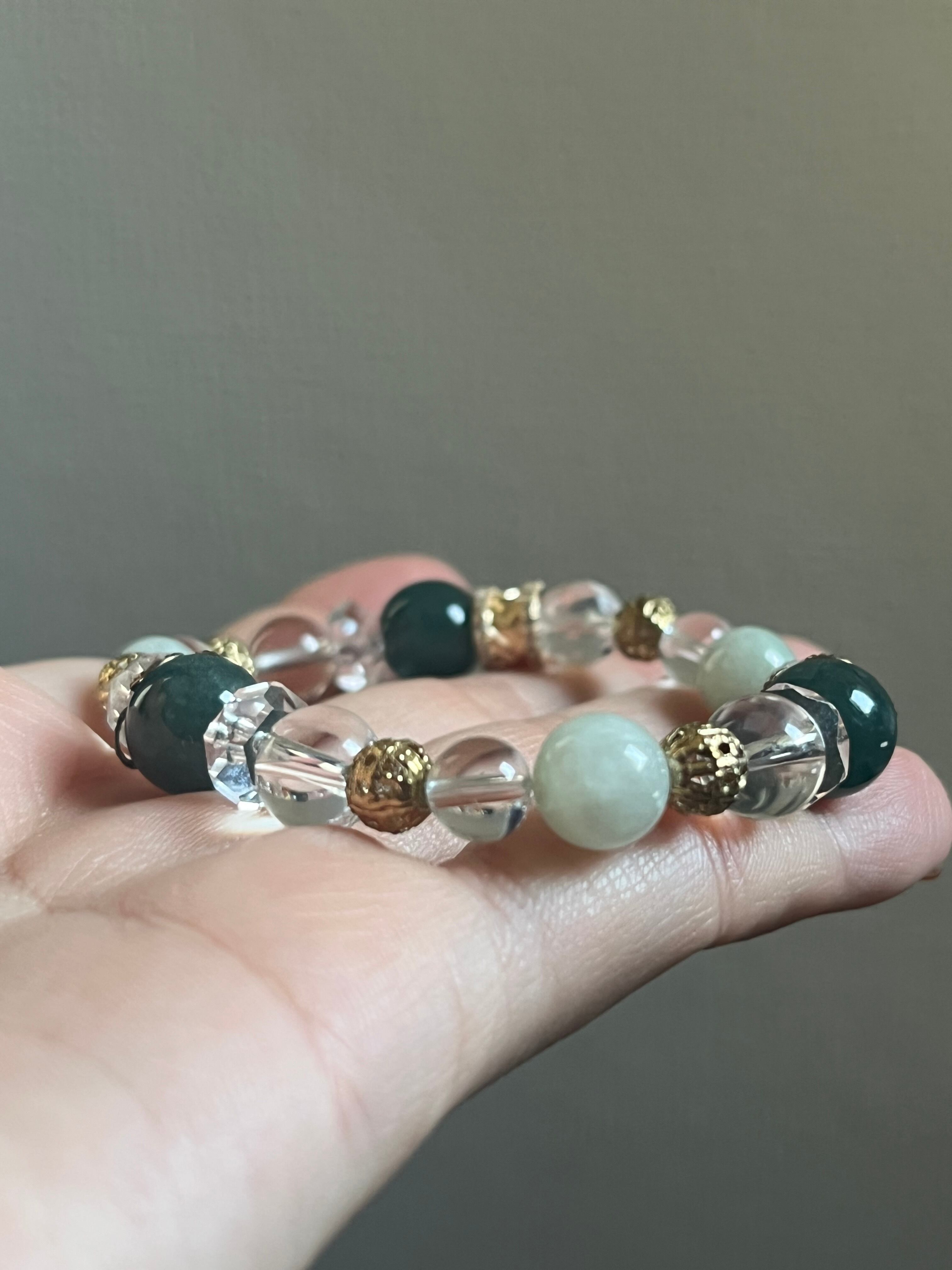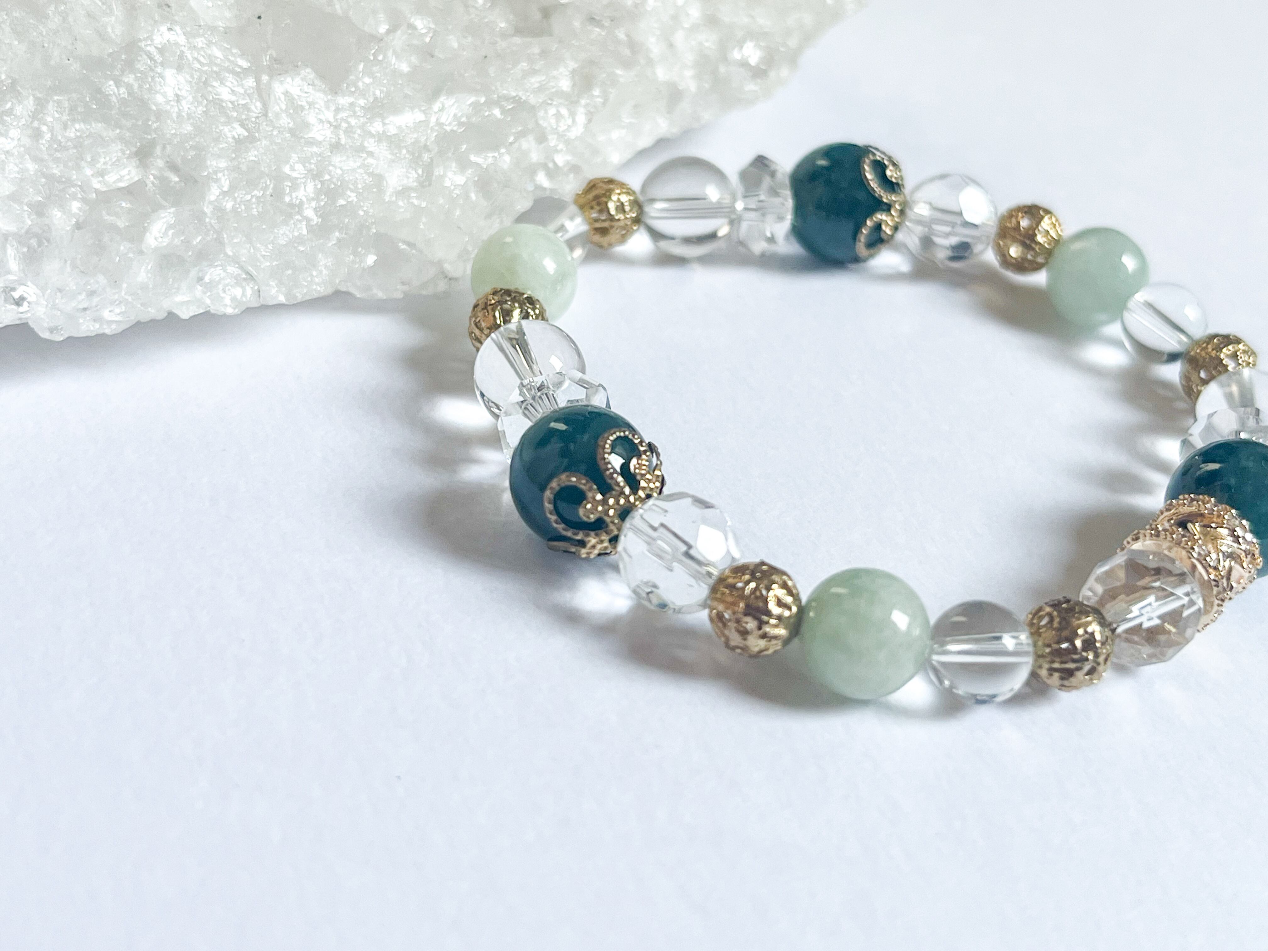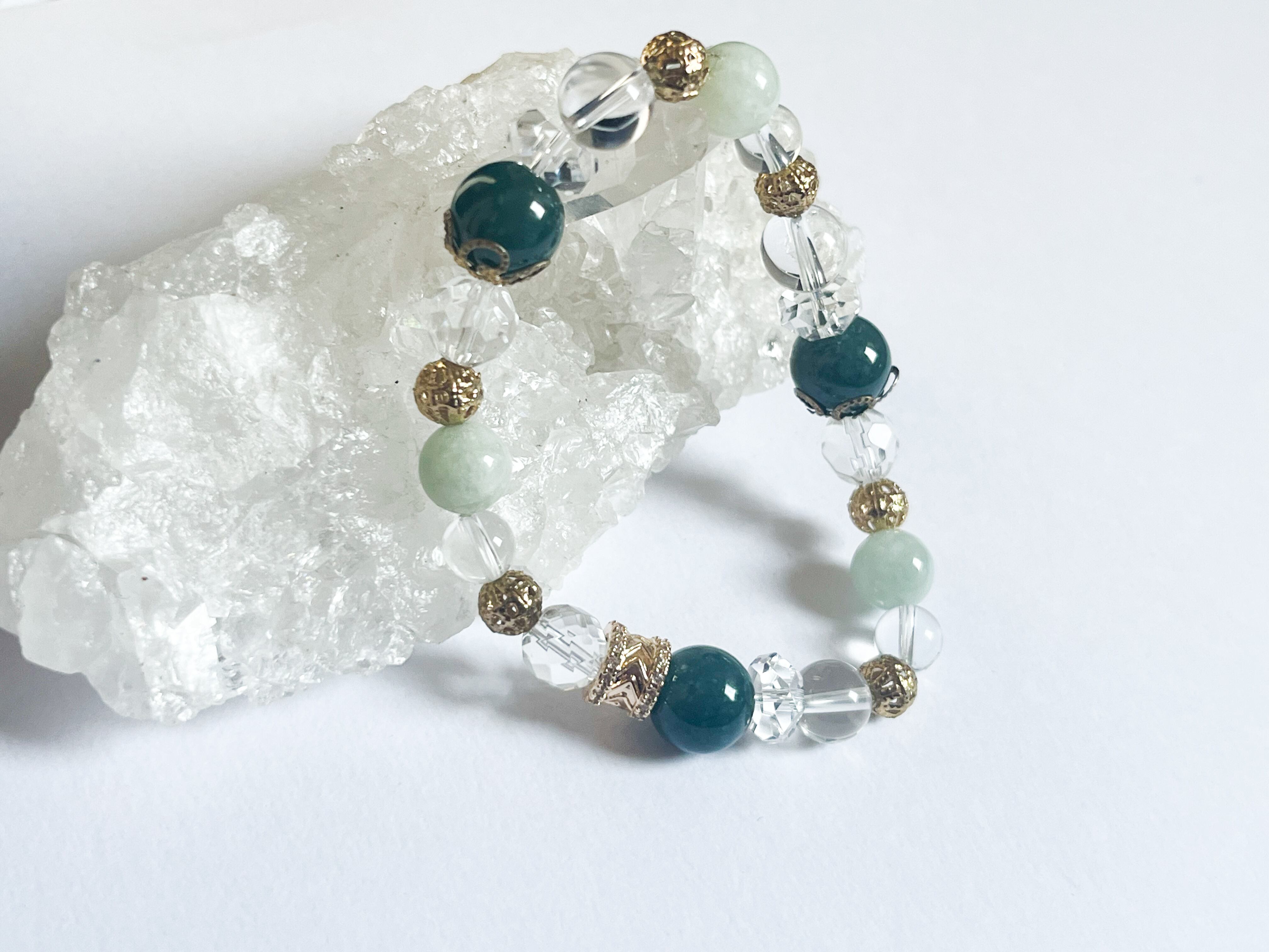 このデザブレは、ミャンマー翡翠とミャンマー青緑翡翠を贅沢に使用したシンプルながらも魅力的なアイテムです。鮮やかな色合いと自然な美しさが調和し、持つ人に爽やかな印象を与えます。日常使いはもちろん、特別なシーンでもスタイルを引き立てる存在感があります。
